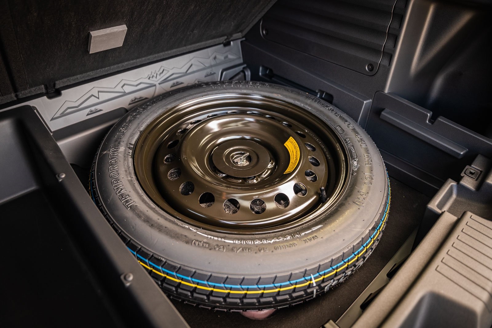 - Spare tire mounted under the cargo floor