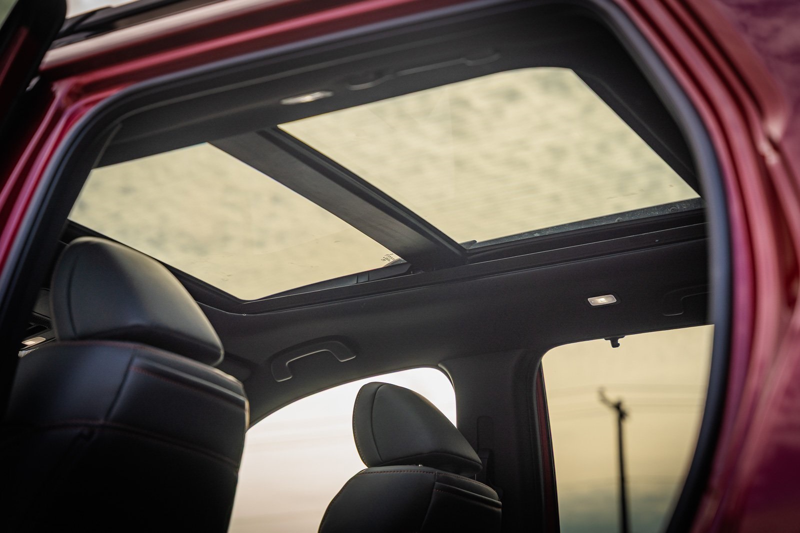 - First and second-row sliding and tilting glass moonroof with express open/close activation sunshade