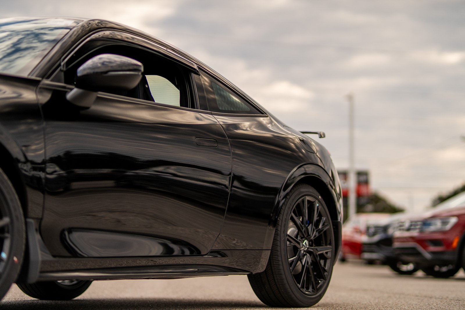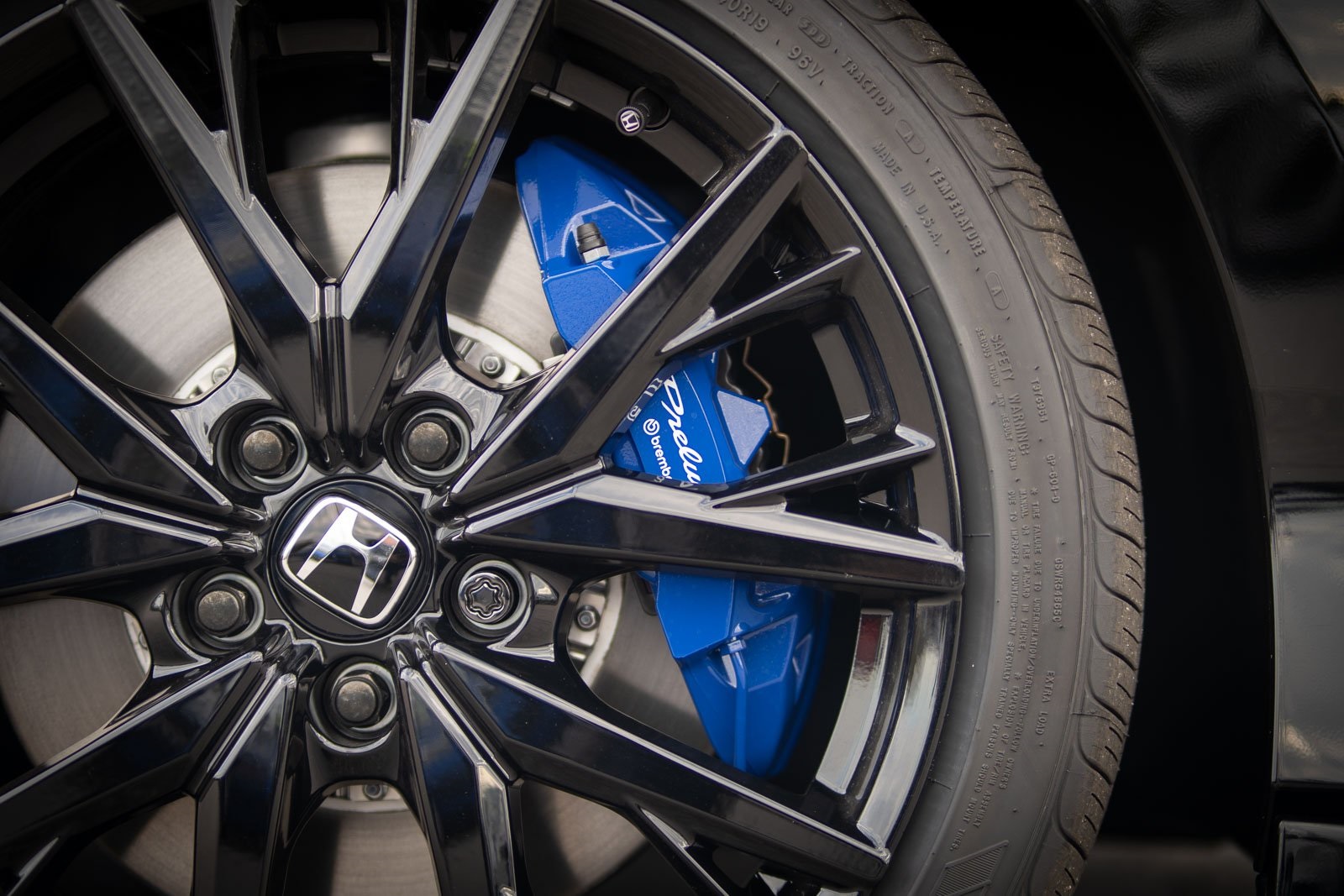 - 19 x 8.5-inch front and rear black aluminum wheels
