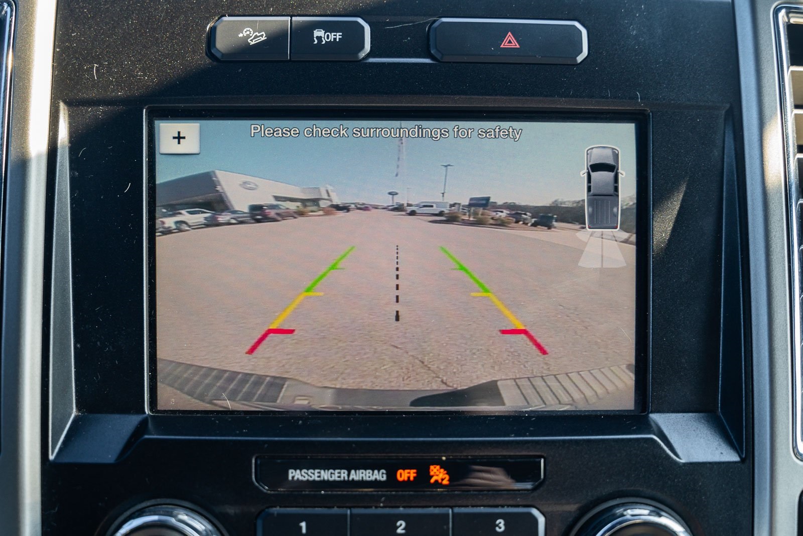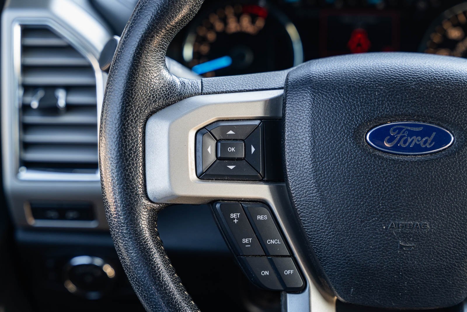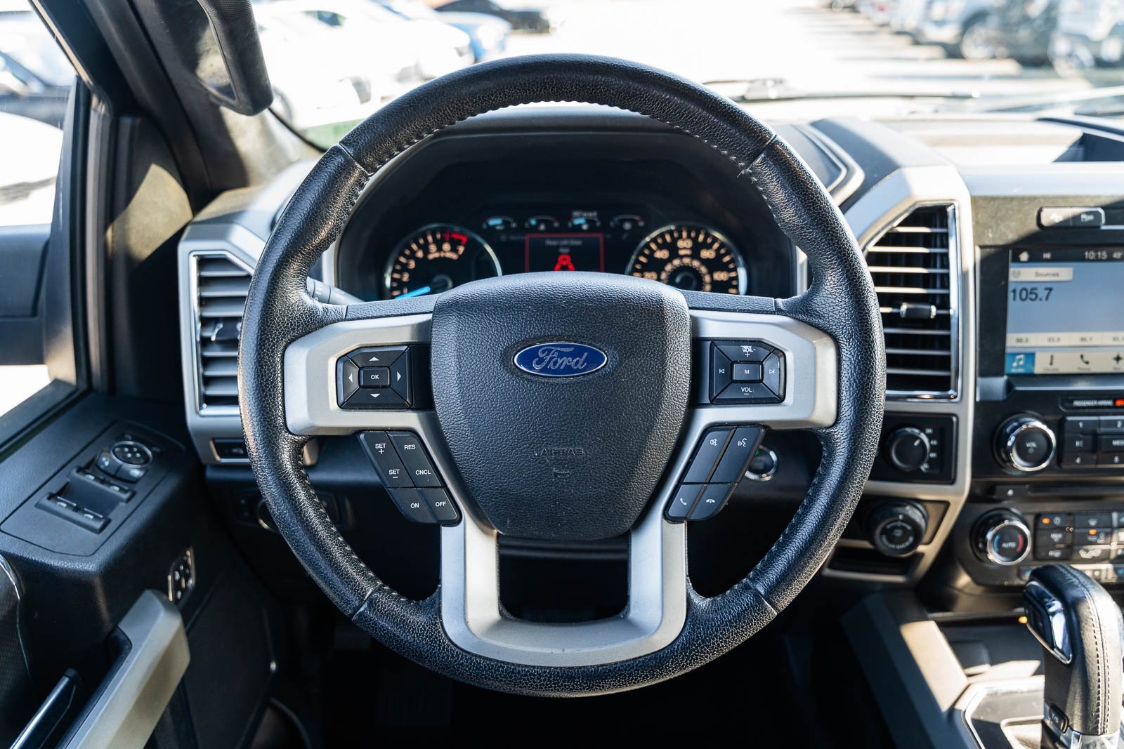 This vehicle comes equipped with Equipment Group 501A Mid (110V/400W Outlet, BLIS Blind Spot Information System, LED Side-Mirror Spotlights, Power Glass Sideview Mirr w/Body-Color Skull Caps, Remote Start System w/Remote Tailgate Release, Reverse Sensing System, and Universal Garage Door Opener), FX4 Off-Road Package (4x4 FX4 Off-Road Bodyside Decal, Front & Rear Off-Road Tuned Shock Absorbers, and Hill Descent Control), GVWR: 6,500 lbs Payload Package, Lariat Sport Appearance Package (Accent-Color 3-Bar Style Grille, Accent-Color Angular Step Bars, Body-Color Front & Rear Bumpers, Box Side Decal, Single-Tip Chrome Exhaust, and Wheels: 18" 6-Spoke Machined-Aluminum), Trailer Tow Package (Auxiliary Transmission Oil Cooler, Class IV Trailer Hitch Receiver, Pro Trailer Backup Assist, and Upgraded Front Stabilizer Bar), 4WD, 18" Machined-Aluminum Wheels, 3.55 Axle Ratio, 4-Wheel Disc Brakes, 7 Speakers, ABS brakes, Adjustable pedals, Air Conditioning, Alloy wheels, AM/FM radio: SiriusXM, Auto-dimming door mirrors, Auto-dimming Rear-View mirror, Automatic temperature control, Brake assist, Bumpers: chrome, CD player, Compass, Delay-off headlights, Driver door bin, Driver vanity mirror, Dual front impact airbags, Dual front side impact airbags, Electronic Stability Control, Exterior Parking Camera Rear, Front anti-roll bar, Front Center Armrest w/Storage, Front dual zone A/C, Front fog lights, Front reading lights, Front wheel independent suspension, Fully automatic headlights, Heated door mirrors, Heated front seats, Illuminated entry, Leather-Trimmed 40/20/40 Front Seat, Low tire pressure warning, Memory seat, Occupant sensing airbag, Outside temperature display, Overhead airbag, Overhead console, Panic alarm, Passenger door bin, Passenger vanity mirror, Pedal memory, Power door mirrors, Power driver seat, Power passenger seat, Power steering, Power windows, Radio data system, Radio: Single-CD w/SiriusXM Satellite, Rear reading lights, Rear seat center armrest, Rear step bumper, Rear window defroster, Remote keyless entry, Security system, Speed control, Speed-sensing steering, Split folding rear seat, Steering wheel mounted audio controls, SYNC 3, Tachometer, Tailgate Step w/Tailgate Lift Assist, Telescoping steering wheel, Tilt steering wheel, Traction control, Trip computer, Turn signal indicator mirrors, Variably intermittent wipers, Ventilated front seats, Voltmeter, and Wheels: 20" 6-Spoke Premium Painted Aluminum.