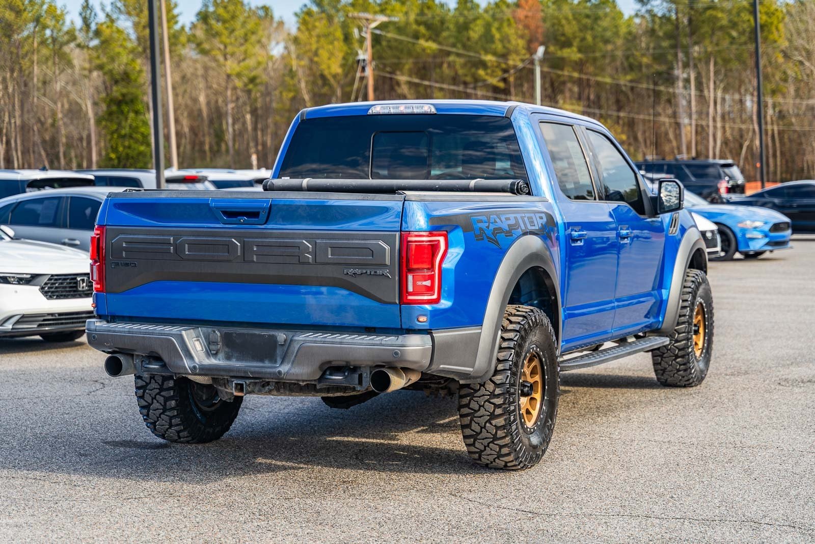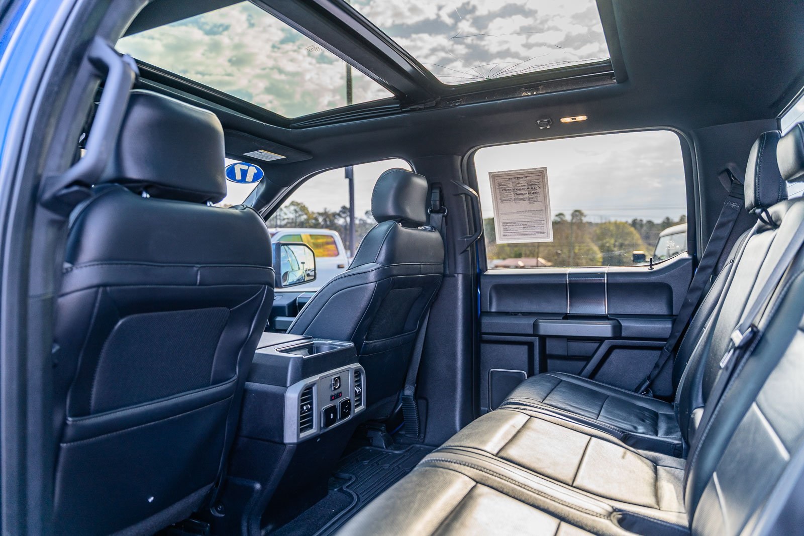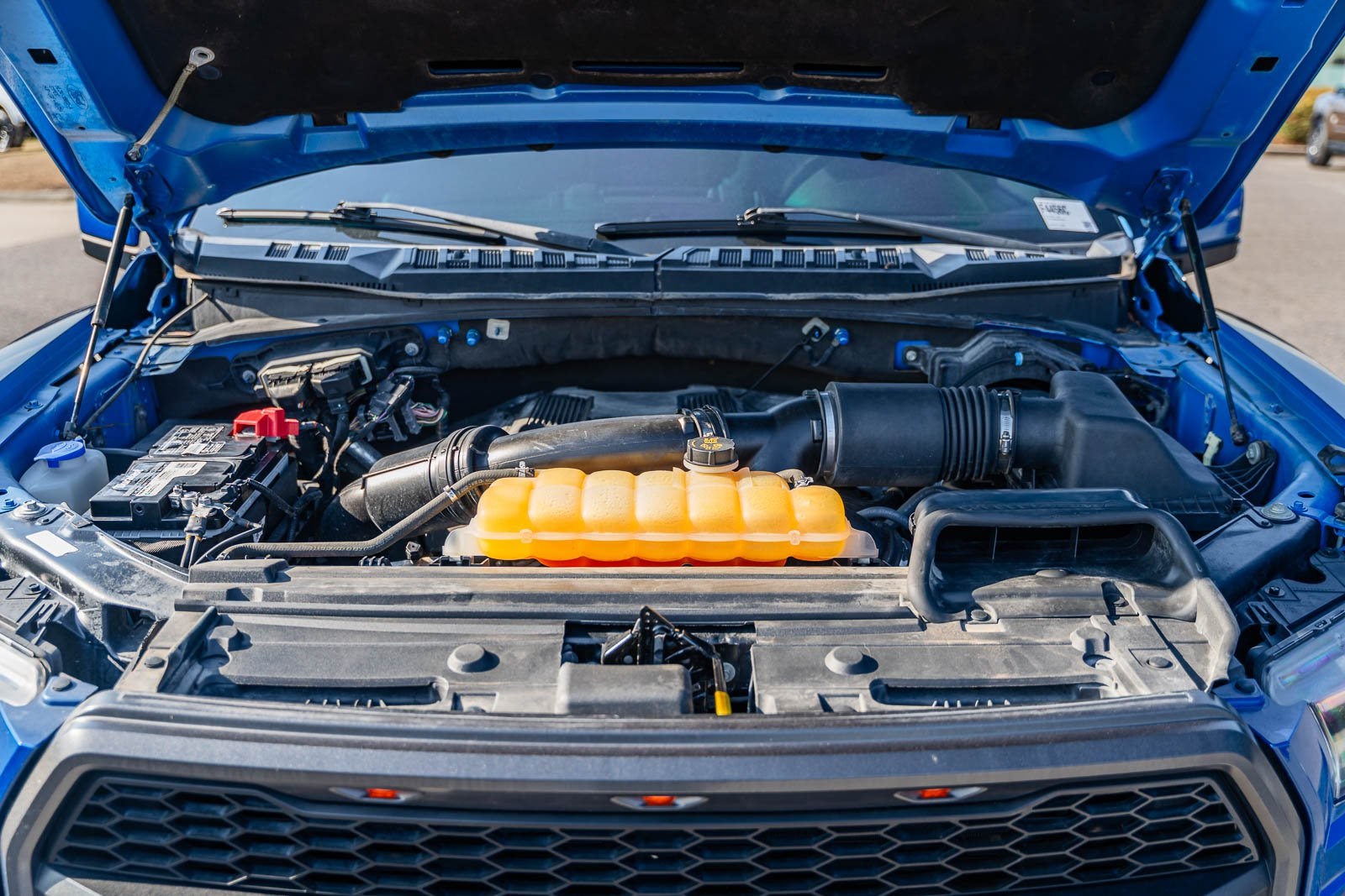 This vehicle comes equipped with Equipment Group 802A Luxury (10-Way Power Driver & Passenger Seats, 360 Degree Camera, 4.10 Front Axle w/Torsen Differential, Advanced Security Pack, Ambient Lighting, BLIS Blind Spot Information System, Dual-Zone Electronic Automatic Temperature Control, Inflatable Rear Safety Belts, Integrated Trailer Brake Controller, Intelligent Access w/Push-Button Start, LED Box Lighting, LED Side-Mirror Spotlights, Memory System (Seat, Pedal, Exterior Mirror), Power Glass Heated Sideview Mirrors, Power Tilt/Telescoping Steering Column w/Memory, Power-Adjustable Pedals, Power-Sliding Rear Window, Pro Trailer Backup Assist, Radio: Sony Single CD w/HD & SiriusXM Satellite, Remote Start System w/Remote Tailgate Release, SYNC 3, SYNC Connect, Universal Garage Door Opener, and Voice-Activated Navigation), Exterior Graphics Package, Hood Graphics Package, Raptor Technology Package (Adaptive Cruise Control w/Collision Mitigation, Auto High Beam, and Lane-Keeping System), 4WD, 17" Cast Aluminum Wheels, 4-Wheel Disc Brakes, 7 Speakers, 8-Way Power Driver's Seat w/Power Lumbar, ABS brakes, Air Conditioning, Alloy wheels, AM/FM radio: SiriusXM, Auto-dimming Rear-View mirror, Brake assist, CD player, Compass, Delay-off headlights, Driver door bin, Driver vanity mirror, Dual front impact airbags, Dual front side impact airbags, Electronic Locking w/4.10 Axle Ratio, Electronic Stability Control, Exterior Parking Camera Rear, Front anti-roll bar, Front Bucket Seats, Front Center Armrest, Front fog lights, Front reading lights, Front wheel independent suspension, Fully automatic headlights, Heated Leather 40/Console/40 Front Seats, Illuminated entry, Leather steering wheel, Low tire pressure warning, Occupant sensing airbag, Outside temperature display, Overhead airbag, Overhead console, Panic alarm, Passenger door bin, Passenger vanity mirror, Power door mirrors, Power driver seat, Power steering, Power windows, Radio data system, Rear Parking Sensors, Rear reading lights, Rear step bumper, Rear window defroster, Remote keyless entry, Security system, Speed control, Speed-sensing steering, Split folding rear seat, Steering wheel mounted audio controls, SYNC, Tachometer, Tailgate Applique, Tailgate Step w/Tailgate Lift Assist, Telescoping steering wheel, Tilt steering wheel, Traction control, Trip computer, Twin Panel Moonroof, Unique Cloth/Leather Trim Seats, and Variably intermittent wipers.