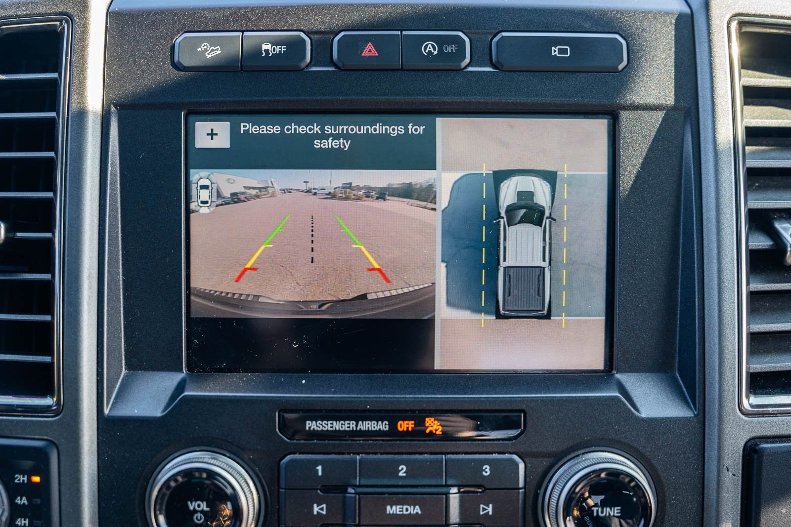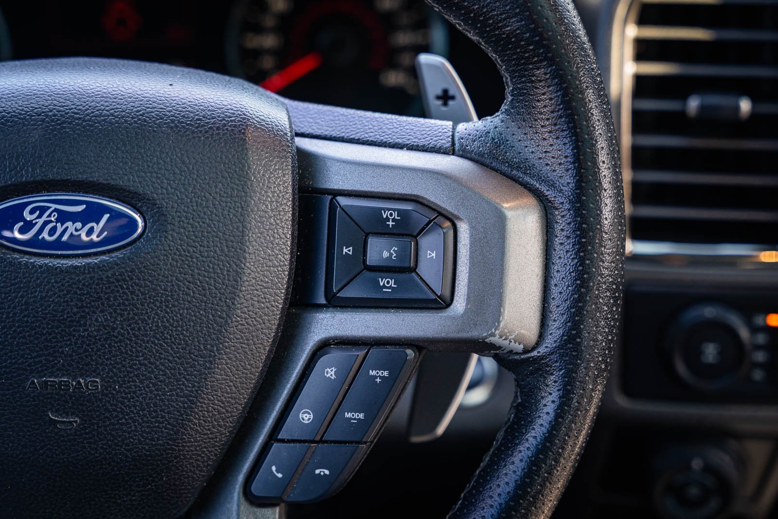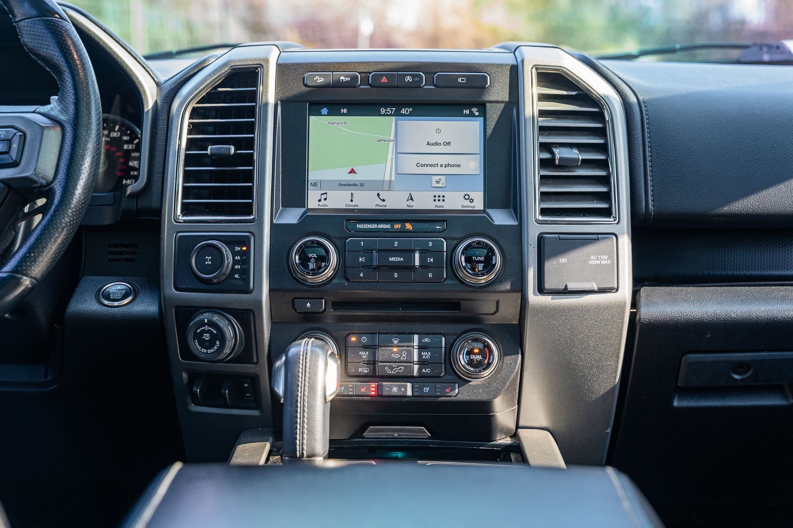 This vehicle comes equipped with Equipment Group 802A Luxury (10-Way Power Driver & Passenger Seats, 360 Degree Camera, 4.10 Front Axle w/Torsen Differential, Advanced Security Pack, Ambient Lighting, BLIS Blind Spot Information System, Dual-Zone Electronic Automatic Temperature Control, Inflatable Rear Safety Belts, Integrated Trailer Brake Controller, Intelligent Access w/Push-Button Start, LED Box Lighting, LED Side-Mirror Spotlights, Memory System (Seat, Pedal, Exterior Mirror), Power Glass Heated Sideview Mirrors, Power Tilt/Telescoping Steering Column w/Memory, Power-Adjustable Pedals, Power-Sliding Rear Window, Pro Trailer Backup Assist, Radio: Sony Single CD w/HD & SiriusXM Satellite, Remote Start System w/Remote Tailgate Release, SYNC 3, SYNC Connect, Universal Garage Door Opener, and Voice-Activated Navigation), Exterior Graphics Package, Hood Graphics Package, Raptor Technology Package (Adaptive Cruise Control w/Collision Mitigation, Auto High Beam, and Lane-Keeping System), 4WD, 17" Cast Aluminum Wheels, 4-Wheel Disc Brakes, 7 Speakers, 8-Way Power Driver's Seat w/Power Lumbar, ABS brakes, Air Conditioning, Alloy wheels, AM/FM radio: SiriusXM, Auto-dimming Rear-View mirror, Brake assist, CD player, Compass, Delay-off headlights, Driver door bin, Driver vanity mirror, Dual front impact airbags, Dual front side impact airbags, Electronic Locking w/4.10 Axle Ratio, Electronic Stability Control, Exterior Parking Camera Rear, Front anti-roll bar, Front Bucket Seats, Front Center Armrest, Front fog lights, Front reading lights, Front wheel independent suspension, Fully automatic headlights, Heated Leather 40/Console/40 Front Seats, Illuminated entry, Leather steering wheel, Low tire pressure warning, Occupant sensing airbag, Outside temperature display, Overhead airbag, Overhead console, Panic alarm, Passenger door bin, Passenger vanity mirror, Power door mirrors, Power driver seat, Power steering, Power windows, Radio data system, Rear Parking Sensors, Rear reading lights, Rear step bumper, Rear window defroster, Remote keyless entry, Security system, Speed control, Speed-sensing steering, Split folding rear seat, Steering wheel mounted audio controls, SYNC, Tachometer, Tailgate Applique, Tailgate Step w/Tailgate Lift Assist, Telescoping steering wheel, Tilt steering wheel, Traction control, Trip computer, Twin Panel Moonroof, Unique Cloth/Leather Trim Seats, and Variably intermittent wipers.