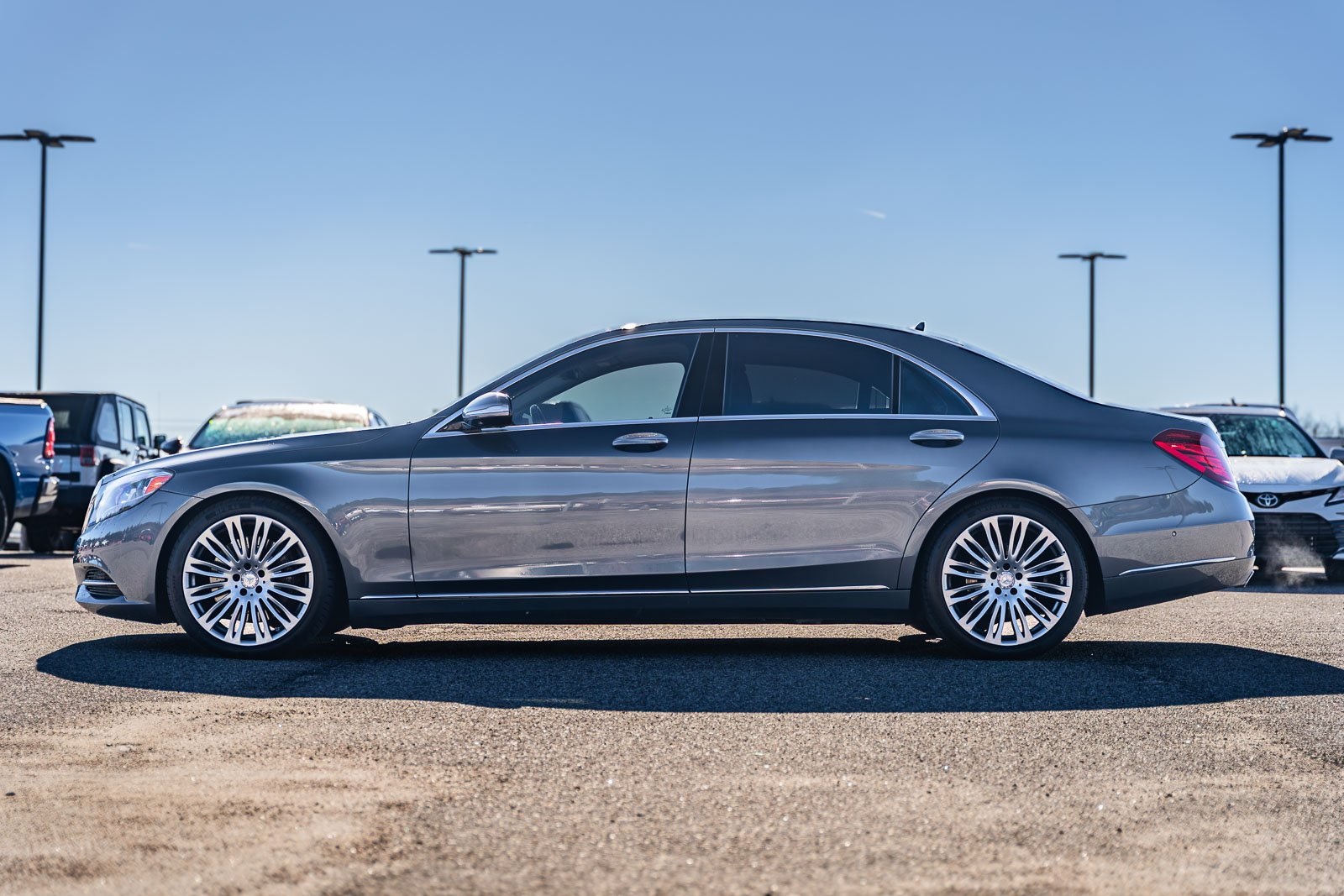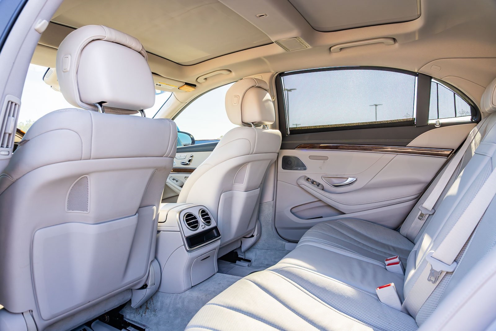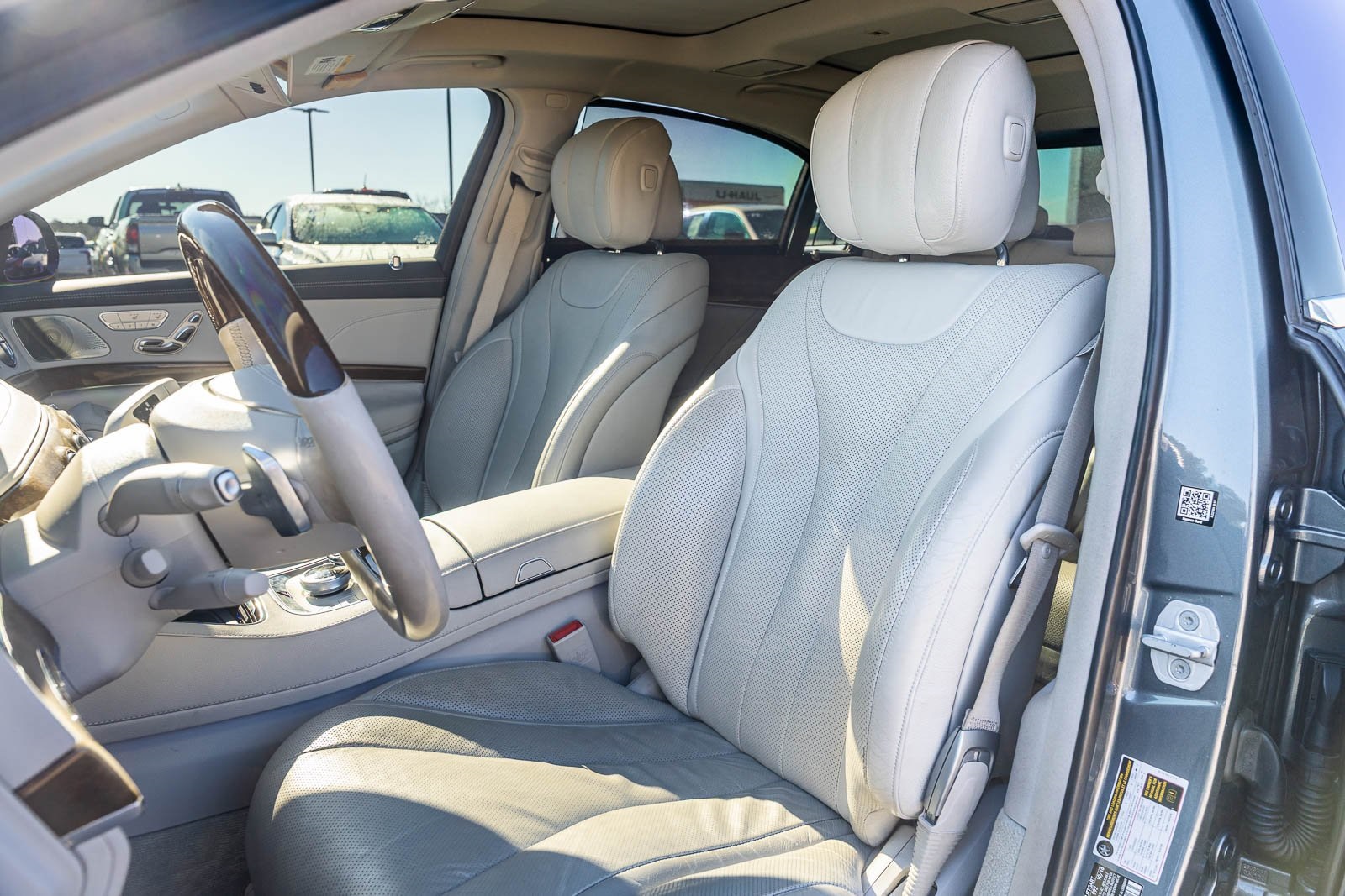 This vehicle comes equipped with Crystal Gray/Seashell Gray w/Leather Upholstery, 13 Speakers, 18" 5-Spoke Wheels, 4-Wheel Disc Brakes, ABS brakes, Adaptive suspension, Air Conditioning, Alloy wheels, AM/FM radio: SiriusXM, Anti-whiplash front head restraints, Auto High-beam Headlights, Auto tilt-away steering wheel, Auto-dimming door mirrors, Auto-dimming Rear-View mirror, Auto-leveling suspension, Automatic temperature control, Brake assist, Bumpers: body-color, Burl Walnut Wood Trim, CD player, Child-Seat-Sensing Airbag, Compass, Delay-off headlights, Door auto-latch, Driver door bin, Driver vanity mirror, Dual front impact airbags, Dual front side impact airbags, DVD-Audio, Electronic Stability Control, Emergency communication system: mbrace2, Exterior Parking Camera Rear, Four wheel independent suspension, Front anti-roll bar, Front Bucket Seats, Front Center Armrest, Front dual zone A/C, Front reading lights, Garage door transmitter: Homelink, Genuine wood console insert, Genuine wood door panel insert, Head restraints memory, Heated door mirrors, Heated front seats, Heated Power Front Seats w/Memory, HVAC memory, Illuminated entry, Knee airbag, Leather steering wheel, Leather Upholstery, Low tire pressure warning, Memory seat, Navigation system: COMAND®, Occupant sensing airbag, Outside temperature display, Overhead airbag, Overhead console, Panic alarm, Passenger door bin, Passenger vanity mirror, Power adjustable front head restraints, Power adjustable rear head restraints, Power door mirrors, Power driver seat, Power moonroof: Panorama, Power passenger seat, Power steering, Power windows, Premium audio system: COMAND®, Radio data system, Rain sensing wipers, Rear anti-roll bar, Rear fog lights, Rear reading lights, Rear seat center armrest, Rear side impact airbag, Rear Window Blind, Rear window defroster, Remote keyless entry, Security system, Speed control, Speed-sensing steering, Steering wheel memory, Steering wheel mounted audio controls, Tachometer, Telescoping steering wheel, Tilt steering wheel, Traction control, Trip computer, Turn signal indicator mirrors, Variably intermittent wipers, and Weather band radio.