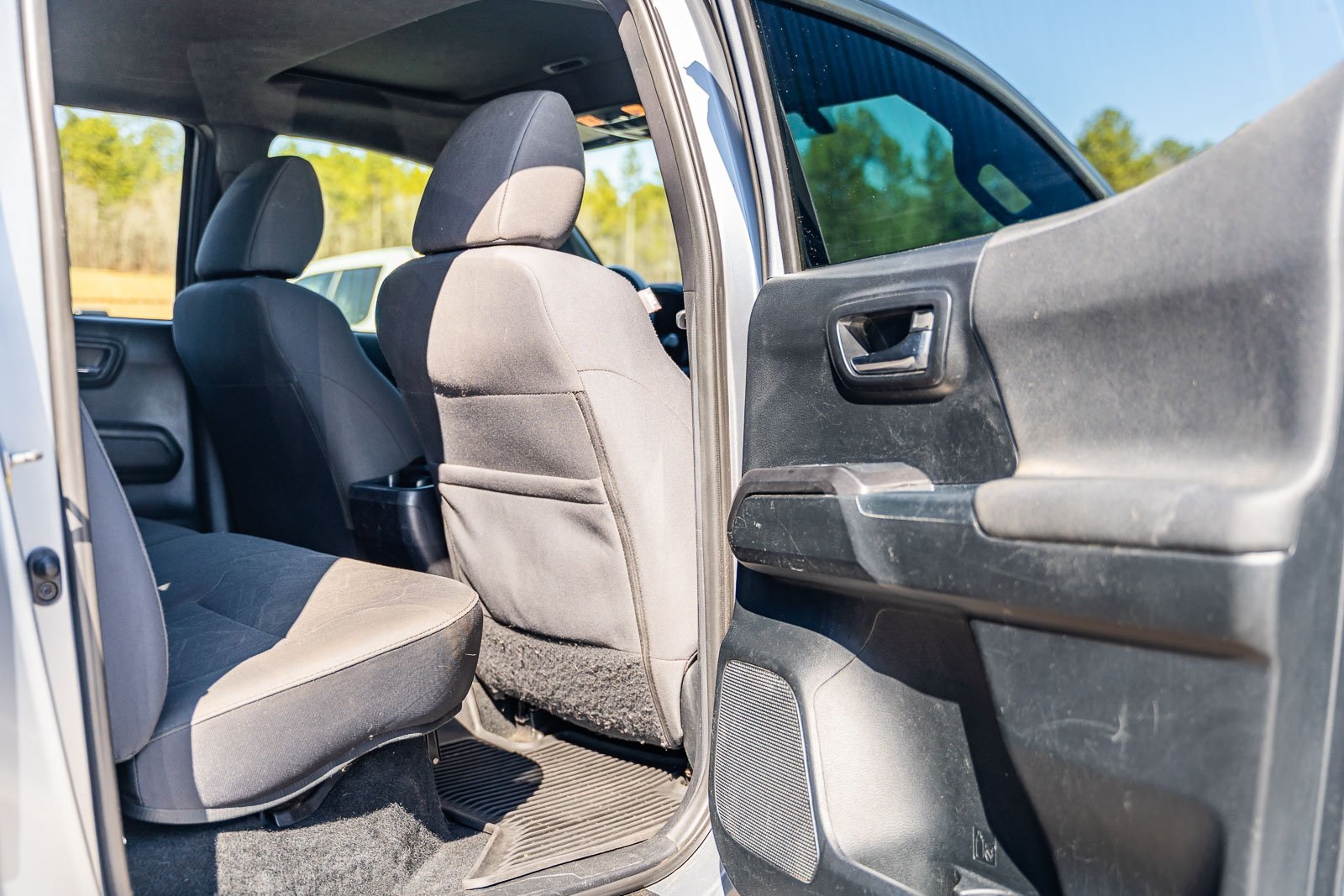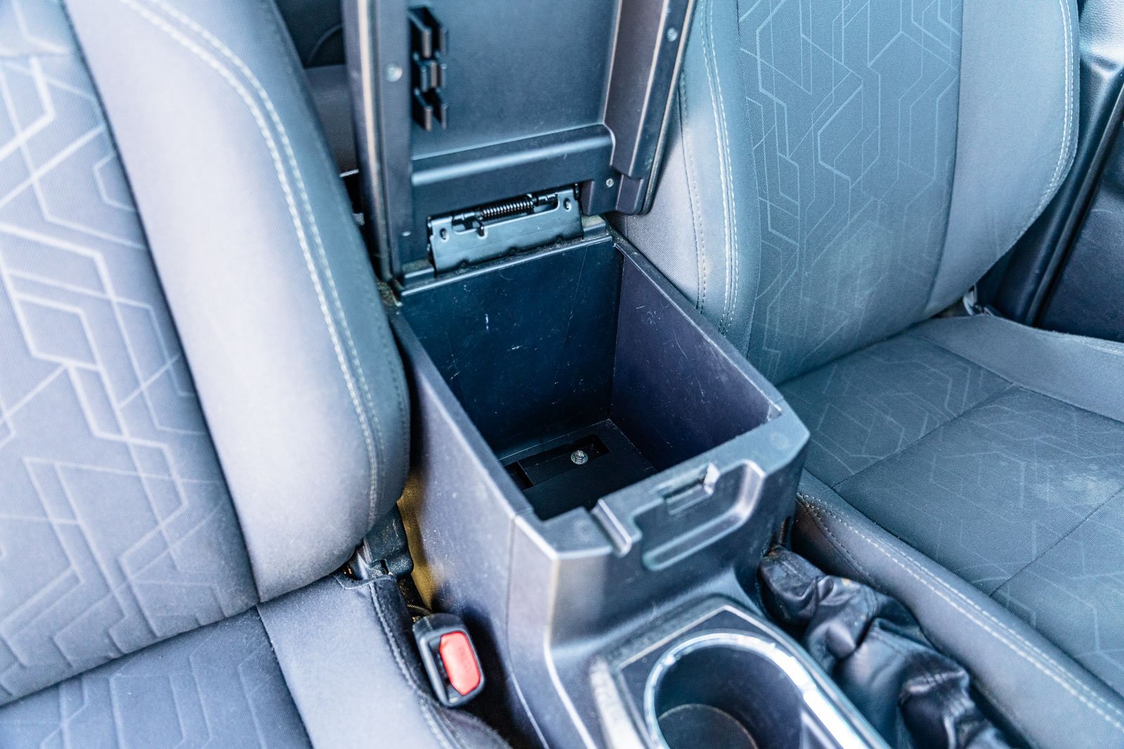This vehicle comes equipped with 4WD, ABS brakes, Air Conditioning, Alloy wheels, Compass, Electronic Stability Control, Illuminated entry, Low tire pressure warning, Remote keyless entry, Traction control, 120V/400W Deck Mounted AC Power, 6 Speakers, AM/FM radio: SiriusXM, Anti-whiplash front head restraints, Auto-Dimming Inside Rear-View Mirror w/Compass, Auto-dimming Rear-View mirror, Axle Ratio: 3.91, Brake assist, Bumpers: body-color, CD player, Cruise Control, Driver door bin, Dual front impact airbags, Dual front side impact airbags, Engine Immobilizer, Exterior Parking Camera Rear, Fabric Seat Trim (FD), Front anti-roll bar, Front Bucket Seats, Front Center Armrest, Front fog lights, Front reading lights, Front wheel independent suspension, Knee airbag, Leather Shift Knob, LED Daytime Running Lights, Occupant sensing airbag, ORP Black Overfenders, Outside temperature display, Overhead airbag, Overhead console, Panic alarm, Passenger door bin, Power door mirrors, Power Sliding Rear Window w/Privacy Glass, Power steering, Power windows, Radio: Entune Premium w/AM/FM/CD/Nav/App Suite, Rear step bumper, Remote Keyless Entry System, Security system, Smart Key w/Push Button Start, Speed control, Speed-sensing steering, Split folding rear seat, Steering wheel mounted audio controls, Tachometer, Telescoping steering wheel, Tilt steering wheel, TRD-Tuned Off-Road Suspension, Trip computer, Turn signal indicator mirrors, Variable Intermittent Wipers, Variably intermittent wipers, Wheels: 16" x 7" Machined Contrast Alloy, and Wide Angle Front Fog Lamps.
