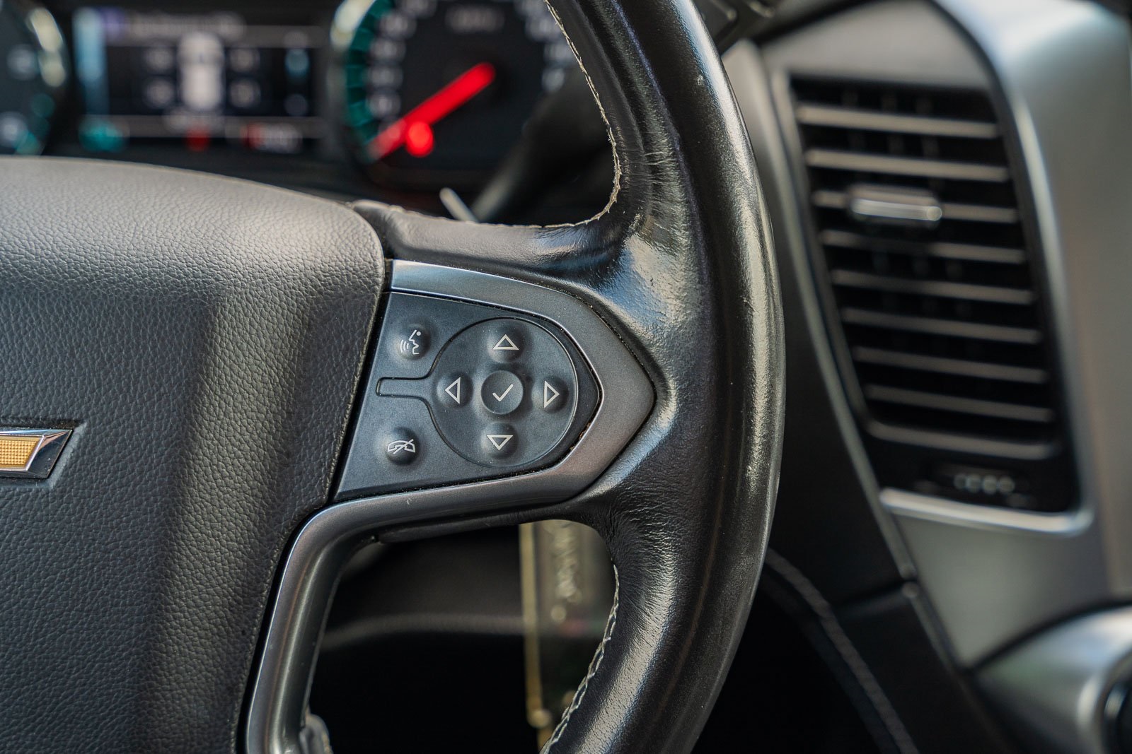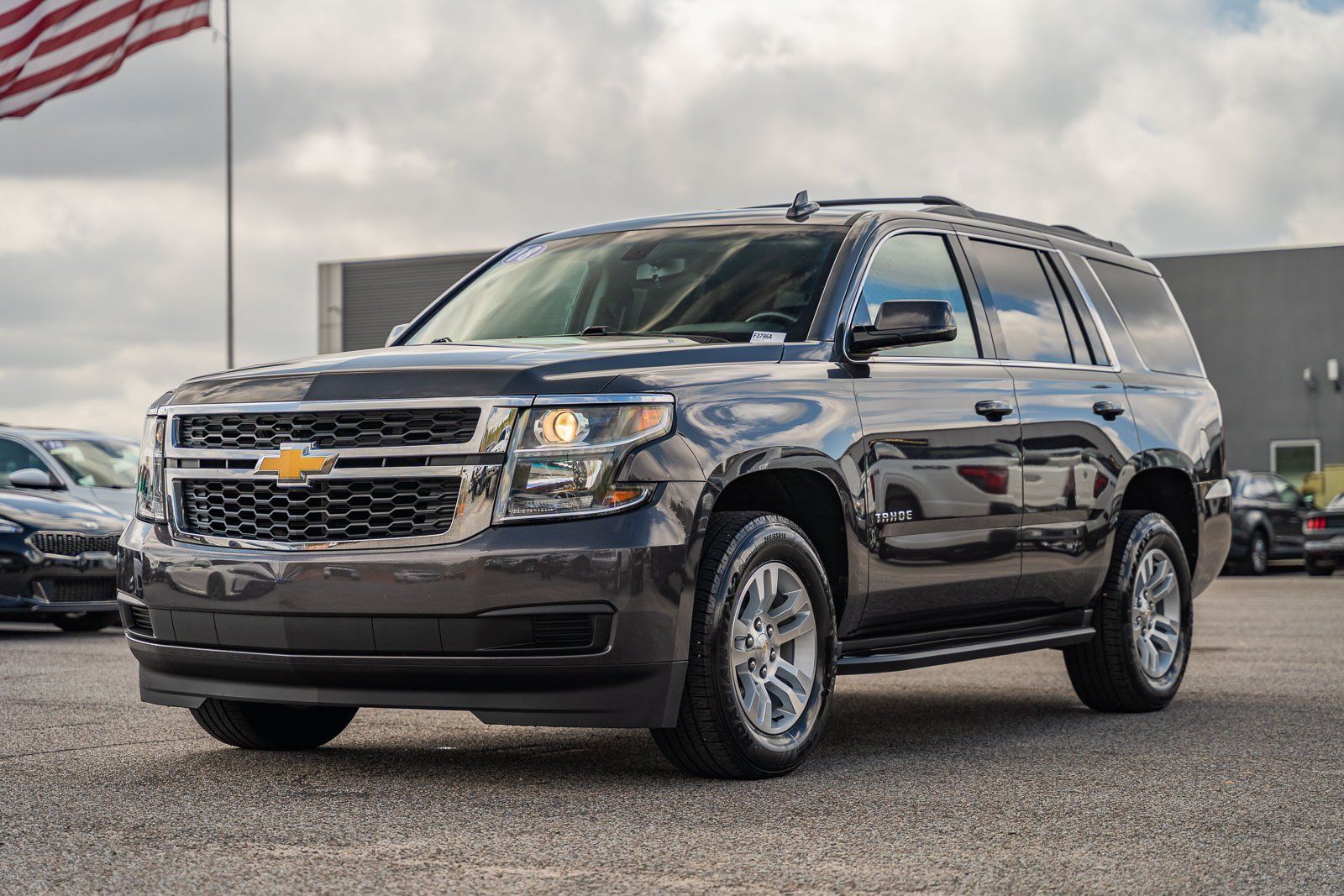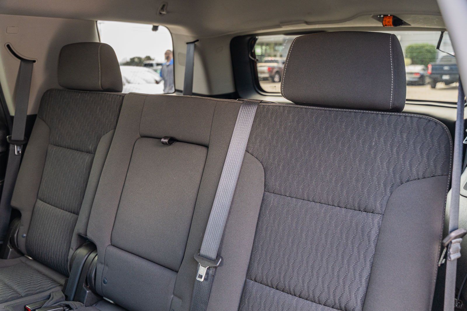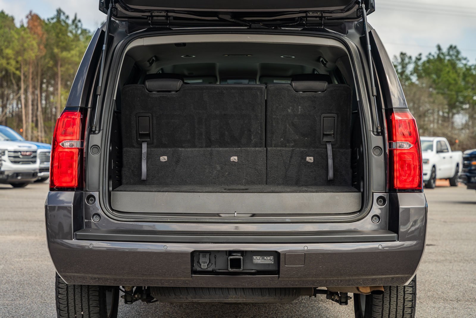 This vehicle comes equipped with Max Trailering Package (Integrated Trailer Brake Controller), Preferred Equipment Group 1LS (1st & 2nd Row Color-Keyed Carpeted Floor Mats, 2nd Row 60/40 Split-Folding Manual Bench, 3rd Row Manual 60/40 Split-Folding Fold Flat Bench, 4-Wheel Antilock Disc Brakes w/Brake Assist, 5 12-Volt Auxiliary Power Outlets, Black Assist Steps, Cargo Net, Color-Keyed Carpeting Floor Covering, Electronic Cruise Control w/Set & Resume Speed, Extended-Range Remote Keyless Entry, Front Passenger 6-Way Power Seat Adjuster, Leather-Wrapped Steering Wheel, OnStar Basic Plan For 5 Years, Rear Park Assist w/Audible Warning, Remote Vehicle Start, Roof-Mounted Luggage Rack Side Rails, and SiriusXM Satellite Radio), Premium Smooth Ride Suspension Package, Standard Suspension Package, Black Cloth, 18" x 8.5" Aluminum Wheels, 3rd row seats: split-bench, 4-Wheel Disc Brakes, 6 Speakers, 6-Speaker Audio System Feature, ABS brakes, Air Conditioning, Alloy wheels, AM/FM radio: SiriusXM, Apple CarPlay/Android Auto, Automatic temperature control, Bluetooth® For Phone, Brake assist, Bumpers: body-color, CD player, Compass, Delay-off headlights, Driver door bin, Driver Inboard & Front Passenger Airbags, Driver vanity mirror, Dual front impact airbags, Dual front side impact airbags, Electronic Stability Control, Emergency communication system: OnStar Guidance, Exterior Parking Camera Rear, Floor Console, Front anti-roll bar, Front Bucket Seats, Front Center Armrest, Front dual zone A/C, Front High-Back Reclining Bucket Seats, Front reading lights, Front wheel independent suspension, Fully automatic headlights, HD Radio, Heated door mirrors, Illuminated entry, Low tire pressure warning, Occupant sensing airbag, Outside temperature display, Overhead airbag, Overhead console, Panic alarm, Passenger door bin, Passenger vanity mirror, Power door mirrors, Power driver seat, Power passenger seat, Power steering, Power windows, Premium audio system: Chevrolet MyLink, Premium Cloth Seat Trim, Radio: Chevrolet MyLink AM/FM Stereo, Rain sensing wipers, Rear air conditioning, Rear anti-roll bar, Rear reading lights, Rear seat center armrest, Rear window defroster, Rear window wiper, Remote keyless entry, Roof rack: rails only, Security system, Single-Slot CD/MP3 Player, Speed control, Speed-sensing steering, Split folding rear seat, Spoiler, Steering wheel mounted audio controls, Tachometer, Tilt steering wheel, Traction control, Trip computer, Variably intermittent wipers, and Voltmeter.