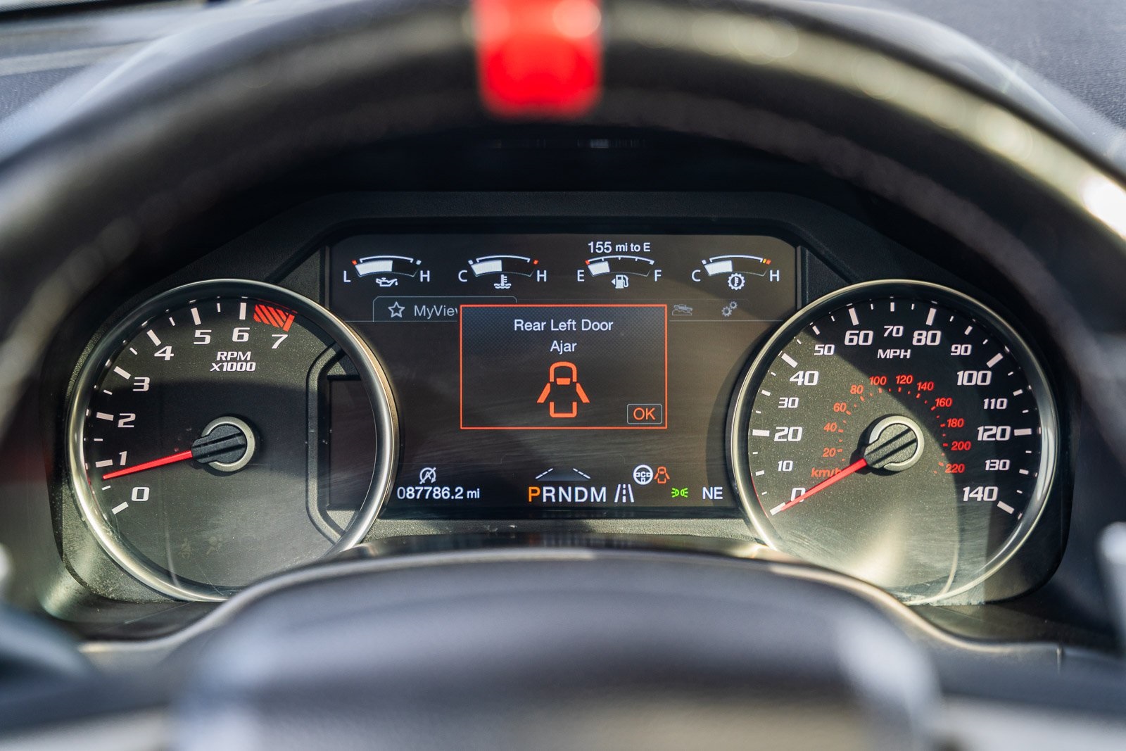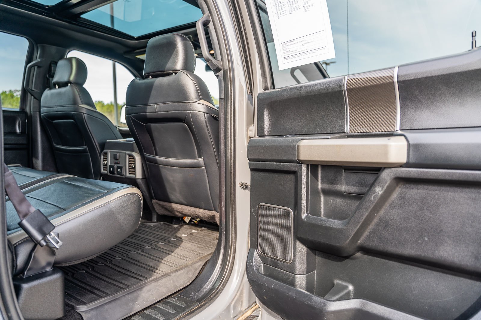 This vehicle comes equipped with Equipment Group 802A Luxury (10-Way Power Driver & Passenger Seats, 360 Degree Camera, 4.10 Front Axle w/Torsen Differential, 8" Productivity Screen, Advanced Security Pack, Ambient Lighting - Ice Blue Color Only, BLIS Blind Spot Information System, Dual-Zone Electronic Automatic Temperature Control, Heated Steering Wheel, Inflatable Rear Safety Belts, Integrated Trailer Brake Controller, Intelligent Access w/Push-Button Start, LED Box Lighting, LED Sideview Mirror Spotlights, Memory System (Seat, Pedal, Exterior Mirror), Power Glass Heated Sideview Mirrors, Power Tilt/Telescoping Steering Column w/Memory, Power-Adjustable Pedals, Power-Sliding Rear Window, Pro Trailer Backup Assist, Radio: B&O Play Premium Audio System, Remote Start System w/Remote Tailgate Release, SYNC 3, SYNC Connect, Tailgate Applique FORD, Universal Garage Door Opener, and Voice-Activated Touchscreen Navigation System), GVWR: 7,050 lbs Payload Package, Raptor Carbon Fiber Package (Unique Carbon Fiber Shift Knob), Raptor Exterior Graphics Package, Raptor Hood Graphics Package, Raptor Technology Package (Adaptive Cruise Control w/Collision Mitigation, Auto High Beam, and Lane-Keeping System), Ford Blue Certified Certified, 4WD, 17" Cast Aluminum Wheels, 17" Forged Aluminum Bead-Lock Capable Wheels, 4-Wheel Disc Brakes, 7 Speakers, 8-Way Power Driver's Seat w/Power Lumbar, ABS brakes, Air Conditioning, Alloy wheels, AM/FM radio: SiriusXM, Auto-dimming Rear-View mirror, Brake assist, CD player, Compass, Delay-off headlights, Driver door bin, Driver vanity mirror, Dual front impact airbags, Dual front side impact airbags, Electronic Locking w/4.10 Axle Ratio, Electronic Stability Control, Emergency communication system: 911 Assist, Exterior Parking Camera Rear, Foldable Pickup Box Bed Extender, Front anti-roll bar, Front Bucket Seats, Front Center Armrest, Front fog lights, Front reading lights, Front wheel independent suspension, Fully automatic headlights, Heated Leather 40/Console/40 Front Seats, Illuminated entry, Leather steering wheel, Low tire pressure warning, Occupant sensing airbag, Outside temperature display, Overhead airbag, Overhead console, Panic alarm, Passenger door bin, Passenger vanity mirror, Power door mirrors, Power driver seat, Power steering, Power windows, Radio data system, Rear Parking Sensors, Rear reading lights, Rear step bumper, Rear window defroster, Remote keyless entry, Security system, Speed control, Speed-sensing steering, Split folding rear seat, Spray-In Bedliner (Pre-Installed), Steering wheel mounted audio controls, SYNC, Tachometer, Tailgate Step w/Tailgate Lift Assist, Telescoping steering wheel, Tilt steering wheel, Traction control, Trip computer, Twin Panel Moonroof, Unique Cloth Trim Seats, and Variably intermittent wipers.