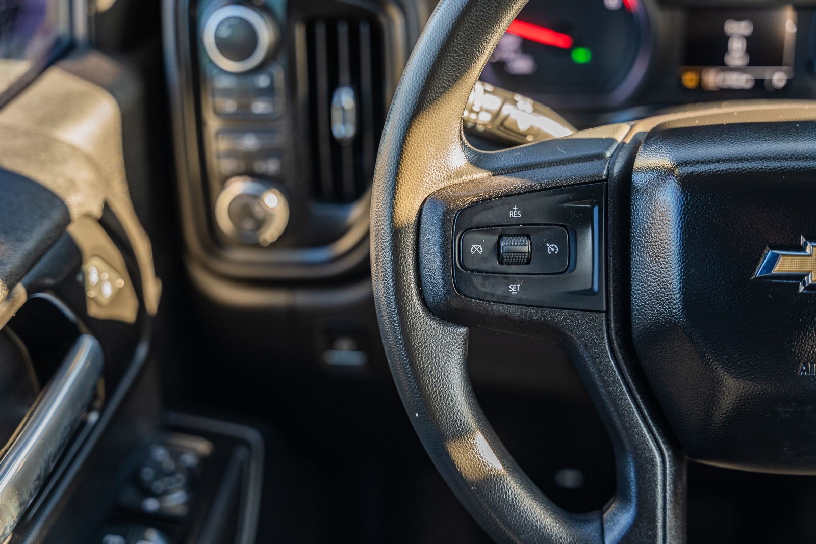 This vehicle comes equipped with Custom Convenience Package (Electric Rear-Window Defogger, EZ Lift Power Lock & Release Tailgate, LED Cargo Area Lighting, Remote Vehicle Starter System, and Theft Deterrent System (Unauthorized Entry)), Custom Value Package, Infotainment Package (4G LTE Wi-Fi Hot Spot Capable, Chevrolet Connected Access Capable, Compass, OnStar & Chevrolet Connected Services Capable, and SiriusXM Radio), Preferred Equipment Group 1CX (170 Amps Alternator, 3.5" Diagonal Monochromatic Display, Bluetooth® For Phone, Body Color Grille, Color-Keyed Carpeting Floor Covering, Deep-Tinted Glass, Front Frame-Mounted Black Recovery Hooks, Front Rubberized Vinyl Floor Mats, Locking Tailgate, Manual Tilt-Wheel Steering Column, Power Door Locks, Power Front Windows w/Driver Express Up/Down, Power Front Windows w/Passenger Express Down, Power Rear Windows w/Express Down, Rear 60/40 Folding Bench Seat (Folds Up), Rear Rubberized-Vinyl Floor Mats, Remote Keyless Entry, and Steering Wheel Mounted Electronic Cruise Control), Trailering Package (Hitch Guidance), Ford Blue Certified Eligible Certified, 8-Speed Automatic, 4WD, Black Cloth, 120-Volt Bed Mounted Power Outlet, 120-Volt Instrument Panel Power Outlet, 220 Amps Alternator, 3.42 Rear Axle Ratio, 4-Wheel Disc Brakes, 40/20/40 Front Split Bench Seat, 6 Speakers, ABS brakes, Air Conditioning, Alloy wheels, Apple CarPlay/Android Auto, Automatic Stop/Start, Brake assist, Bumpers: body-color, Chevytec Spray-On Black Bedliner, Cloth Seat Trim, Delay-off headlights, Driver door bin, Driver vanity mirror, Dual front impact airbags, Dual front side impact airbags, Electronic Stability Control, Exterior Parking Camera Rear, Front 40/20/40 Split-Bench Seat, Front anti-roll bar, Front Center Armrest, Front reading lights, Front wheel independent suspension, Fully automatic headlights, Heated door mirrors, Heavy Duty Suspension, Heavy-Duty Rear Locking Differential, Illuminated entry, Integrated Trailer Brake Controller, Low tire pressure warning, Molded Black Splash Guards (LPO), Occupant sensing airbag, Outside temperature display, Overhead airbag, Overhead console, Panic alarm, Passenger door bin, Passenger vanity mirror, Polished Exhaust Tip, Power door mirrors, Power steering, Power windows, Radio data system, Radio: Chevrolet Infotainment 3 System, Rear reading lights, Rear step bumper, Remote keyless entry, Single-Zone Manual/Semi-Automatic Air Conditioning, Speed control, Speed-sensing steering, Split folding rear seat, Tachometer, Tilt steering wheel, Traction control, Trip computer, Variably intermittent wipers, Voltmeter, Wheel Locks (Set of 4) (LPO), and Wheels: 20" x 9" Bright Silver Painted Aluminum.