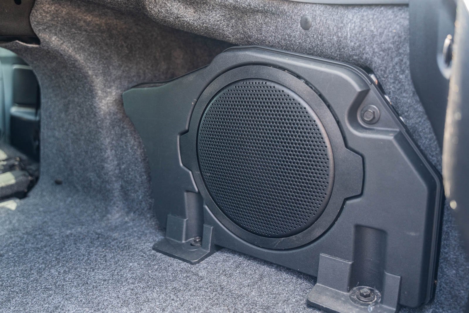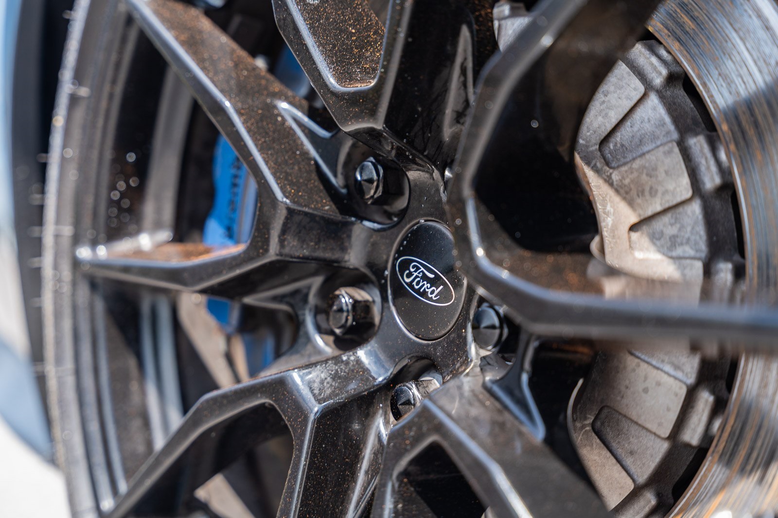 - 19 x 10.5-inch front and 19 x 11-inch rear black aluminum wheels