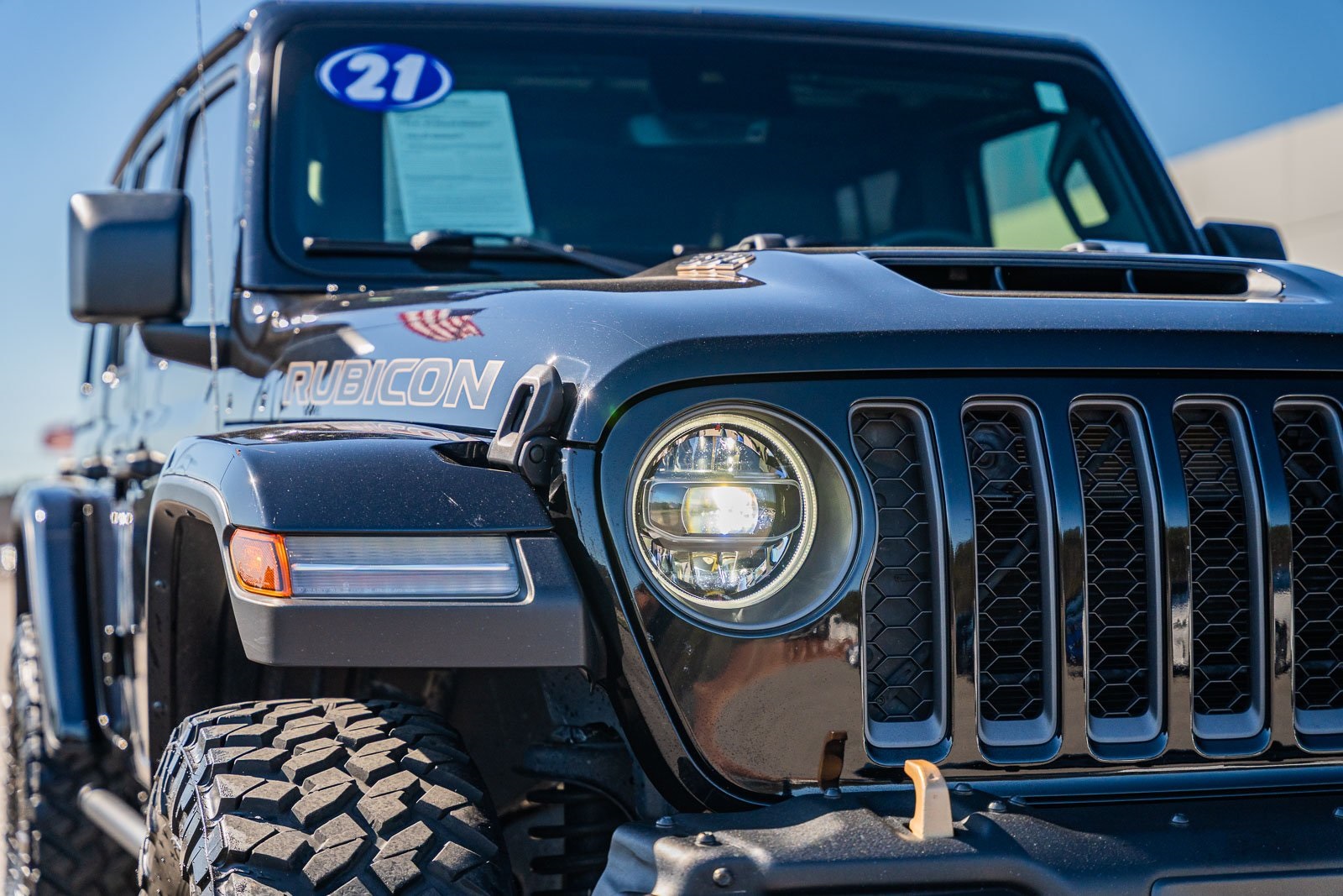 This vehicle comes equipped with Quick Order Package 27X, Ford Blue Certified Eligible Certified, 3.73 Rear Axle Ratio, 4-Wheel Disc Brakes, 9 Speakers, ABS brakes, Air Conditioning, Alloy wheels, AM/FM radio: SiriusXM, Apple CarPlay/Android Auto, Auto High-beam Headlights, Auto-dimming Rear-View mirror, Automatic temperature control, Body Color 3-Piece Hard Top, Brake assist, Compass, Delay-off headlights, Driver door bin, Driver vanity mirror, Dual front impact airbags, Dual front side impact airbags, Electronic Stability Control, Emergency communication system: SiriusXM Guardian, Freedom Panel Storage Bag, Front anti-roll bar, Front Bucket Seats, Front Center Armrest w/Storage, Front dual zone A/C, Front fog lights, Front reading lights, Fully automatic headlights, Garage door transmitter, Glass rear window, Heated door mirrors, Heated front seats, Heated steering wheel, Illuminated entry, Integrated roll-over protection, Leather Shift Knob, Leather steering wheel, Leather Trimmed Bucket Seats, Low tire pressure warning, Manufacturer's Statement of Origin, Navigation System, No Soft Top, Occupant sensing airbag, Outside temperature display, Panic alarm, ParkView Rear Back-Up Camera, Passenger door bin, Passenger vanity mirror, Power door mirrors, Power steering, Power windows, Radio data system, Radio: Uconnect 4C Nav w/8.4" Display, Rear anti-roll bar, Rear reading lights, Rear seat center armrest, Rear Window Defroster, Rear window defroster, Rear window wiper, Rear Window Wiper/Washer, Remote keyless entry, Rubicon 392 Suspension, Security system, Speed control, Split folding rear seat, Steering wheel mounted audio controls, Tachometer, Telescoping steering wheel, Tilt steering wheel, Traction control, Trip computer, Variably intermittent wipers, Voltmeter, and Wheels: 17" x 7.5" Beadlock Capable.
