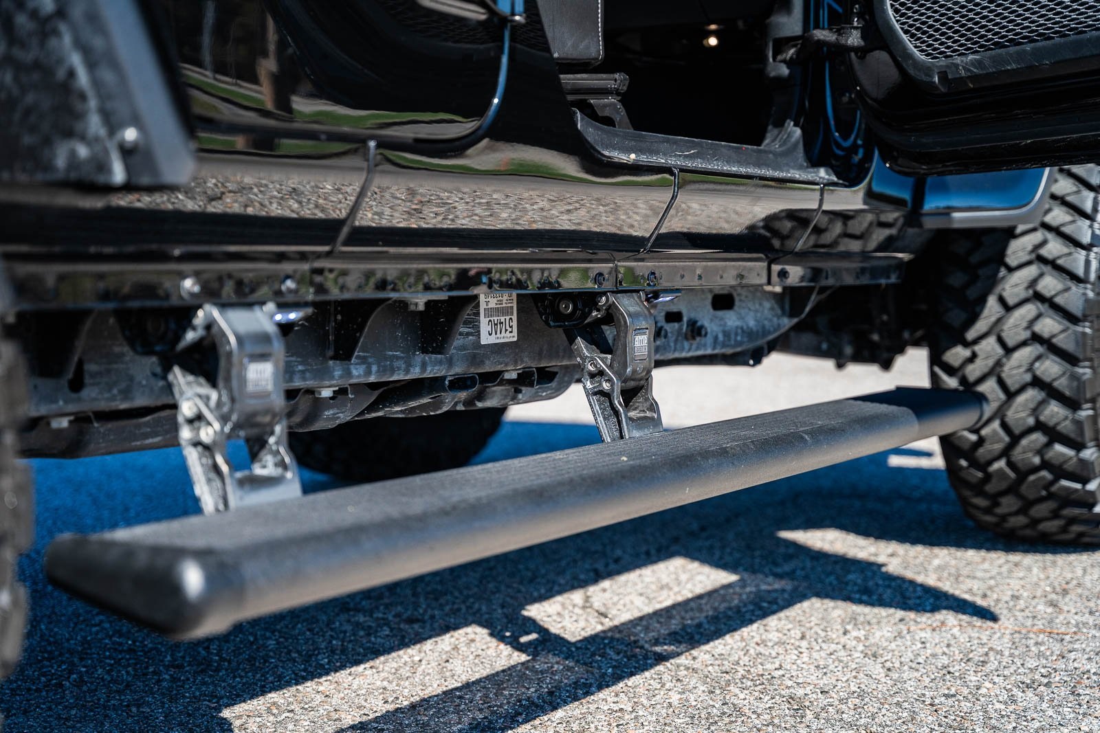 - Spare tire mounted on the exterior of the vehicle