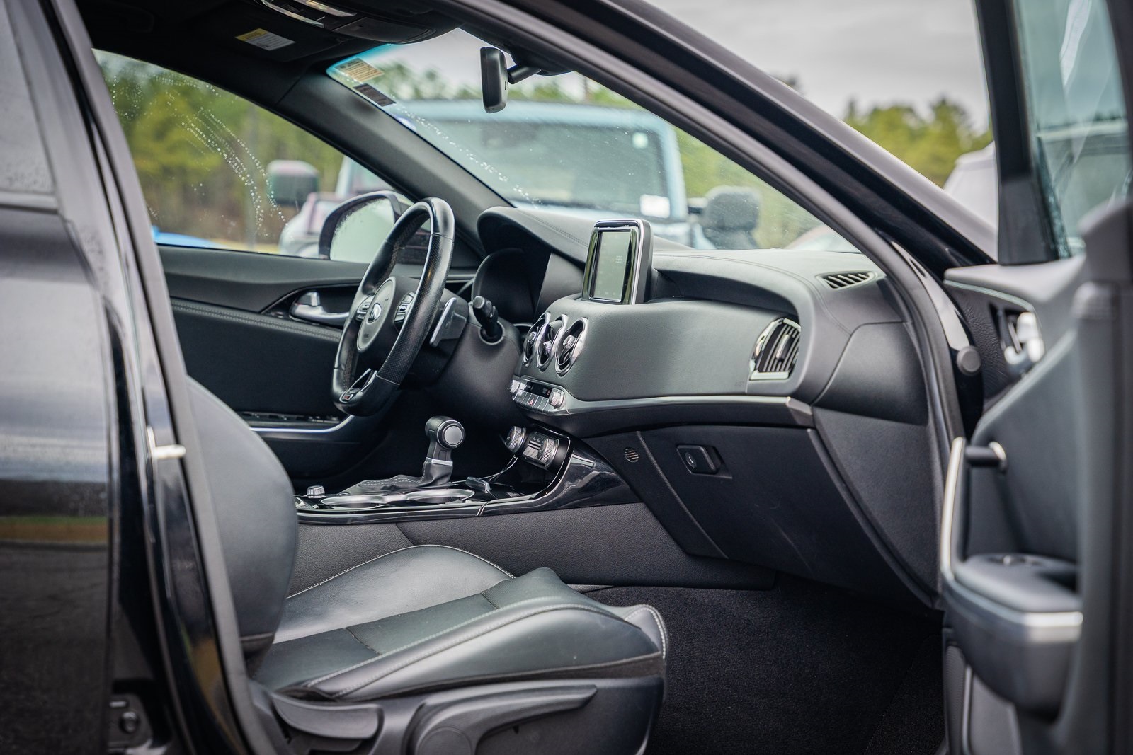 This vehicle comes equipped with 4-Wheel Disc Brakes, 6 Speakers, ABS brakes, Air Conditioning, Alloy wheels, AM/FM radio: SiriusXM, Anti-whiplash front head restraints, Apple CarPlay & Android Auto, Auto-dimming Rear-View mirror, Automatic temperature control, Brake assist, Bumpers: body-color, Cargo Tray, Delay-off headlights, Driver door bin, Driver vanity mirror, Dual front impact airbags, Dual front side impact airbags, EC Mirror w/Compass & HomeLink, Electronic Stability Control, Emergency communication system: UVO eServices, Exterior Parking Camera Rear, Four wheel independent suspension, Front anti-roll bar, Front Bucket Seats, Front Center Armrest, Front dual zone A/C, Front reading lights, Fully automatic headlights, Heated door mirrors, Heated Front Bucket Seats, Heated front seats, Illuminated entry, Knee airbag, Leather Seat Trim, Low tire pressure warning, Occupant sensing airbag, Outside temperature display, Overhead airbag, Overhead console, Panic alarm, Passenger door bin, Passenger vanity mirror, Power door mirrors, Power driver seat, Power steering, Power windows, Puddle Lamp, Radio: AM/FM/MP3/HD/SiriusXM Audio System, Rear air conditioning, Rear anti-roll bar, Rear seat center armrest, Rear window defroster, Remote keyless entry, Remote Start (Push-Button Start), Security system, Speed control, Speed-Sensitive Wipers, Split folding rear seat, Sport steering wheel, Steering wheel mounted audio controls, Tachometer, Telescoping steering wheel, Tilt steering wheel, Traction control, Trip computer, Turn signal indicator mirrors, Variably intermittent wipers, and Wheels: 8.0J x 18 Alloy.
