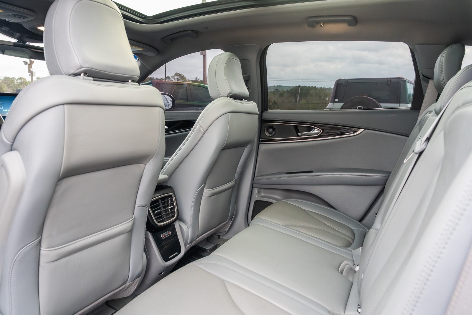 This vehicle comes equipped with Cargo Utility Package (110V/150W AC Power Outlet, Cargo Compartment w/Reversible Mat, Interior Cargo Cover, Molded Plastic Storage Bins, and Rear Cargo Management System), Equipment Group 200A, Monochromatic Package (20" Wheels, Black Lower Grille w/Painted Black Accent Trim, Body-Color Painted Nautilus Badging, Unique Body-Color Mesh Upper Grille, and Wheels: 20" Black Aluminum), 13 Speakers, 3.80 Axle Ratio, 4-Wheel Disc Brakes, ABS brakes, Air Conditioning, Alloy wheels, AM/FM radio: SiriusXM with 360L, Auto High-beam Headlights, Auto tilt-away steering wheel, Auto-dimming door mirrors, Auto-dimming Rear-View mirror, Automatic temperature control, Brake assist, Bumpers: body-color, Compass, Delay-off headlights, Driver door bin, Driver vanity mirror, Dual front impact airbags, Dual front side impact airbags, Electronic Stability Control, Emergency communication system: 911 Assist, Four wheel independent suspension, Front anti-roll bar, Front Bucket Seats, Front Center Armrest w/Storage, Front dual zone A/C, Front reading lights, Fully automatic headlights, Garage door transmitter: HomeLink, Heated door mirrors, Heated front seats, Heated rear seats, Heated steering wheel, Illuminated entry, Knee airbag, Leather steering wheel, Linear Brushed Aluminum Applique, Low tire pressure warning, Memory seat, Navigation System, Occupant sensing airbag, Outside temperature display, Overhead airbag, Overhead console, Panic alarm, Passenger door bin, Passenger vanity mirror, Power door mirrors, Power driver seat, Power Liftgate, Power moonroof: Panoramic Vista Roof, Power passenger seat, Power steering, Power windows, Prem Lthr-Trimmed Heated/Ventilated Captain Seats, Radio data system, Radio: Revel AM/FM/HD Audio System, Rain sensing wipers, Rear anti-roll bar, Rear reading lights, Rear seat center armrest, Rear window defroster, Rear window wiper, Remote keyless entry, Satin Roof Rack Side Rails w/o Crossbars, Security system, Speed control, Speed-sensing steering, Speed-Sensitive Wipers, Split folding rear seat, Spoiler, Steering wheel memory, Steering wheel mounted A/C controls, Steering wheel mounted audio controls, SYNC 4 w/Enhanced Voice Recognition, Tachometer, Telescoping steering wheel, Tilt steering wheel, Traction control, Trip computer, Turn signal indicator mirrors, Variably intermittent wipers, Ventilated front seats, and Wheels: 18" Premium Painted Bright Machined Alum.