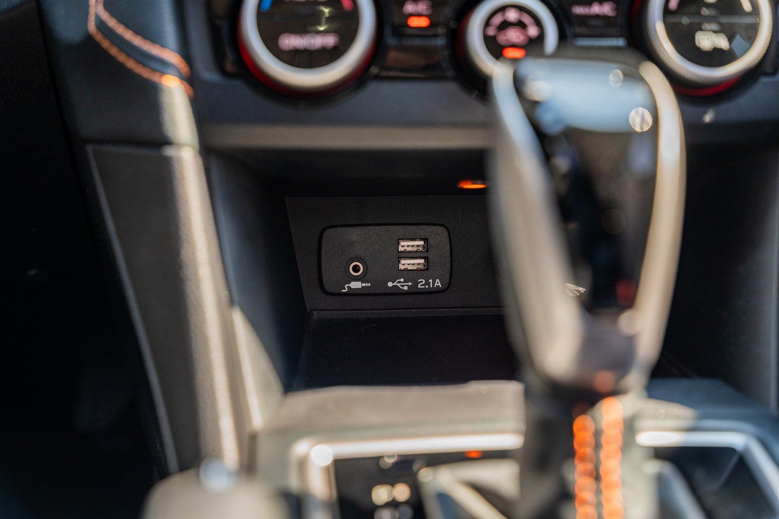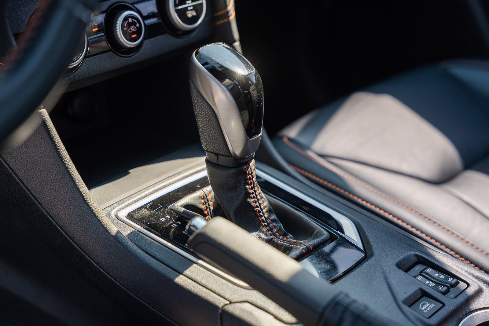 - Leather and piano black gear shifter material