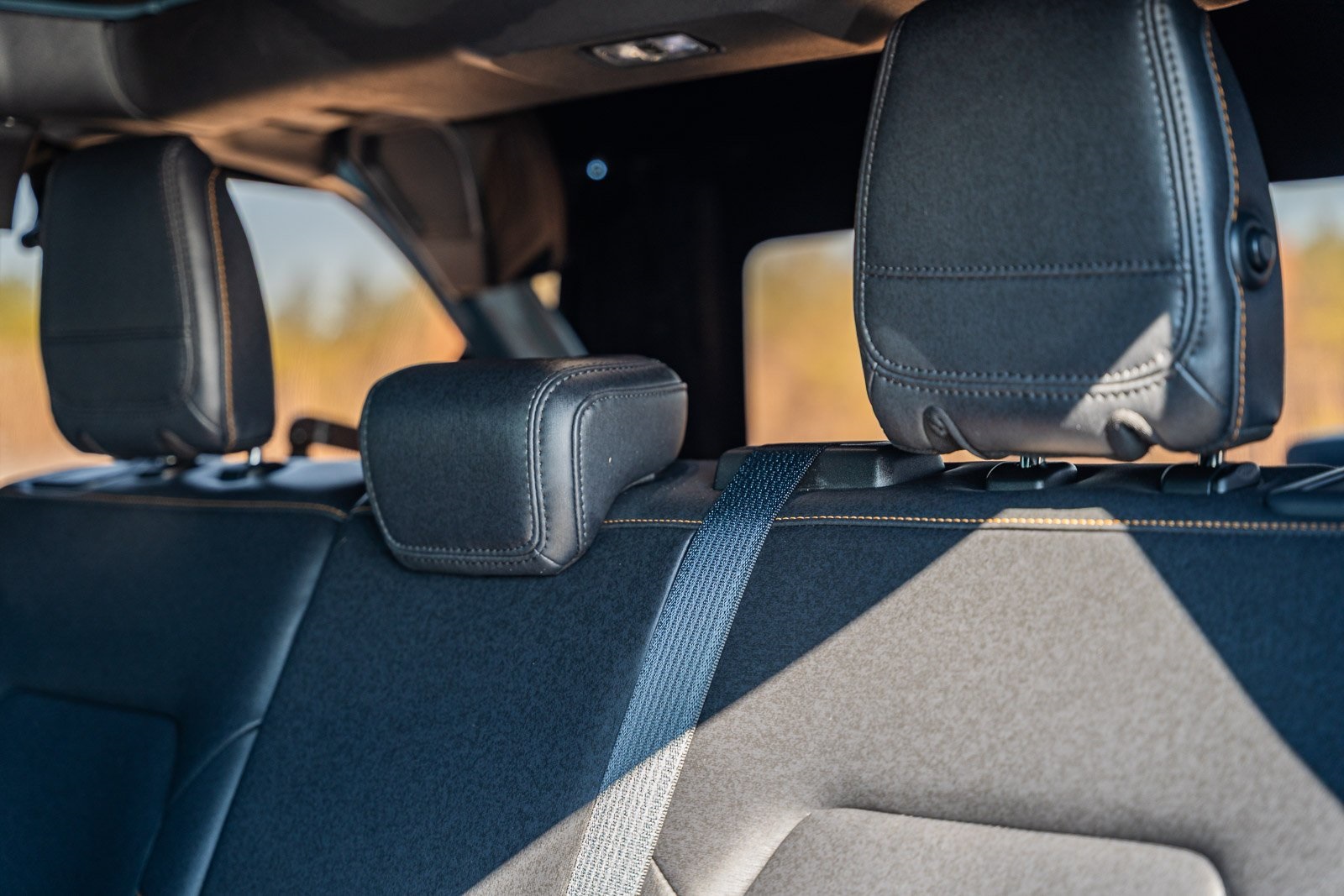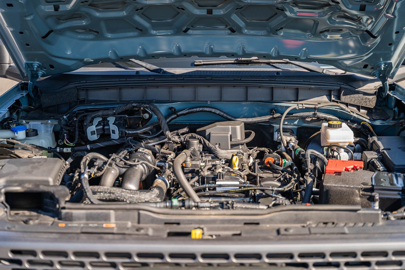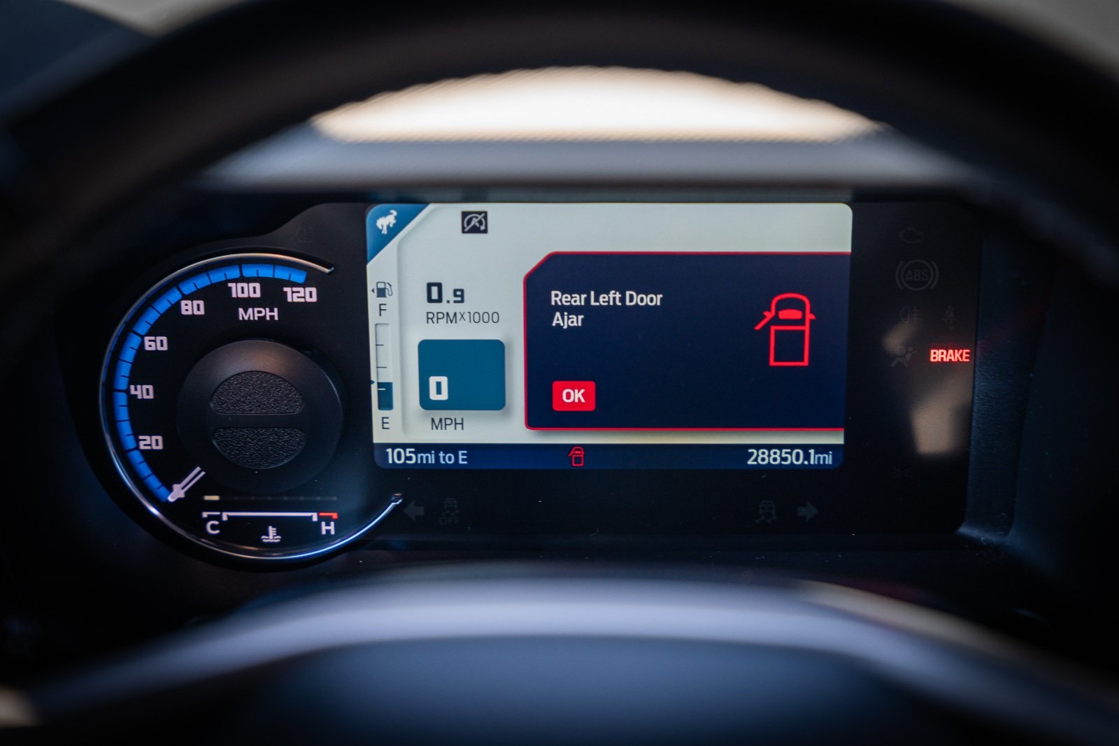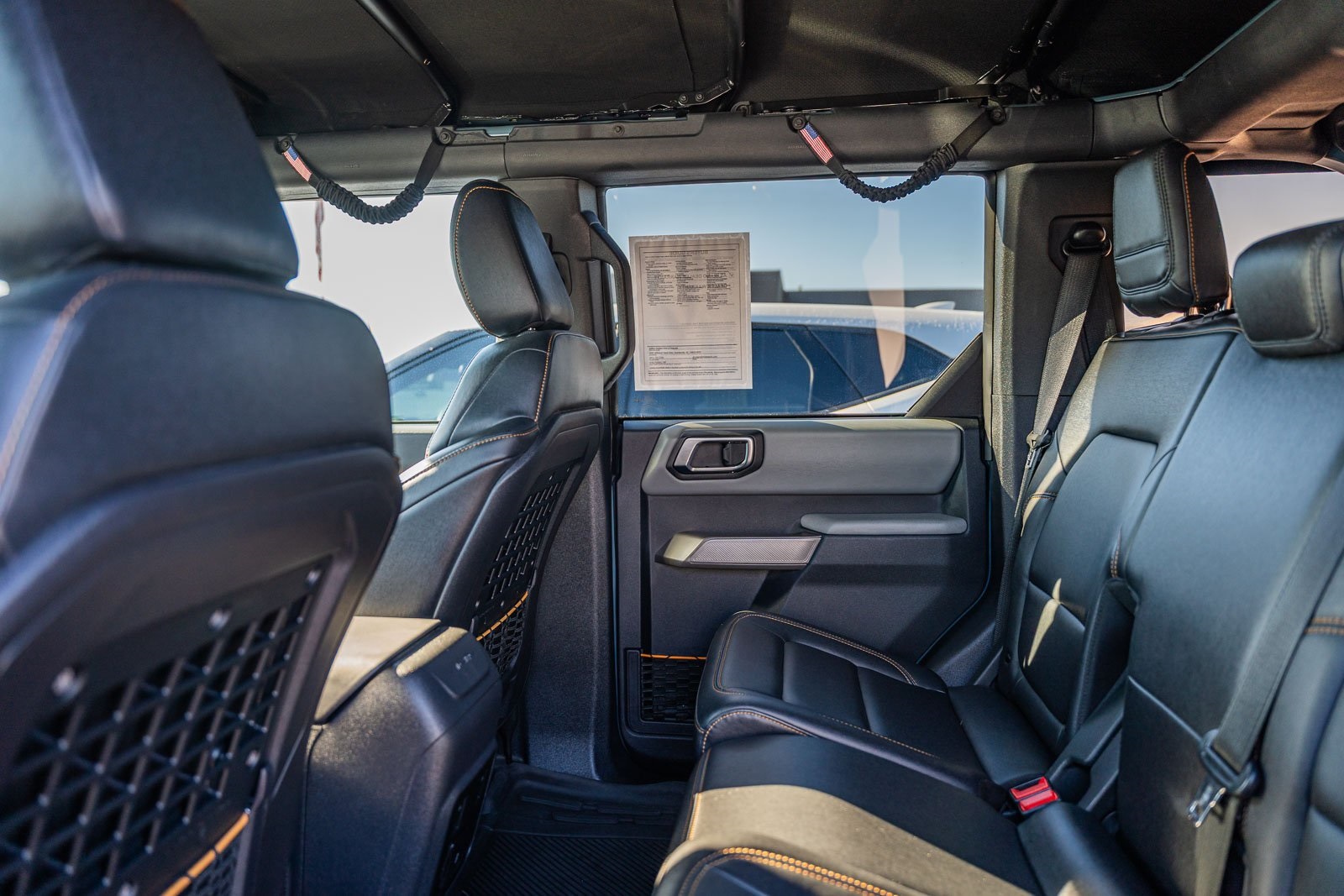 This vehicle comes equipped with Equipment Group 331A Standard Package, Ford Certified, 4-Wheel Disc Brakes, 4.7 Axle Ratio, 6 Speakers, ABS brakes, Air Conditioning, Alloy wheels, AM/FM radio: SiriusXM with 360L, AM/FM Stereo, Auto High-beam Headlights, Brake assist, Compass, Delay-off headlights, Driver door bin, Driver vanity mirror, Dual front impact airbags, Dual front side impact airbags, Electronic Stability Control, Emergency communication system: 911 Assist, Exterior Parking Camera Rear, Ford Performance Heavy-Duty Modular Front Bumper, Front anti-roll bar, Front Bucket Seats, Front Center Armrest, Front reading lights, Front wheel independent suspension, Fully automatic headlights, Heated door mirrors, Illuminated entry, Integrated roll-over protection, Leather Shift Knob, Low tire pressure warning, Marine Grade Vinyl Bucket Seats, Occupant sensing airbag, Outside temperature display, Overhead airbag, Overhead console, Panic alarm, Passenger door bin, Passenger vanity mirror, Power door mirrors, Power steering, Power windows, Radio data system, Remote keyless entry, Security system, SiriusXM Radio w/360L, Speed control, Split folding rear seat, Steering wheel mounted audio controls, SYNC 4, Tachometer, Telescoping steering wheel, Tilt steering wheel, Traction control, Trip computer, Variably intermittent wipers, Voltmeter, and Wheels: 17" Machined Carbonized Aluminum.