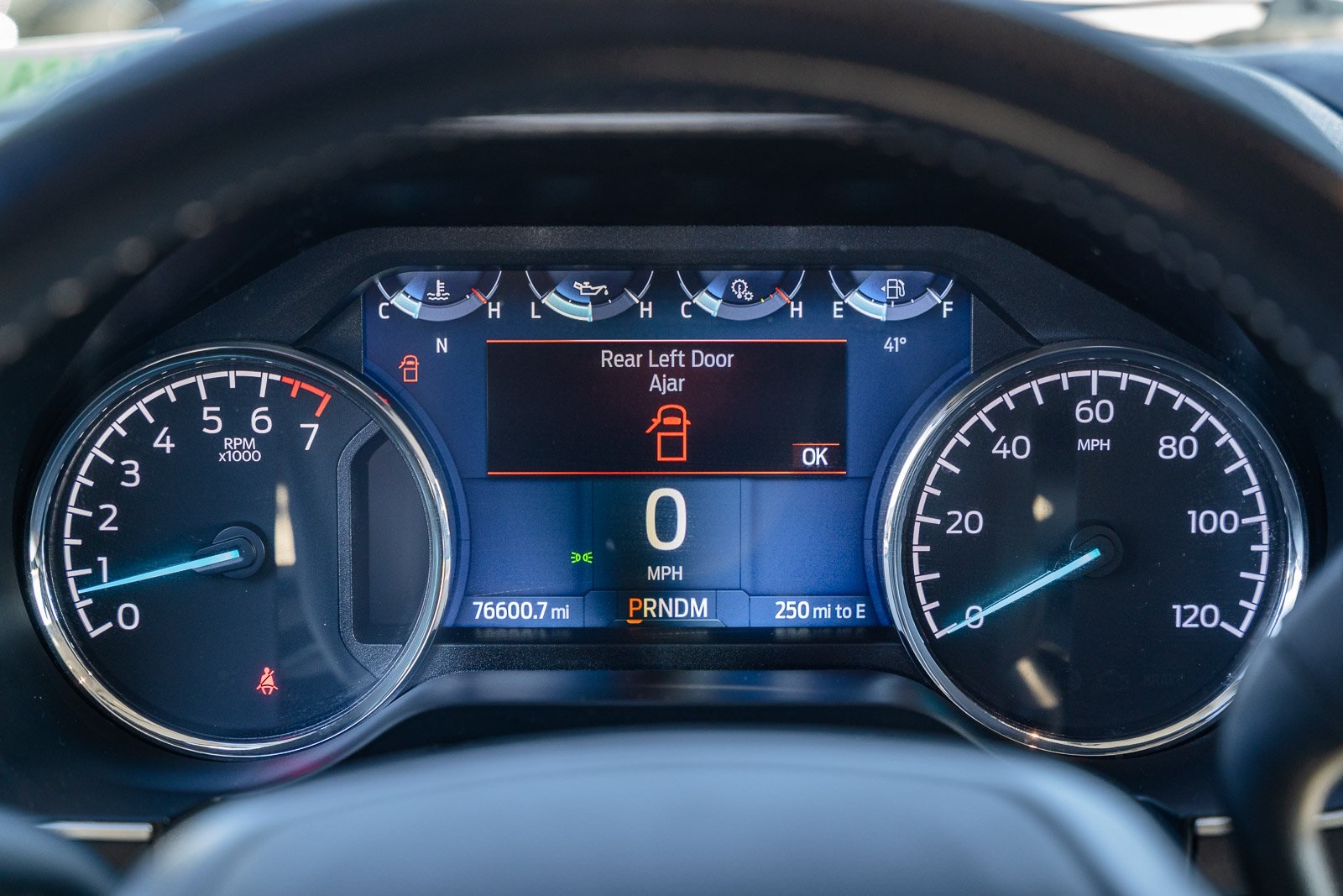 This vehicle comes equipped with Bed Utility Package (BoxLink, LED Box Lighting, Tailgate Step w/Tailgate Work Surface, and Zone Lighting), Equipment Group 302A High (Auto-Dimming Rear-View Mirror, Class IV Trailer Hitch Receiver, LED Sideview Mirror Spotlights, Onboard 400W Outlet, Power Glass Heated Sideview Mirrors, Radio: AM/FM SiriusXM w/360L, and SYNC 4 w/Enhanced Voice Recognition), Trailer Tow Package (Integrated Trailer Brake Controller and Pro Trailer Backup Assist), XLT Chrome Appearance Package (2-Bar Style Grille w/Chrome 2 Minor Bars, Bright Polished Step Bars, Chrome Door & Tailgate Handles w/Body-Color Bezel, Chrome Single-Tip Exhaust, and Wheels: 18" Chrome-Like PVD), Ford Gold Certified Certified, 4WD, 360 Degree Camera, 4-Wheel Disc Brakes, 6 Speakers, ABS brakes, Air Conditioning, Alloy wheels, AM/FM radio, Auto High-beam Headlights, Auto Start-Stop Removal, Brake assist, Bumpers: chrome, Cloth 40/20/40 Front Seat, Compass, Connected Navigation & SiriusXM w/360L Removal, Delay-off headlights, Driver door bin, Driver vanity mirror, Dual front impact airbags, Dual front side impact airbags, Electronic Stability Control, Emergency communication system: SYNC 4 911 Assist, Extended Range 36 Gallon Fuel Tank, Exterior Parking Camera Rear, Front anti-roll bar, Front Center Armrest w/Storage, Front fog lights, Front reading lights, Front wheel independent suspension, Fully automatic headlights, Heated door mirrors, Illuminated entry, Interior Work Surface, Low tire pressure warning, Occupant sensing airbag, Outside temperature display, Overhead airbag, Overhead console, Panic alarm, Partitioned Lockable Fold-Flat Storage, Passenger door bin, Passenger vanity mirror, Power door mirrors, Power steering, Power windows, Power-Sliding Rear Window, Radio data system, Radio: AM/FM Stereo w/6 Speakers, Rear reading lights, Rear step bumper, Rear window defroster, Remote keyless entry, Remote Start System, Security system, Speed control, Speed-sensing steering, Split folding rear seat, Steering wheel mounted audio controls, SYNC 4, Tachometer, Telescoping steering wheel, Tilt steering wheel, Traction control, Tray Style Floor Liner (47W), Trip computer, Variably intermittent wipers, Voltmeter, Wheels: 17" Silver Painted Aluminum, and Wheels: 20" Chrome-Like PVD.