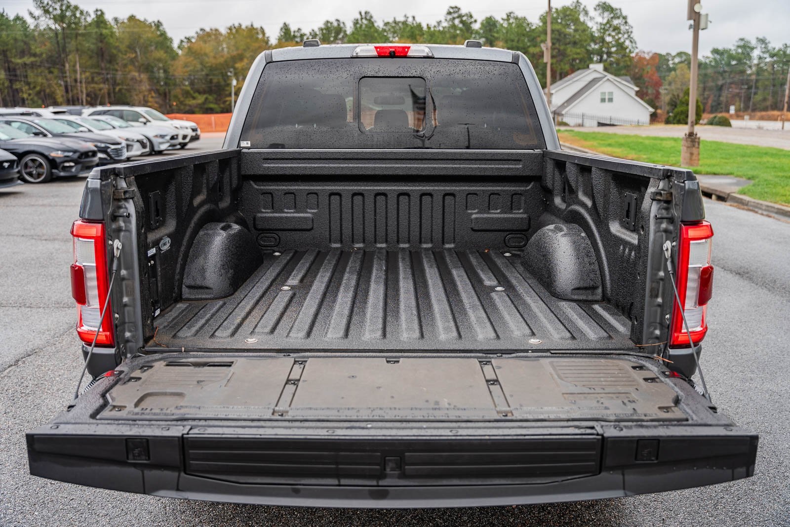 This vehicle comes equipped with Bed Utility Package (BoxLink, LED Box Lighting, Power Tailgate, and Tailgate Step w/Tailgate Work Surface), Equipment Group 501A Mid (Radio: B&O Sound System by Bang & Olufsen), FX4 Off-Road Package (Tray Style Floor Liner (47W)), Lariat Chrome Appearance Package (6" Bright Polished Running Board, Chrome 2-Bar Grille w/4 Minor Bars, Chrome Door & Tailgate Handles w/Body-Color Bezel, Chrome Single-Tip Exhaust, Chrome Skull Caps on Exterior Mirrors, and Wheels: 18" Chrome-Like PVD), Trailer Tow Package (Class IV Trailer Hitch Receiver, Integrated Trailer Brake Controller, and Pro Trailer Backup Assist), Ford Certified, 3.5L PowerBoost Full-Hybrid V6, 4WD, 18" Machined-Aluminum Wheels, 360 Degree Camera, 4-Wheel Disc Brakes, 7 Speakers, ABS brakes, Adjustable pedals, Air Conditioning, Alloy wheels, AM/FM radio: SiriusXM with 360L, Auto High-beam Headlights, Auto Start-Stop Removal, Auto-dimming door mirrors, Auto-dimming Rear-View mirror, Automatic temperature control, Brake assist, Bumpers: chrome, Compass, Delay-off headlights, Driver door bin, Driver vanity mirror, Dual front impact airbags, Dual front side impact airbags, Electronic Stability Control, Emergency communication system: SYNC 4 911 Assist, Exterior Parking Camera Rear, Front anti-roll bar, Front Center Armrest w/Storage, Front dual zone A/C, Front fog lights, Front reading lights, Front wheel independent suspension, Fully automatic headlights, Heated door mirrors, Heated front seats, Illuminated entry, Interior Work Surface, Leather-Trimmed 40/20/40 Front Seat, LED Sideview Mirror Spotlights, Low tire pressure warning, Memory seat, Occupant sensing airbag, Outside temperature display, Overhead airbag, Overhead console, Panic alarm, Partitioned Lockable Fold-Flat Storage, Passenger door bin, Passenger vanity mirror, Pedal memory, Power door mirrors, Power driver seat, Power passenger seat, Power steering, Power windows, Pro Power Onboard - 7.2KW, Radio data system, Radio: AM/FM SiriusXM w/360L, Rear reading lights, Rear seat center armrest, Rear step bumper, Rear window defroster, Remote keyless entry, Security system, Speed control, Speed-sensing steering, Split folding rear seat, Steering wheel mounted audio controls, SYNC 4 w/Enhanced Voice Recognition, Tachometer, Telescoping steering wheel, Tilt steering wheel, Traction control, Trip computer, Turn signal indicator mirrors, Variably intermittent wipers, Ventilated front seats, Voltmeter, Wheels: 20" Chrome-Like PVD, and Wireless Charging Pad.