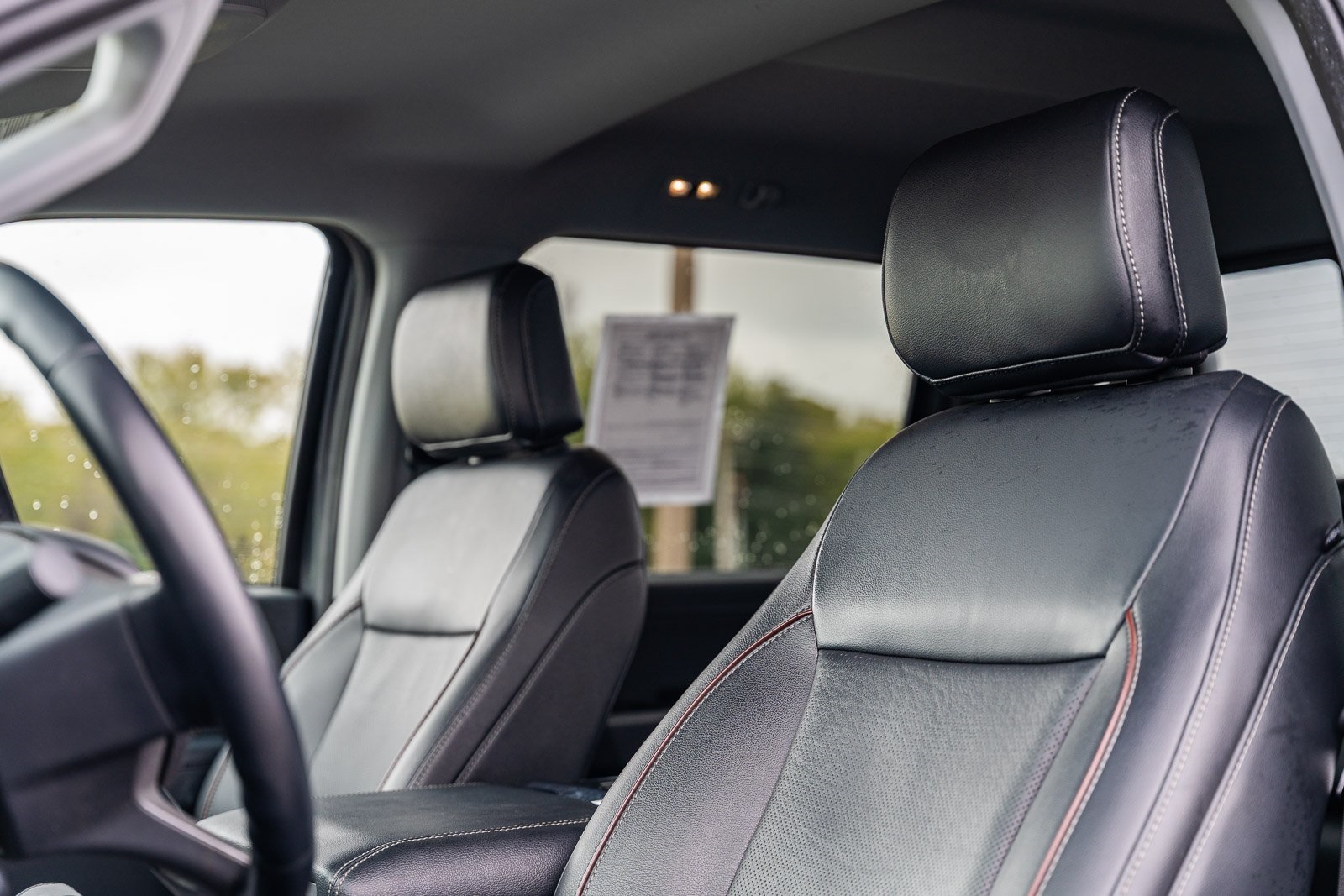 - Leather front seat upholstery