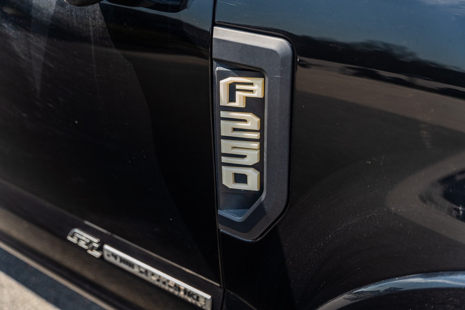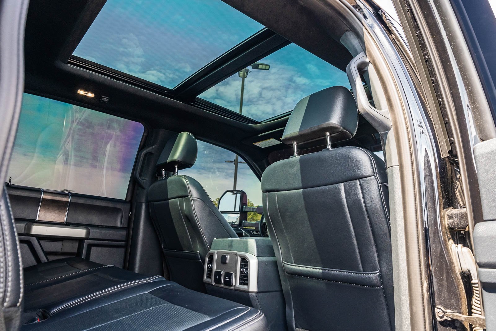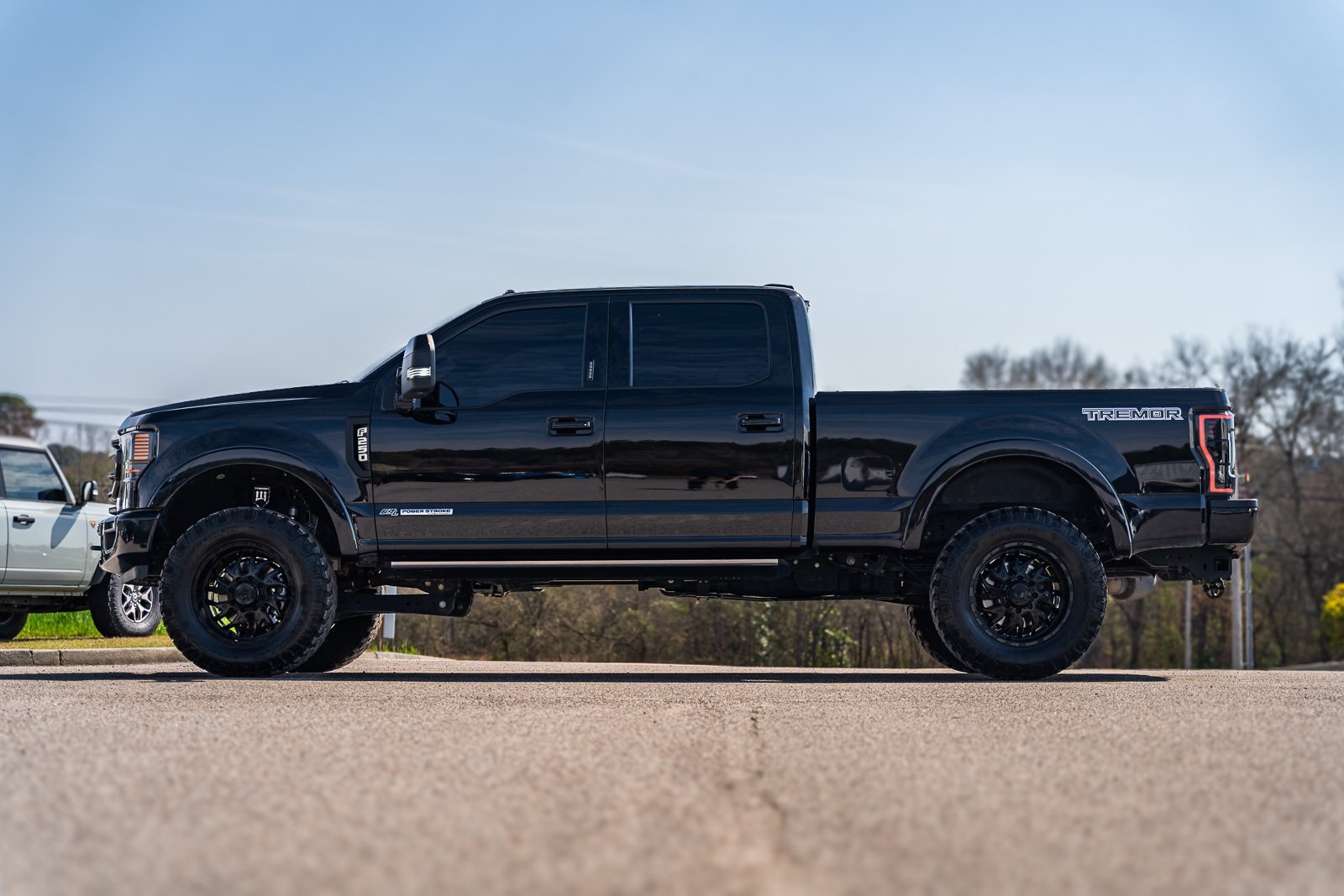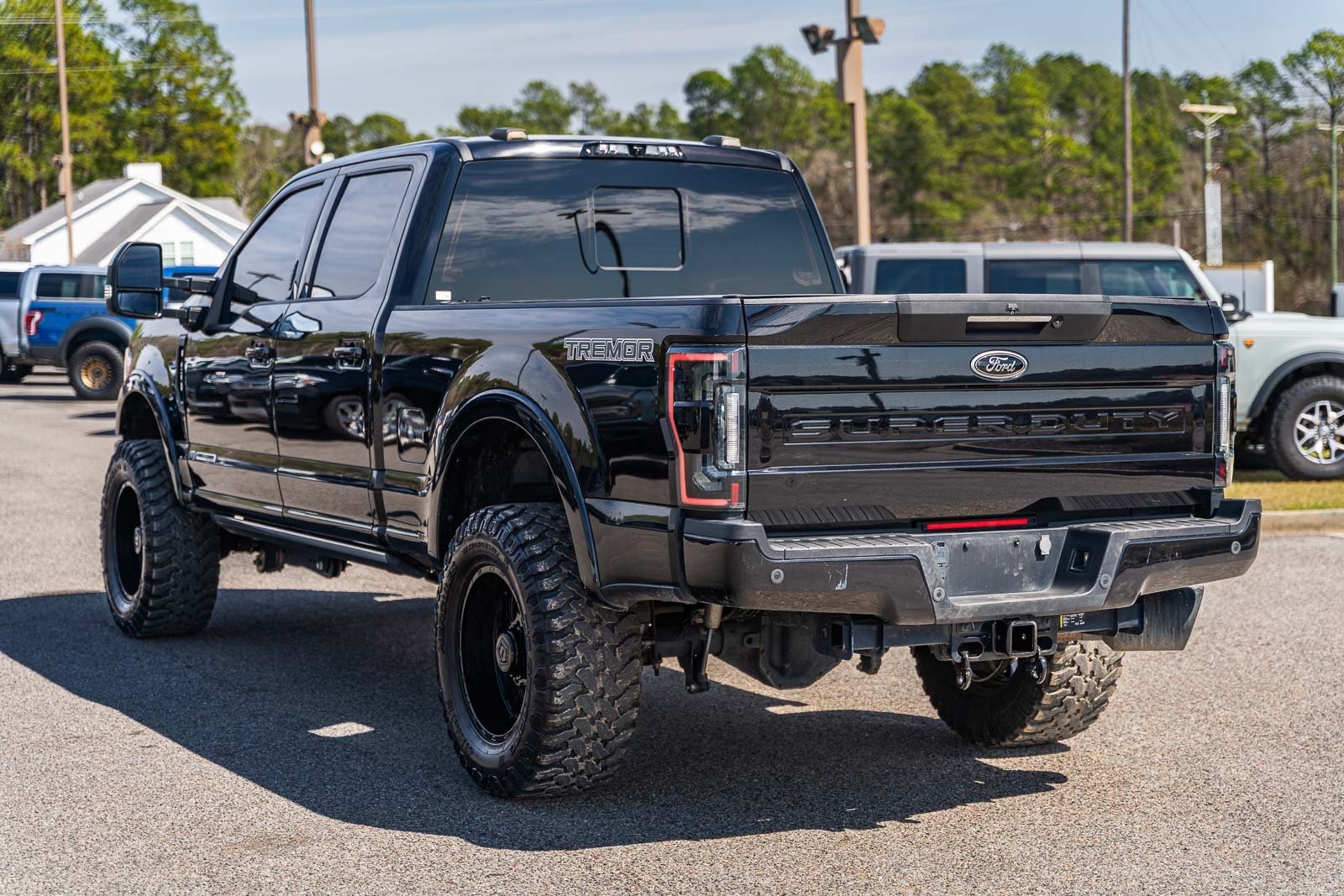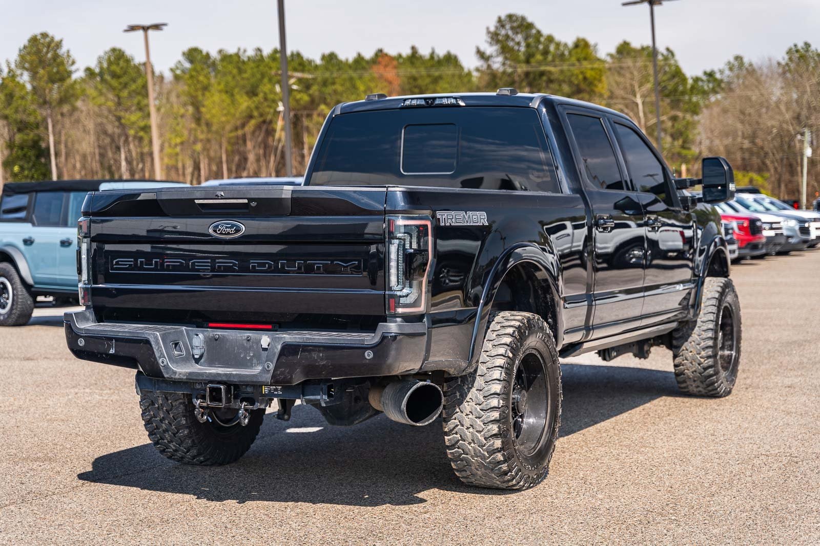 This vehicle comes equipped with GVWR: 10,000 lb Payload Package, High Capacity Trailer Tow Package, Lariat Black Appearance Pkg w/o Spray-In Bedliner (6" Ebony Black Angular Running Boards, Black Out Surrounds LED Only Headlamps, Body-Color Front & Rear Bumpers, Ebony Black Painted Front Grille Bars, Ebony Black Painted Mirror Caps, Rear Wheel Well Liners (Pre-Installed), and Wheels: 20" High-Gloss Black Premium Painted Alum), Lariat Ultimate Package (Ambient Lighting - Fixed Color, Easy Entry®/Exit Memory Driver's Seat Feature, Intelligent Access w/Push-Button Start, LED Box Lighting, Memory Power-Adjustable Pedals, Power Heated/Ventilated Driver Seat w/Memory, Power Heated/Ventilated Passenger Seat, Power Telescoping/Tilt Steering Wheel/Column, PowerScope Trailer Tow Mirrors w/Memory, Remote Start System, Remote Tailgate Release, and Tailgate Step & Handle), Order Code 608A, Pro Trailer Backup Assist - High Capacity (Lane Departure Warning System and Ultimate Trailer Tow Camera System), 4WD, 10 Speakers, 397 Amp Alternator, 4-Wheel Disc Brakes, ABS brakes, Adjustable pedals, Advanced Security Pack Inclination Sensor Removal, Air Conditioning, Alloy wheels, AM/FM radio: SiriusXM with 360L, Auto High-beam Headlights, Auto-dimming Rear-View mirror, Automatic temperature control, Brake assist, Bumpers: chrome, Compass, Delay-off headlights, Driver door bin, Driver vanity mirror, Dual front impact airbags, Dual front side impact airbags, Electronic Stability Control, Emergency communication system: SYNC 4 911 Assist, Engine Block Heater, Exterior Parking Camera Rear, Flow-Through Console, Front anti-roll bar, Front Bucket Seats, Front Center Armrest, Front dual zone A/C, Front fog lights, Front Leather Seating Surfaces 40/Console/40, Front reading lights, Fully automatic headlights, Heated door mirrors, Heated Steering Wheel, Illuminated entry, Leather steering wheel, LED Roof Clearance Lights, Low tire pressure warning, Navigation system: Connected Navigation, Outside temperature display, Overhead airbag, Overhead console, Panic alarm, Passenger door bin, Passenger vanity mirror, Power door mirrors, Power driver seat, Power passenger seat, Power steering, Power windows, Power-Deployable Running Boards, PowerScope Trailer Tow Mirrors w/Heat, Radio data system, Radio: B&O Sound System by Bang & Olufsen, Rain-Sensing Windshield Wipers, Rapid-Heat Supplemental Cab Heater, Rear Parking Sensors, Rear reading lights, Rear seat center armrest, Rear step bumper, Rear window defroster, Remote keyless entry, Security system, SiriusXM Radio w/360L, Speed control, Split folding rear seat, Steering wheel mounted audio controls, SYNC 4 w/Enhanced Voice Recognition, Tachometer, Telescoping steering wheel, Tilt steering wheel, Traction control, Trip computer, Turn signal indicator mirrors, Twin Panel Power Moonroof, Upfitter Switches (6), Variably intermittent wipers, and Wheels: 18" Bright Machined Cast Aluminum.