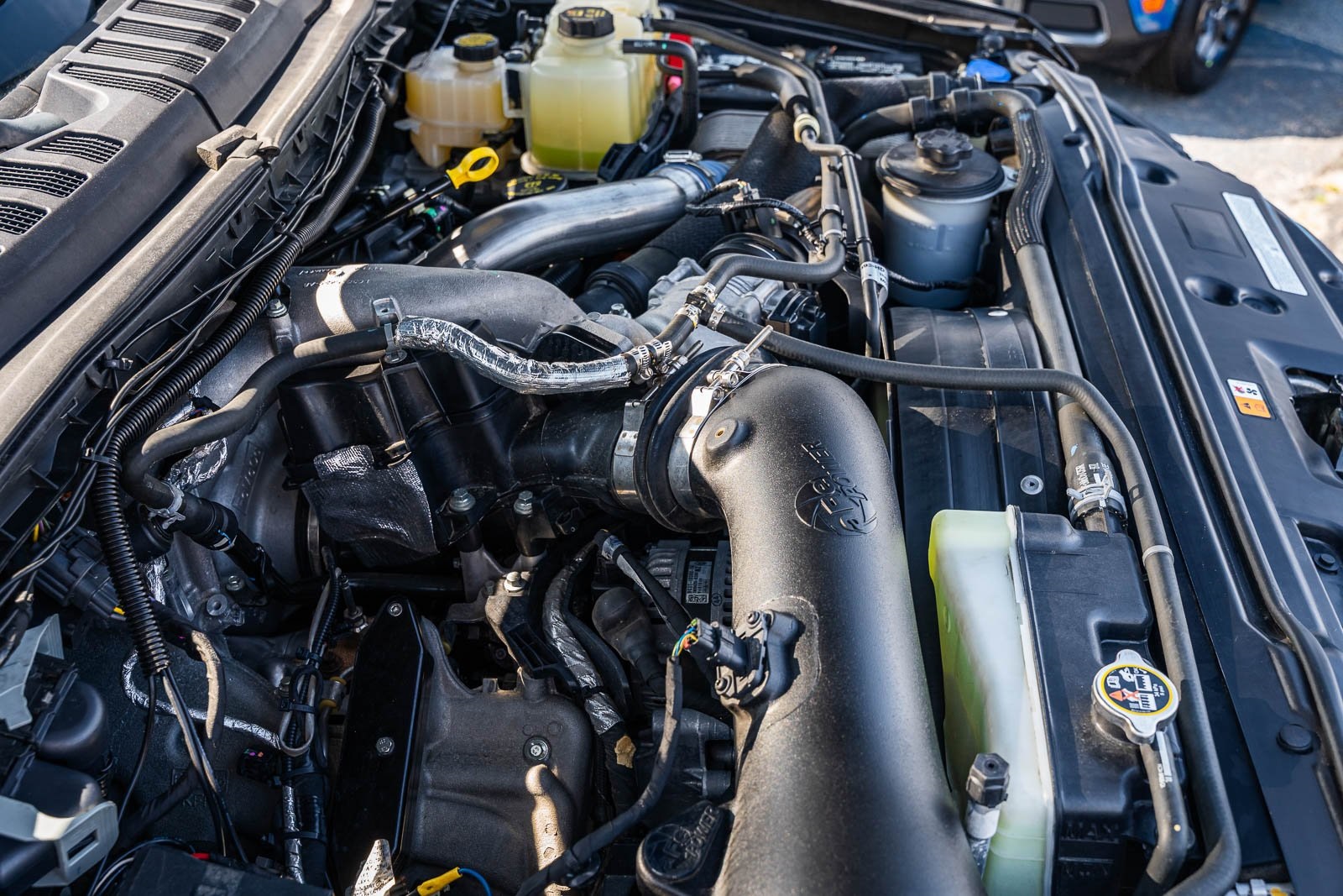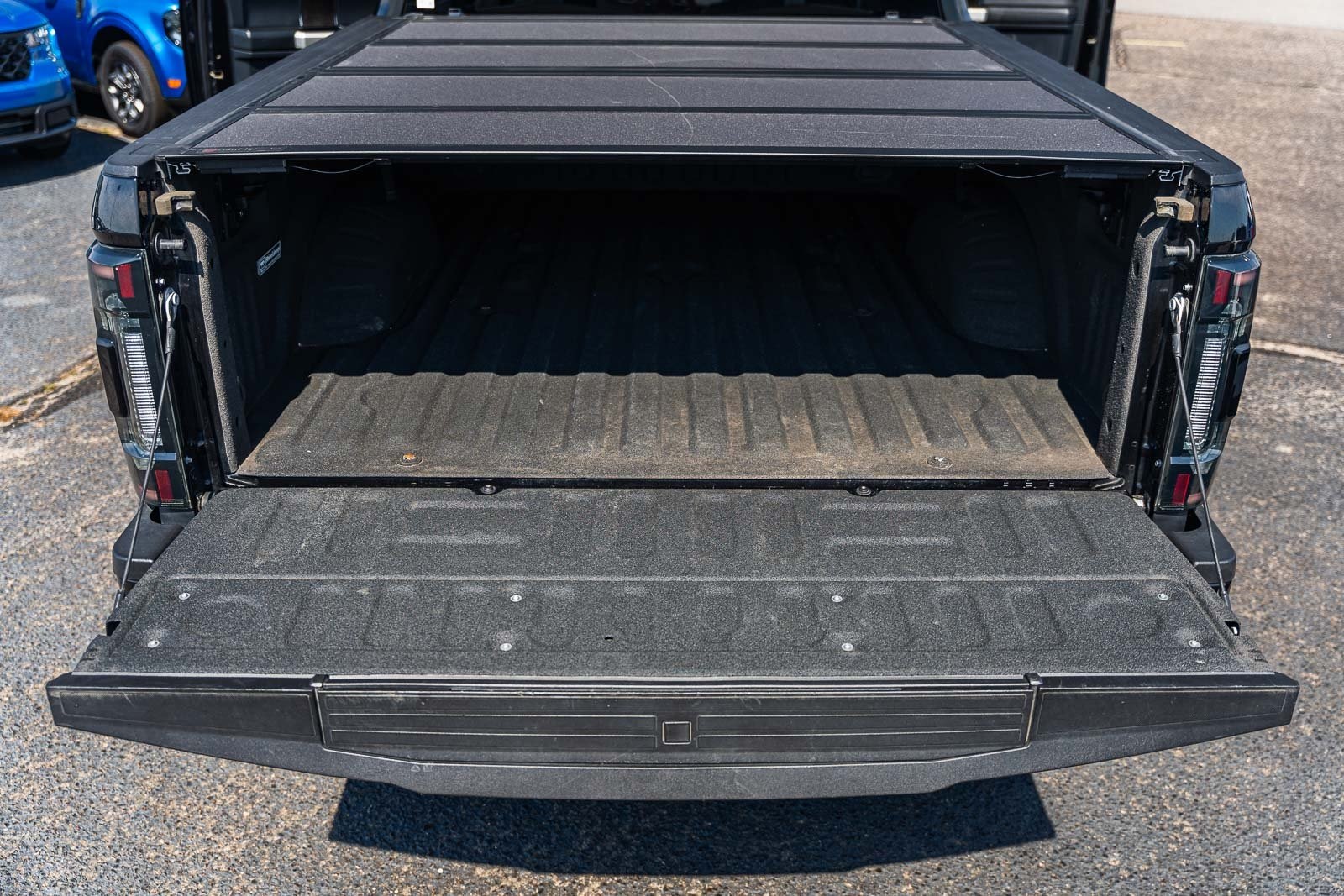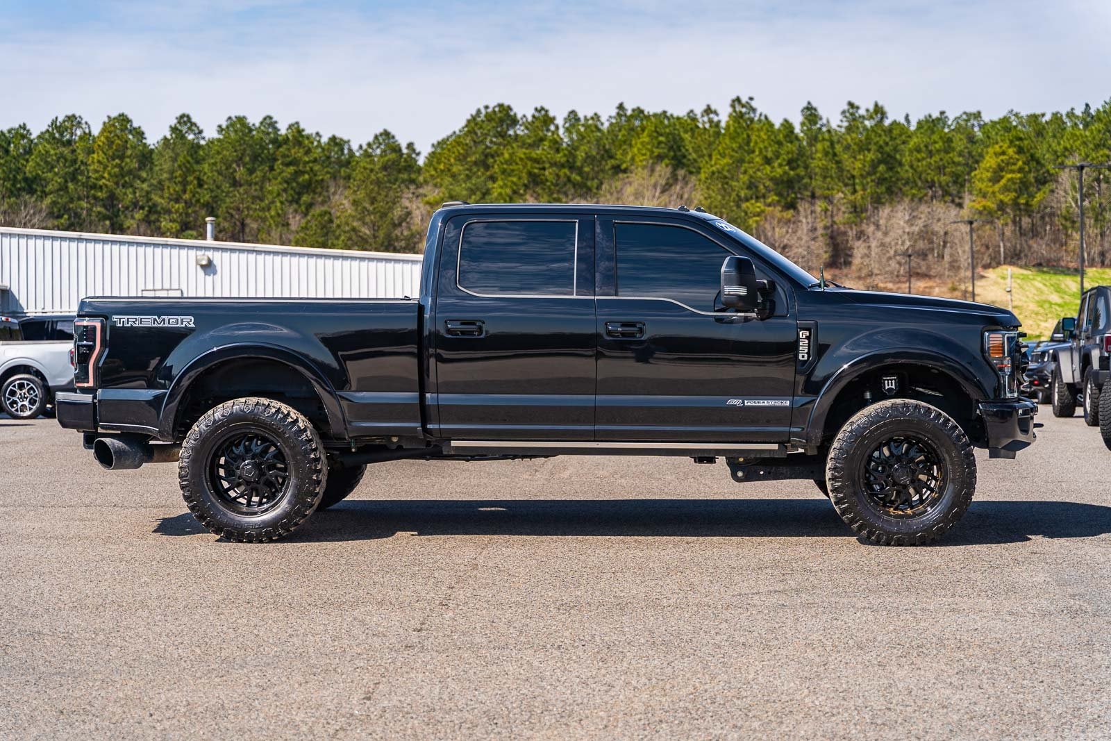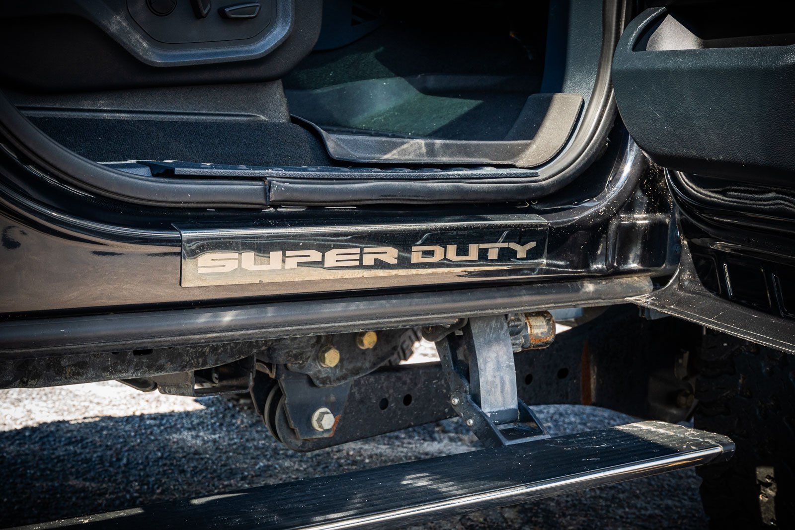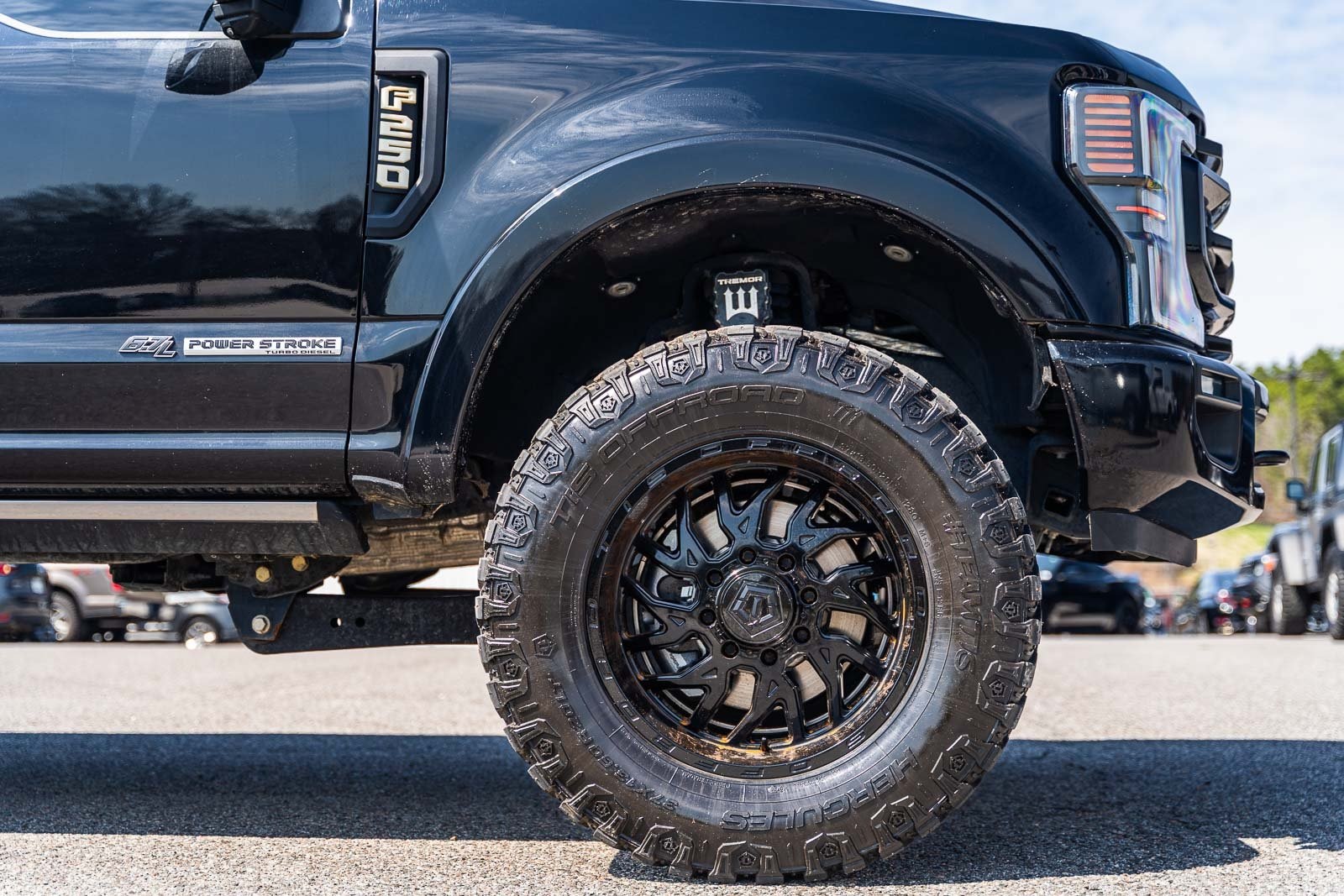 This vehicle comes equipped with GVWR: 10,000 lb Payload Package, High Capacity Trailer Tow Package, Lariat Black Appearance Pkg w/o Spray-In Bedliner (6" Ebony Black Angular Running Boards, Black Out Surrounds LED Only Headlamps, Body-Color Front & Rear Bumpers, Ebony Black Painted Front Grille Bars, Ebony Black Painted Mirror Caps, Rear Wheel Well Liners (Pre-Installed), and Wheels: 20" High-Gloss Black Premium Painted Alum), Lariat Ultimate Package (Ambient Lighting - Fixed Color, Easy Entry®/Exit Memory Driver's Seat Feature, Intelligent Access w/Push-Button Start, LED Box Lighting, Memory Power-Adjustable Pedals, Power Heated/Ventilated Driver Seat w/Memory, Power Heated/Ventilated Passenger Seat, Power Telescoping/Tilt Steering Wheel/Column, PowerScope Trailer Tow Mirrors w/Memory, Remote Start System, Remote Tailgate Release, and Tailgate Step & Handle), Order Code 608A, Pro Trailer Backup Assist - High Capacity (Lane Departure Warning System and Ultimate Trailer Tow Camera System), 4WD, 10 Speakers, 397 Amp Alternator, 4-Wheel Disc Brakes, ABS brakes, Adjustable pedals, Advanced Security Pack Inclination Sensor Removal, Air Conditioning, Alloy wheels, AM/FM radio: SiriusXM with 360L, Auto High-beam Headlights, Auto-dimming Rear-View mirror, Automatic temperature control, Brake assist, Bumpers: chrome, Compass, Delay-off headlights, Driver door bin, Driver vanity mirror, Dual front impact airbags, Dual front side impact airbags, Electronic Stability Control, Emergency communication system: SYNC 4 911 Assist, Engine Block Heater, Exterior Parking Camera Rear, Flow-Through Console, Front anti-roll bar, Front Bucket Seats, Front Center Armrest, Front dual zone A/C, Front fog lights, Front Leather Seating Surfaces 40/Console/40, Front reading lights, Fully automatic headlights, Heated door mirrors, Heated Steering Wheel, Illuminated entry, Leather steering wheel, LED Roof Clearance Lights, Low tire pressure warning, Navigation system: Connected Navigation, Outside temperature display, Overhead airbag, Overhead console, Panic alarm, Passenger door bin, Passenger vanity mirror, Power door mirrors, Power driver seat, Power passenger seat, Power steering, Power windows, Power-Deployable Running Boards, PowerScope Trailer Tow Mirrors w/Heat, Radio data system, Radio: B&O Sound System by Bang & Olufsen, Rain-Sensing Windshield Wipers, Rapid-Heat Supplemental Cab Heater, Rear Parking Sensors, Rear reading lights, Rear seat center armrest, Rear step bumper, Rear window defroster, Remote keyless entry, Security system, SiriusXM Radio w/360L, Speed control, Split folding rear seat, Steering wheel mounted audio controls, SYNC 4 w/Enhanced Voice Recognition, Tachometer, Telescoping steering wheel, Tilt steering wheel, Traction control, Trip computer, Turn signal indicator mirrors, Twin Panel Power Moonroof, Upfitter Switches (6), Variably intermittent wipers, and Wheels: 18" Bright Machined Cast Aluminum.