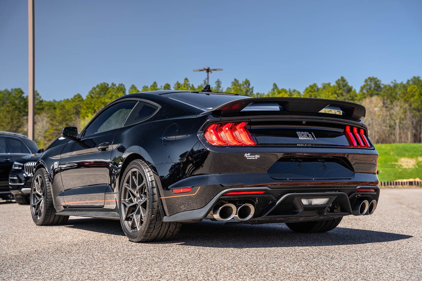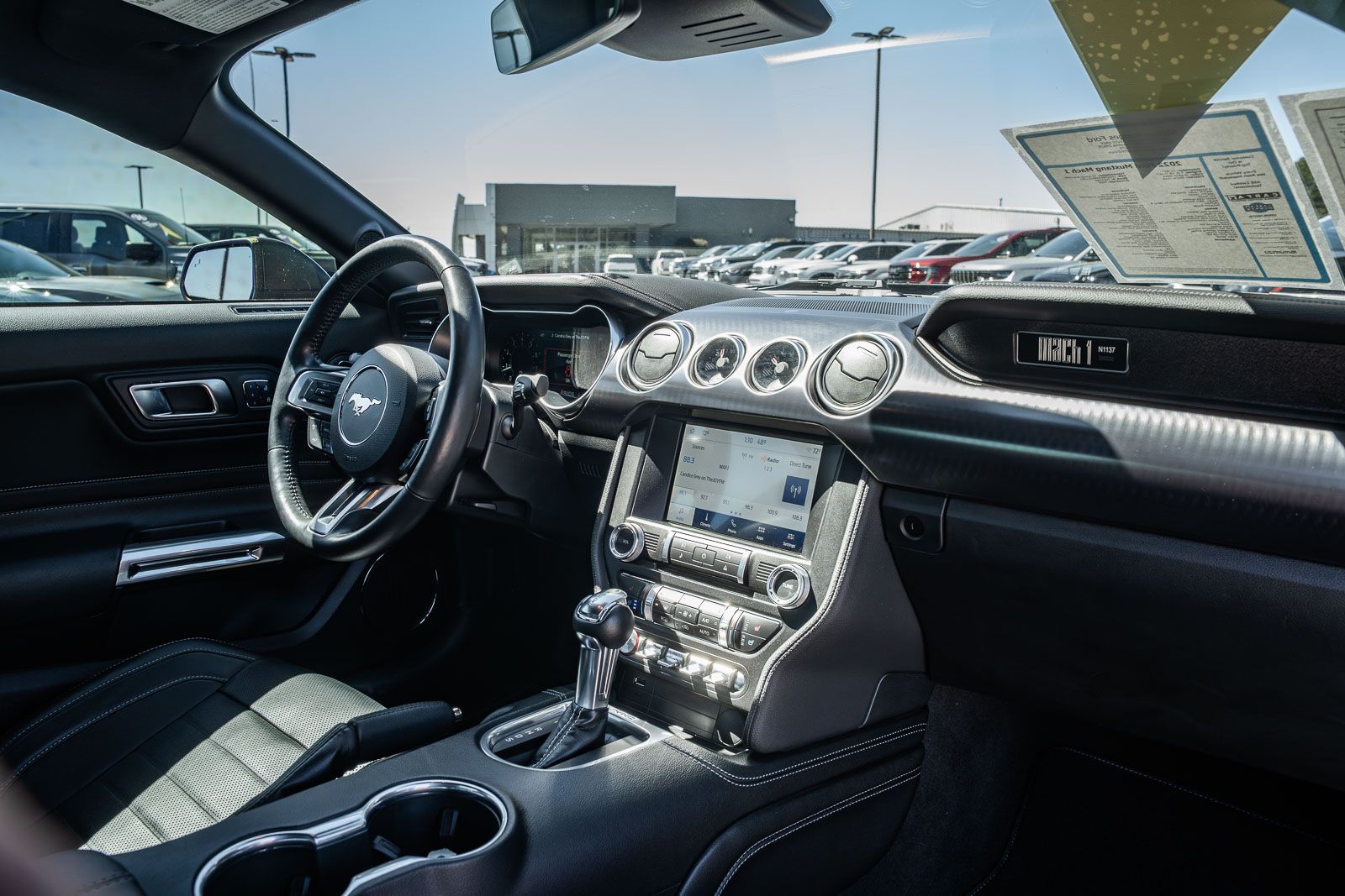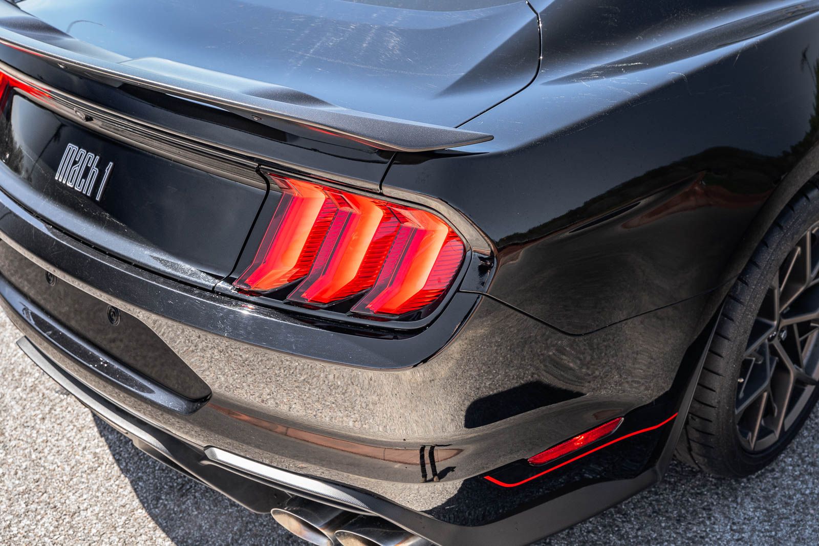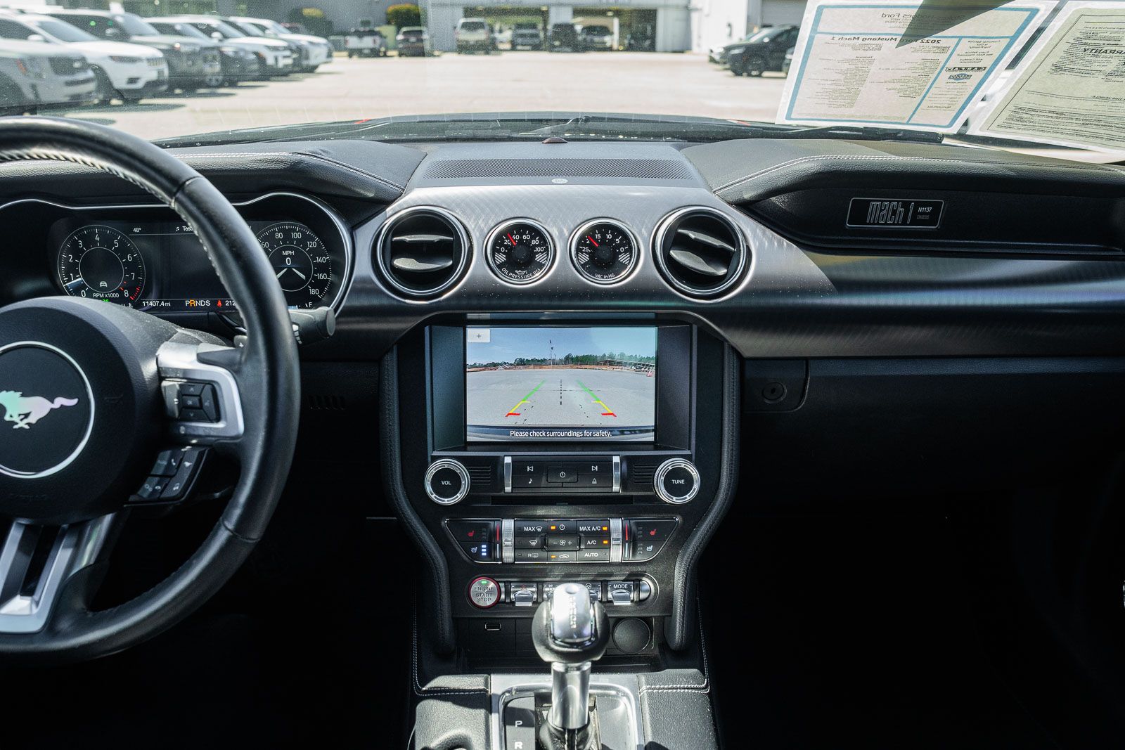 This vehicle comes equipped with Equipment Group 700A (Aluminum Foot Pedals, Climate Controlled Heated/Cooled Front Seats, Cloth Bucket Seats w/Color Accent, Heated Steering Wheel, Memory Driver Seat, Mirrors & Ambient Lighting, and Seat Back Map Pockets), Mach 1 Elite Package (HD Radio and Radio: B&O Sound System by Bang & Olufsen), Mach 1 Handling Package (Black Front-Wheel Lip Molding, Performance Rear Spoiler w/Gurney Flap, Split Folding Rear Bench Seats, and Wheels: 19" x 10.5" Fr/19" x 11" Rr Tarnished Alum), Security Package (Wheel Locking Kit), Ford Gold Certified Certified, 4-Wheel Disc Brakes, 9 Speakers, ABS brakes, Adaptive suspension, Air Conditioning, Alloy wheels, AM/FM radio: SiriusXM, AM/FM Stereo, Auto High-beam Headlights, Auto-dimming Rear-View mirror, Automatic temperature control, Brake assist, Bumpers: body-color, Cloth Bucket Seats, Compass, Delay-off headlights, Driver door bin, Driver vanity mirror, Dual front impact airbags, Dual front side impact airbags, Ebony/Red Hood & Side Stripe, Electronic Stability Control, Emergency communication system: 911 Assist, Exterior Parking Camera Rear, Four wheel independent suspension, Front anti-roll bar, Front Bucket Seats, Front Center Armrest, Front dual zone A/C, Front reading lights, Fully automatic headlights, Garage door transmitter, Heated door mirrors, Illuminated entry, Knee airbag, Low tire pressure warning, Occupant sensing airbag, Outside temperature display, Overhead airbag, Overhead console, Panic alarm, Passenger door bin, Passenger vanity mirror, Power door mirrors, Power driver seat, Power passenger seat, Power steering, Power windows, Premium Floor Mats w/Accent Stitch, Radio data system, Rain sensing wipers, Rear anti-roll bar, Rear window defroster, Remote keyless entry, Security system, SiriusXM Radio, Speed control, Speed-sensing steering, Speed-Sensitive Wipers, Split folding rear seat, Spoiler, Steering wheel mounted audio controls, SYNC 3 Communications & Entertainment System, Tachometer, Telescoping steering wheel, Tilt steering wheel, Traction control, Trip computer, Turn signal indicator mirrors, Variably intermittent wipers, Voltmeter, and Wheels: 19" x 9.5" Fr & 19" x 10" Rr Aluminum.
