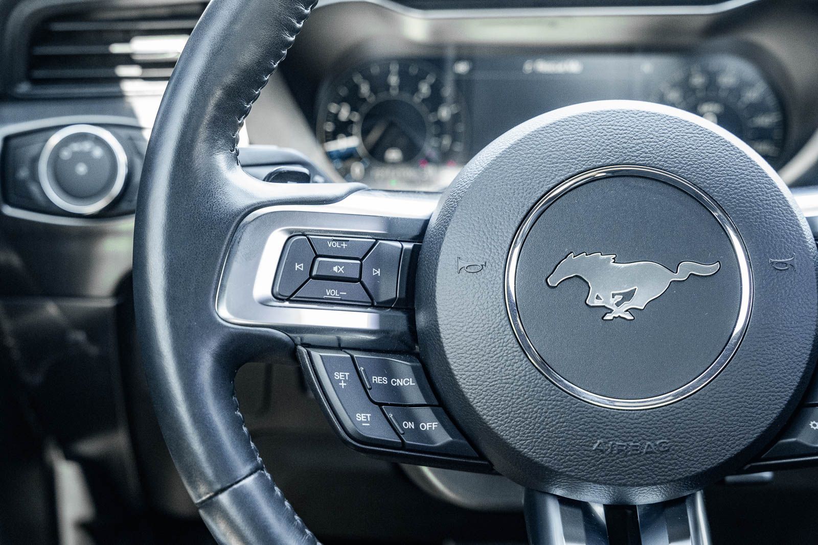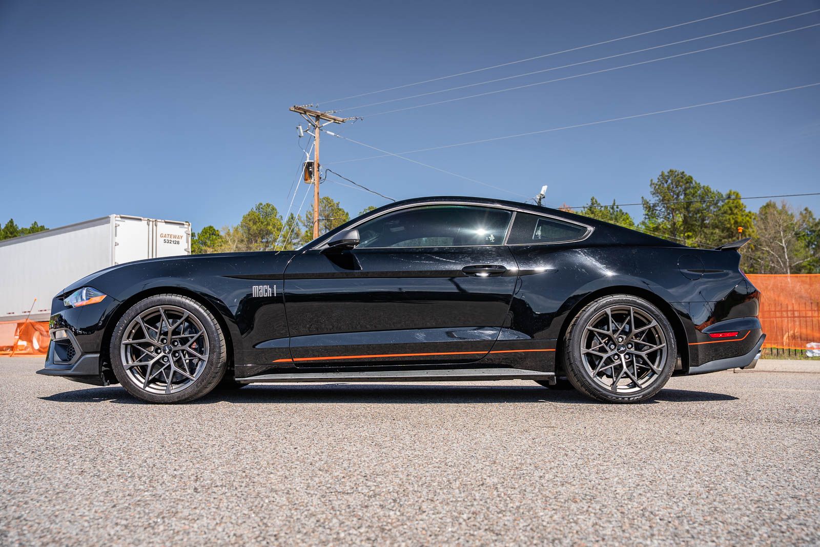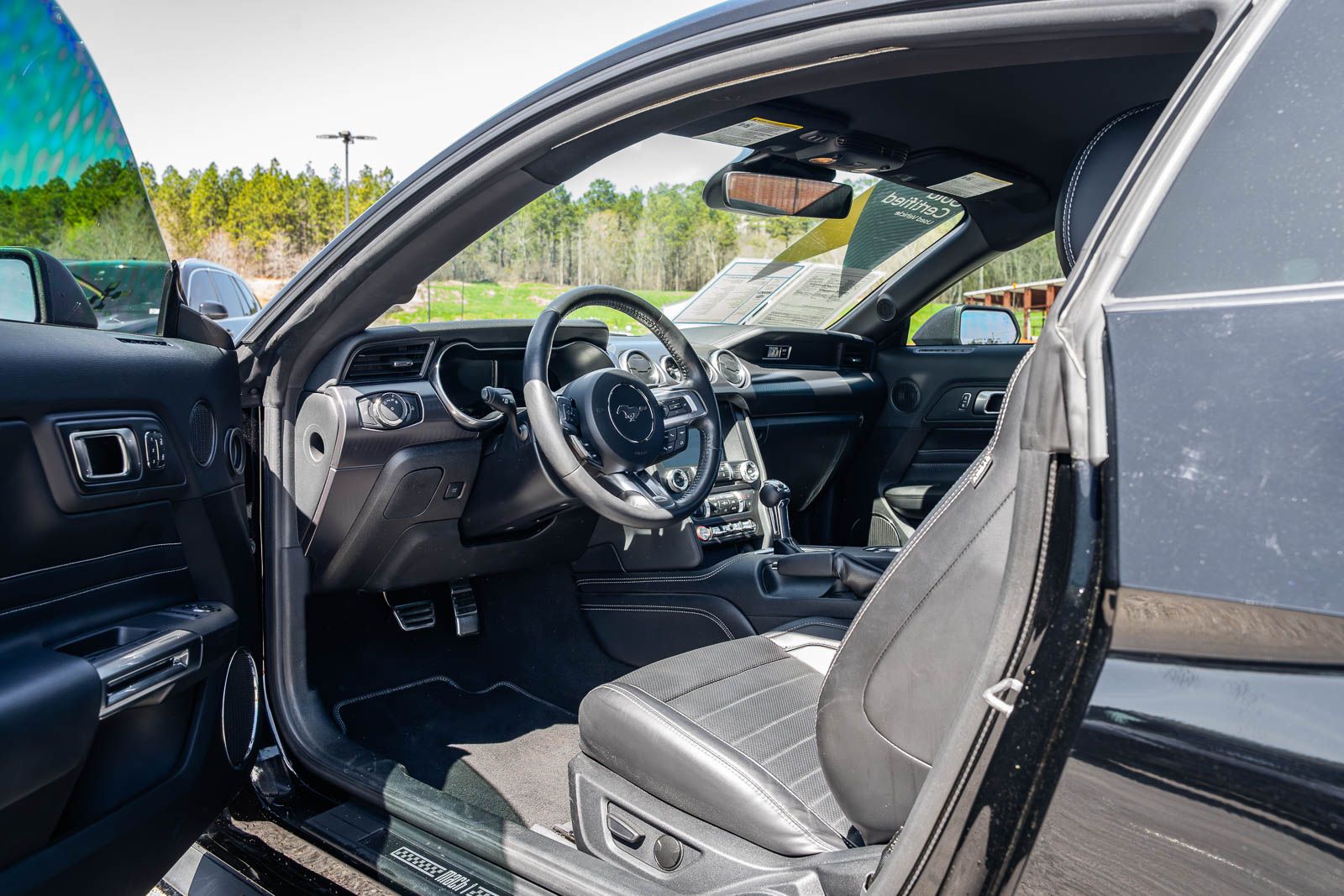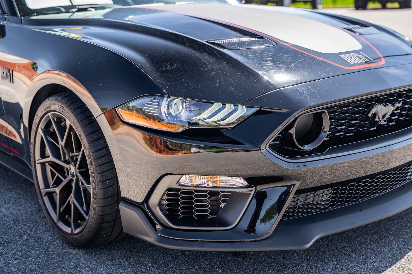 This vehicle comes equipped with Equipment Group 700A (Aluminum Foot Pedals, Climate Controlled Heated/Cooled Front Seats, Cloth Bucket Seats w/Color Accent, Heated Steering Wheel, Memory Driver Seat, Mirrors & Ambient Lighting, and Seat Back Map Pockets), Mach 1 Elite Package (HD Radio and Radio: B&O Sound System by Bang & Olufsen), Mach 1 Handling Package (Black Front-Wheel Lip Molding, Performance Rear Spoiler w/Gurney Flap, Split Folding Rear Bench Seats, and Wheels: 19" x 10.5" Fr/19" x 11" Rr Tarnished Alum), Security Package (Wheel Locking Kit), Ford Gold Certified Certified, 4-Wheel Disc Brakes, 9 Speakers, ABS brakes, Adaptive suspension, Air Conditioning, Alloy wheels, AM/FM radio: SiriusXM, AM/FM Stereo, Auto High-beam Headlights, Auto-dimming Rear-View mirror, Automatic temperature control, Brake assist, Bumpers: body-color, Cloth Bucket Seats, Compass, Delay-off headlights, Driver door bin, Driver vanity mirror, Dual front impact airbags, Dual front side impact airbags, Ebony/Red Hood & Side Stripe, Electronic Stability Control, Emergency communication system: 911 Assist, Exterior Parking Camera Rear, Four wheel independent suspension, Front anti-roll bar, Front Bucket Seats, Front Center Armrest, Front dual zone A/C, Front reading lights, Fully automatic headlights, Garage door transmitter, Heated door mirrors, Illuminated entry, Knee airbag, Low tire pressure warning, Occupant sensing airbag, Outside temperature display, Overhead airbag, Overhead console, Panic alarm, Passenger door bin, Passenger vanity mirror, Power door mirrors, Power driver seat, Power passenger seat, Power steering, Power windows, Premium Floor Mats w/Accent Stitch, Radio data system, Rain sensing wipers, Rear anti-roll bar, Rear window defroster, Remote keyless entry, Security system, SiriusXM Radio, Speed control, Speed-sensing steering, Speed-Sensitive Wipers, Split folding rear seat, Spoiler, Steering wheel mounted audio controls, SYNC 3 Communications & Entertainment System, Tachometer, Telescoping steering wheel, Tilt steering wheel, Traction control, Trip computer, Turn signal indicator mirrors, Variably intermittent wipers, Voltmeter, and Wheels: 19" x 9.5" Fr & 19" x 10" Rr Aluminum.