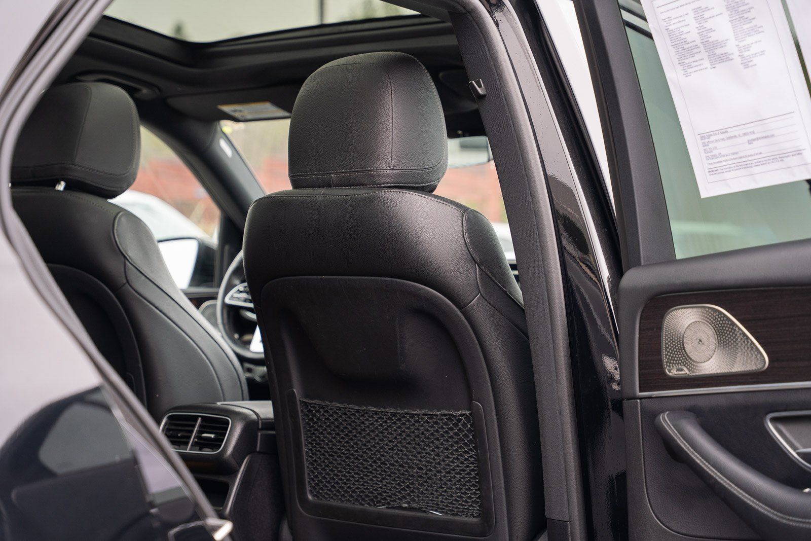 This vehicle comes equipped with Mercedes-Benz Certified, 3.69 Axle Ratio, 4-Wheel Disc Brakes, 8 Speakers, ABS brakes, Air Conditioning, Alloy wheels, AM/FM radio: SiriusXM, Anti-whiplash front head restraints, Apple CarPlay®/Android Auto®, Auto High-beam Headlights, Auto tilt-away steering wheel, Auto-dimming door mirrors, Auto-dimming Rear-View mirror, Automatic temperature control, Brake assist, Bumpers: body-color, Compass, Delay-off headlights, Driver door bin, Driver vanity mirror, Dual front impact airbags, Dual front side impact airbags, Electronic Stability Control, Emergency communication system: eCall Emergency System, Exterior Parking Camera Rear, Four wheel independent suspension, Front anti-roll bar, Front Bucket Seats, Front Center Armrest, Front dual zone A/C, Front reading lights, Fully automatic headlights, Garage door transmitter: HomeLink, Genuine wood console insert, Genuine wood dashboard insert, Genuine wood door panel insert, Heated door mirrors, Heated front seats, Heated Power Front Seats w/Driver Memory, Illuminated entry, Knee airbag, Leather steering wheel, Low tire pressure warning, MB-Tex Upholstery, Memory seat, Navigation system: MBUX, Occupant sensing airbag, Outside temperature display, Overhead airbag, Panic alarm, Passenger door bin, Passenger vanity mirror, Power adjustable front head restraints, Power door mirrors, Power driver seat, Power Liftgate, Power moonroof, Power passenger seat, Power steering, Power windows, Premium audio system: MBUX, Radio data system, Radio: 12.3" Media Display w/Touchscreen, Rain sensing wipers, Rear anti-roll bar, Rear fog lights, Rear reading lights, Rear seat center armrest, Rear window defroster, Rear window wiper, Remote keyless entry, Roof rack: rails only, Security system, Speed control, Speed-sensing steering, Speed-Sensitive Wipers, Split folding rear seat, Spoiler, Steering wheel memory, Steering wheel mounted audio controls, Tachometer, Telescoping steering wheel, Tilt steering wheel, Traction control, Trip computer, Turn signal indicator mirrors, Weather band radio, and Wheels: 19" Twin 5-Spoke.