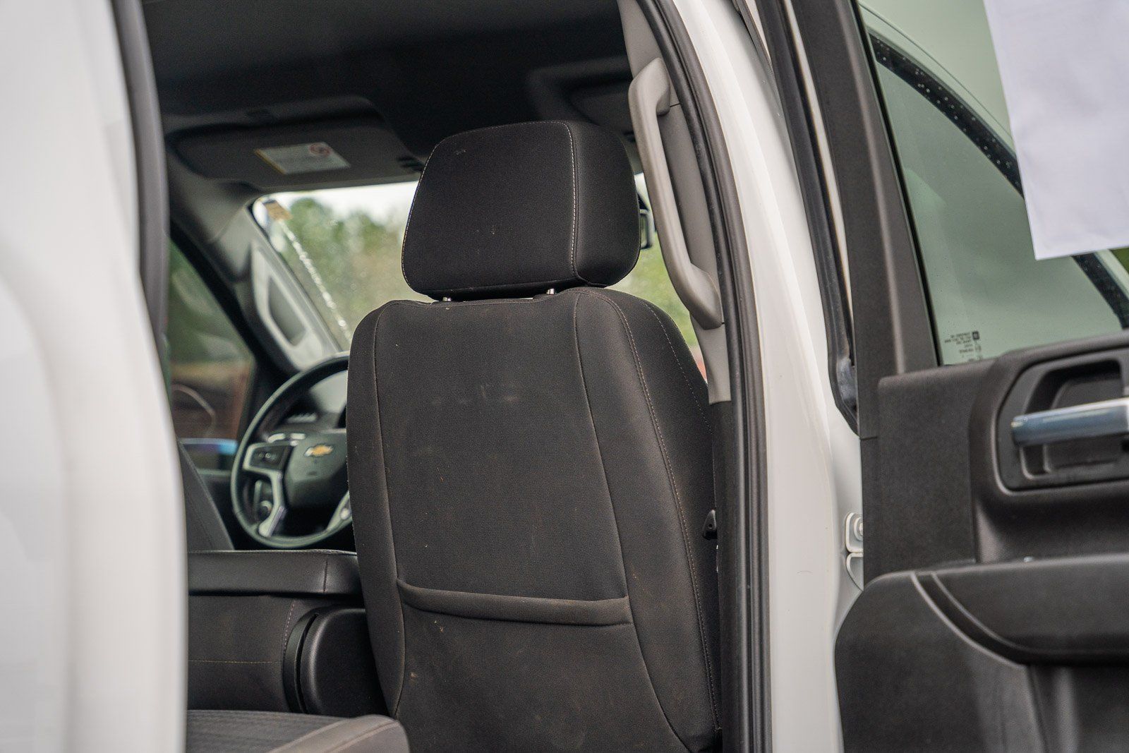 - Plastic front seatback upholstery