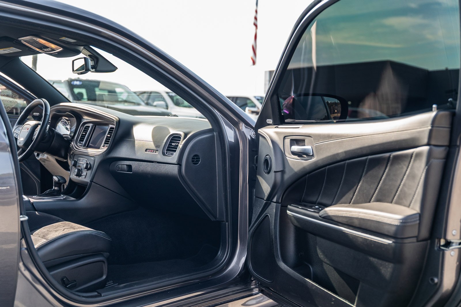 This vehicle comes equipped with Navigation & Travel Group (1-Yr SiriusXM Guardian Trial, 2-Piece Shark Fin Antenna, 4G LTE Wi-Fi Hot Spot, 5-Year SiriusXM Traffic Service, 5-Year SiriusXM Travel Link Service, 8.4" Touchscreen Display, Apple CarPlay, Compass Gauge, For Details, Visit DriveUconnect.com, Google Android Auto, GPS Antenna Input, GPS Navigation, HD Radio, Integrated Center Stack Radio, Integrated Voice Command w/Bluetooth, Media Hub (2 USB, AUX), Radio: Uconnect 4C Nav w/8.4" Display, SiriusXM Traffic Plus, SiriusXM Travel Link, and USB Host Flip), Plus Group (Auto Adjust In Reverse Exterior Mirrors, Auto-Dimming Exterior Driver Mirror, Black-Edged Premium Floormats, Blind Spot & Cross Path Detection, Blind Spot Memory/Power/Heat Mirror, Driver & Passenger Lower LED Lamps, Exterior Mirrors Courtesy Lamps, Exterior Mirrors w/Heating Element, Front Overhead LED Lighting, Heated Front Seats, Power 2-Way Driver Lumbar Adjust, Power 2-Way Passenger Lumbar Adjust, Power Front Driver/Passenger Seats, Power Tilt/Telescope Steering Column, Premium-Stitched Dash Panel, Radio/Driver Seat/Mirrors Memory, Rear Armrest w/Cupholder Seat, Scat Pack Logo Nappa/Alcantara Seat, and Ventilated Front Seats), Quick Order Package 21W Scat Pack, Black Artificial Leather, 4-Wheel Disc Brakes, 6 Speakers, ABS brakes, Air Conditioning, Alloy wheels, AM/FM radio: SiriusXM, Anti-whiplash front head restraints, Apple CarPlay/Android Auto, Auto-dimming Rear-View mirror, Automatic temperature control, Brake assist, Bumpers: body-color, Cloth Performance Seats w/Heat, Compass, Delay-off headlights, Driver door bin, Driver vanity mirror, Dual front impact airbags, Dual front side impact airbags, Electronic Stability Control, Emergency communication system: SiriusXM Guardian, Four wheel independent suspension, Front anti-roll bar, Front Bucket Seats, Front Center Armrest, Front dual zone A/C, Front fog lights, Front reading lights, Fully automatic headlights, Garage door transmitter: HomeLink, Heated door mirrors, Heated front seats, Heated steering wheel, Illuminated entry, Knee airbag, Leather Shift Knob, Low tire pressure warning, Manufacturer's Statement of Origin, Occupant sensing airbag, Outside temperature display, Overhead airbag, Overhead console, Panic alarm, ParkView Rear Back-Up Camera, Passenger door bin, Passenger vanity mirror, Power door mirrors, Power driver seat, Power steering, Power windows, Radio: Uconnect 4C w/8.4" Display, Rear anti-roll bar, Rear reading lights, Rear seat center armrest, Rear window defroster, Remote keyless entry, Security system, Speed control, Speed-Sensitive Wipers, Split folding rear seat, Spoiler, Sport steering wheel, Steering wheel mounted audio controls, Tachometer, Telescoping steering wheel, Tilt steering wheel, Traction control, Trip computer, Variably intermittent wipers, and Wheels: 20" x 9" Lo Gloss Granite Crystal.