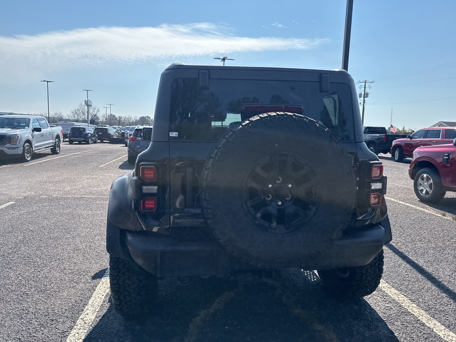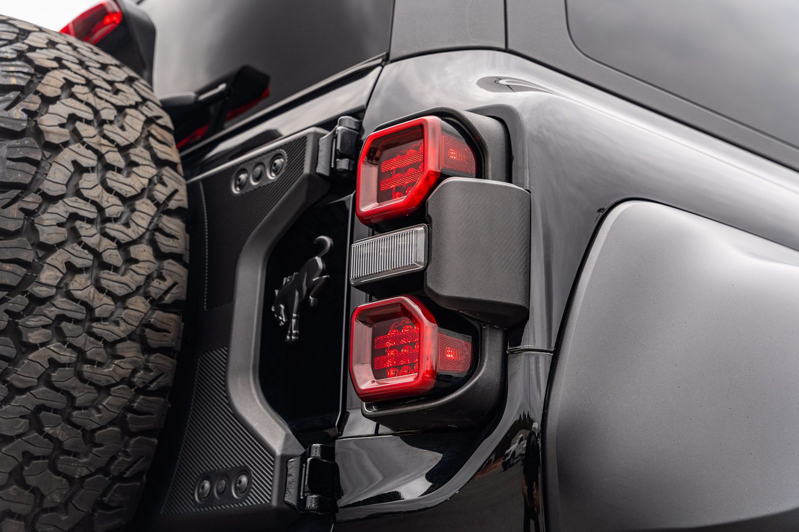 - Spare tire mounted on the exterior of the vehicle