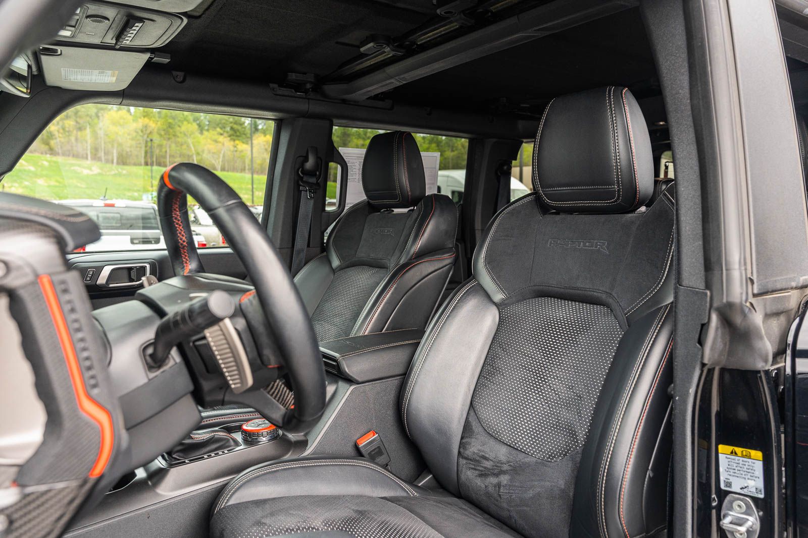This vehicle comes equipped with Equipment Group 374A Lux Package, Lux Package (10 Speakers w/Subwoofer, 2 Smart Charging USB Ports In Dashboard, Adaptive Cruise Control, Connected Built-In Navigation, Evasive Steering Assist, Heated Steering Wheel, Radio: B&O Sound System by Bang & Olufsen, Universal Garage Door Opener, and Wireless Charging Pad), 4-Wheel Disc Brakes, 4.7 Axle Ratio, 7 Speakers, ABS brakes, Air Conditioning, Alloy wheels, AM/FM radio: SiriusXM with 360L, AM/FM Stereo, Auto High-beam Headlights, Auto-dimming Rear-View mirror, Automatic temperature control, Brake assist, Compass, Connected Navigation, Convertible HardTop, Convertible roof lining, Delay-off headlights, Driver door bin, Driver vanity mirror, Dual front impact airbags, Dual front side impact airbags, Electronic Stability Control, Emergency communication system: 911 Assist, Exterior Parking Camera Rear, Front anti-roll bar, Front Bucket Seats, Front Center Armrest, Front dual zone A/C, Front fog lights, Front reading lights, Front wheel independent suspension, Fully automatic headlights, Glass rear window, Hard Top Sound Deadening Headliner (DISC), Heated door mirrors, Heated front seats, Illuminated entry, Integrated roll-over protection, Interior Carbon Fiber Pack 6, Keyless Entry Keypad, Leather Shift Knob, Low tire pressure warning, Marine Grade Vinyl Bucket Seats, Navigation system: Connected Navigation, Occupant sensing airbag, Outside temperature display, Overhead airbag, Overhead console, Panic alarm, Passenger door bin, Passenger vanity mirror, Power door mirrors, Power steering, Power windows, Radio data system, Rear anti-roll bar, Rear seat center armrest, Rear window defroster, Rear window wiper, Remote keyless entry, Security system, SiriusXM Radio w/360L, Speed control, Split folding rear seat, Steering wheel mounted audio controls, SYNC 4, Tachometer, Telescoping steering wheel, Tilt steering wheel, Traction control, Trip computer, Turn signal indicator mirrors, Variably intermittent wipers, Voltmeter, and Wheels: 17" Black High Gloss-Painted Aluminum.