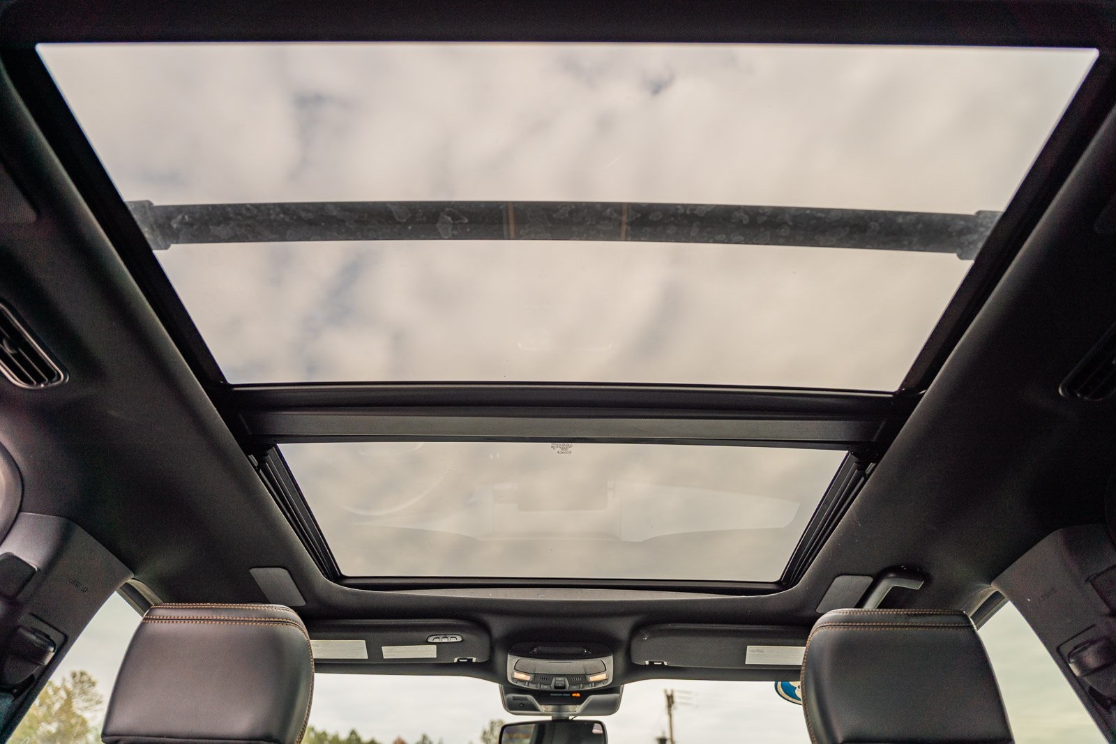 - First and second-row sliding and tilting glass sunroof with express open activation sunshade