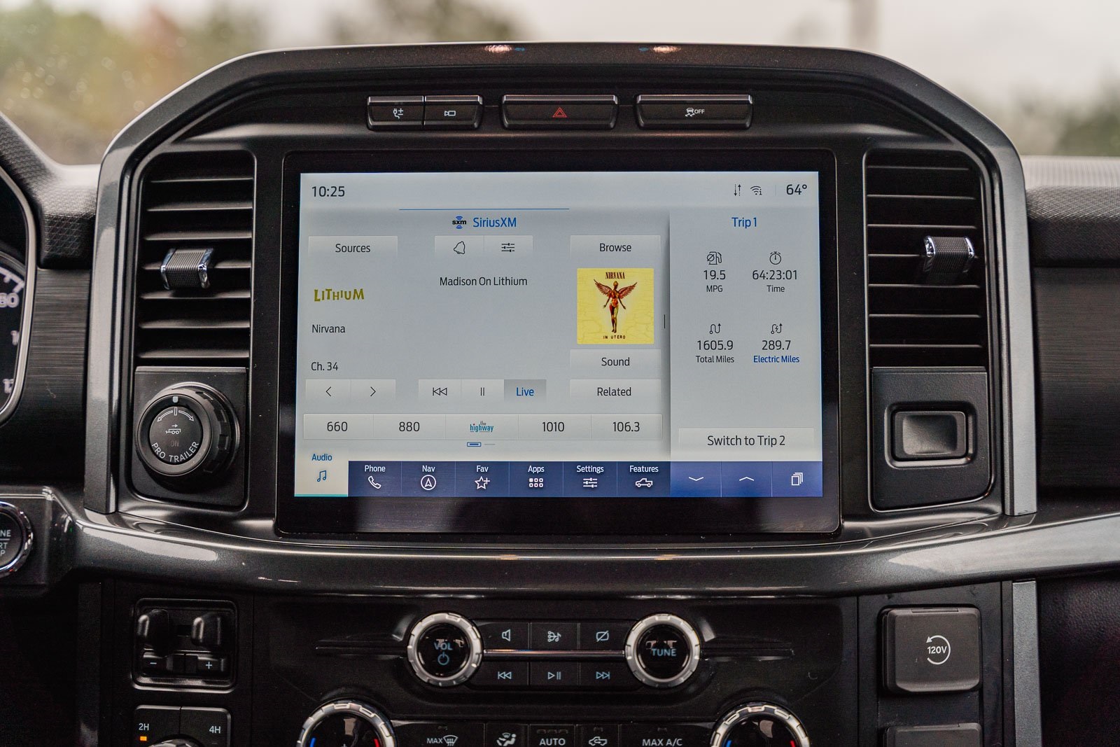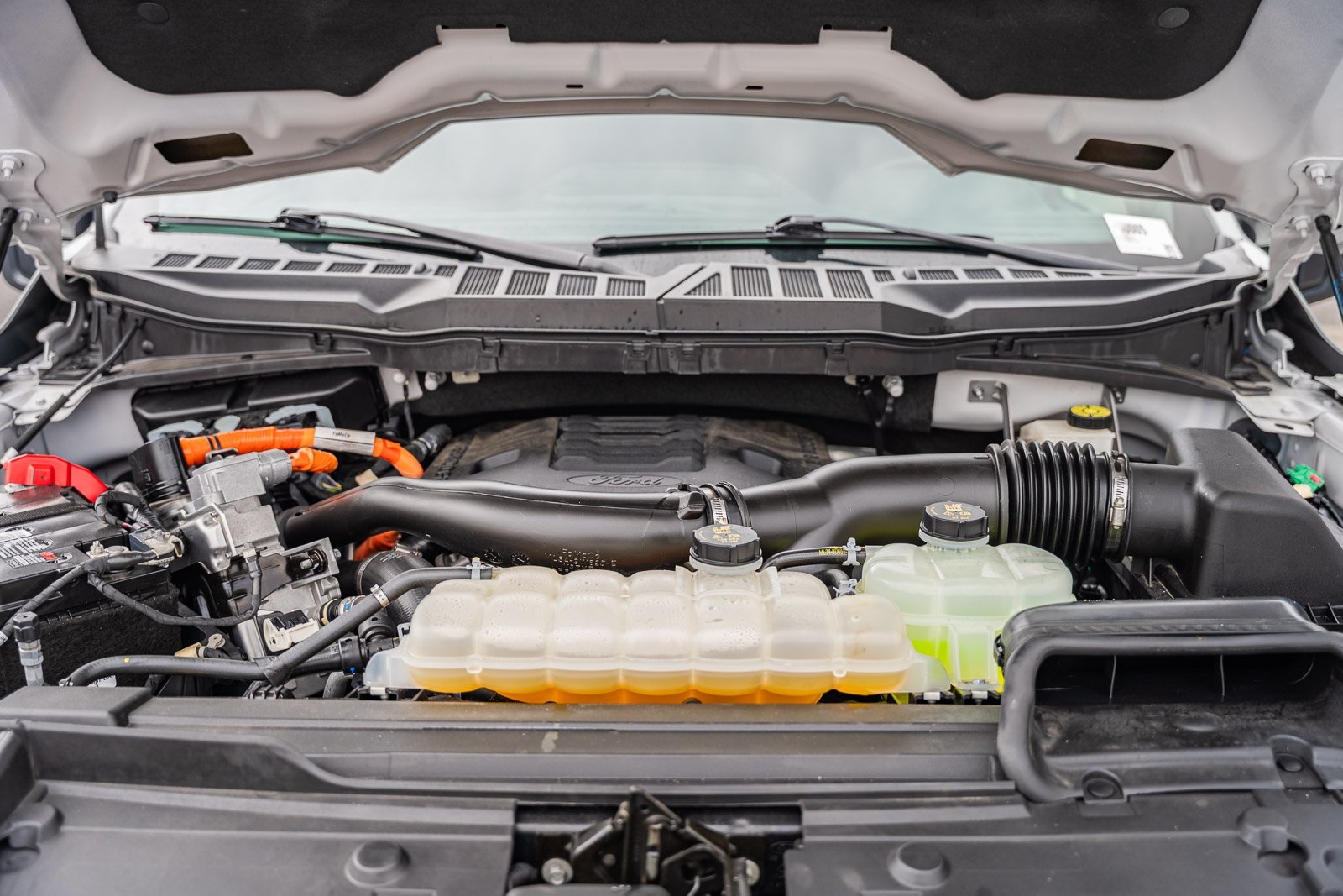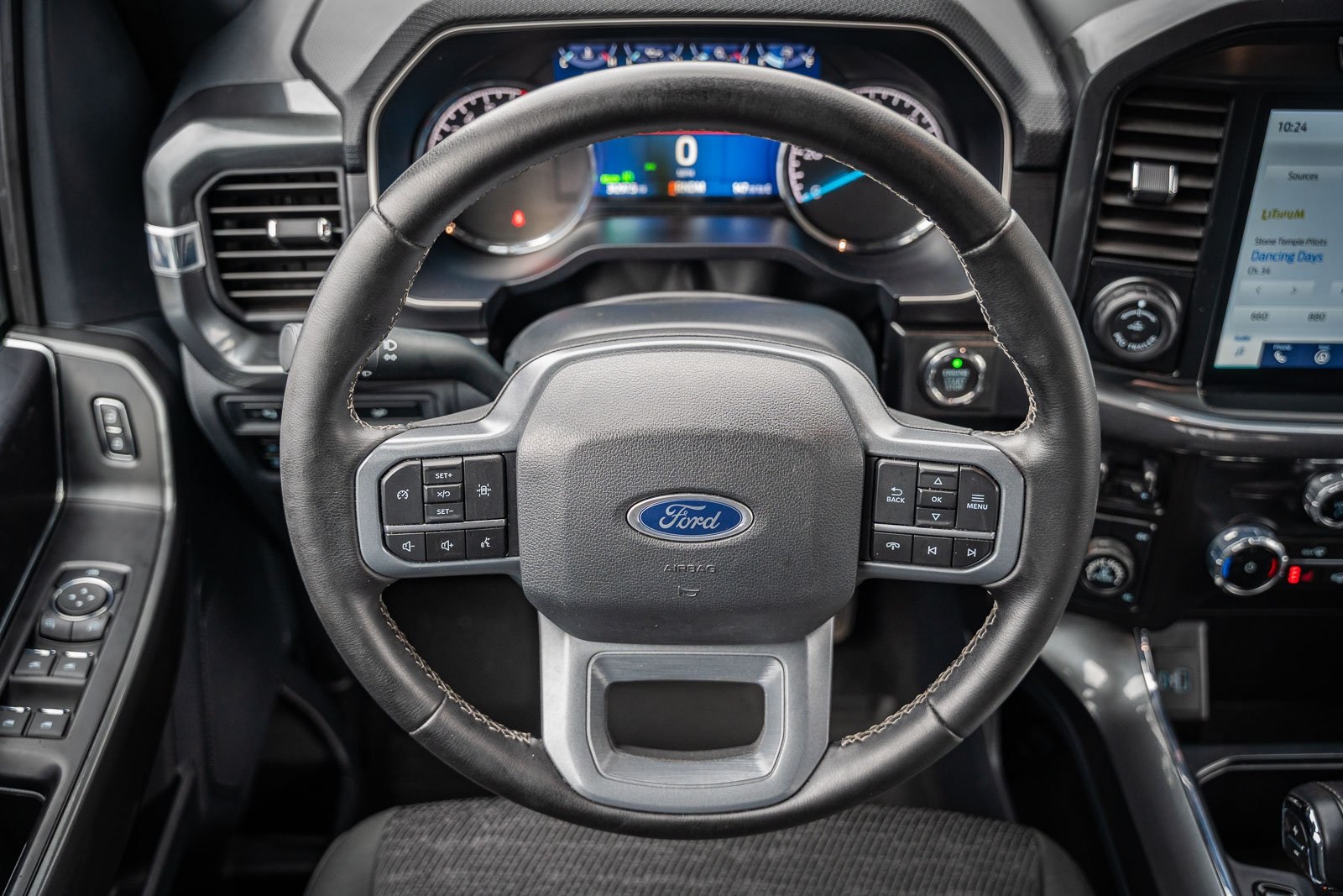 This vehicle comes equipped with Equipment Group 302A High (10-Way Power Driver & Passenger Seats, 8" Productivity Screen in Instrument Cluster, Auto-Dimming Rear-View Mirror, Class IV Trailer Hitch Receiver, Dual Zone Electronic Automatic Temperature Control, Heated Front Seats, Intelligent Access w/Push Button Start, LED Reflector Headlamps, LED Sideview Mirror Spotlights, Onboard 400W Outlet, Power Glass Heated Sideview Mirrors, Radio: AM/FM SiriusXM w/360L, Rear Under-Seat Storage, SecuriCode Drivers Side Keyless-Entry Keypad, SYNC 4 w/Enhanced Voice Recognition, Wrapped Steering Wheel, and Zone Lighting), Trailer Tow Package (Integrated Trailer Brake Controller and Pro Trailer Backup Assist & Pro Trailer Hitch Assist), XLT Chrome Appearance Package (2-Bar Style Grille w/Chrome 2 Minor Bars, Bright Polished Step Bars, Chrome Door & Tailgate Handles w/Body-Color Bezel, Chrome Single-Tip Exhaust, and Wheels: 18" Chrome-Like PVD), XLT Sport Appearance Package (Accent-Color Step Bars, Black 2-Bar Style Grille w/Black Surround/Accents, Body-Color Door & Tailgate Handles, Body-Color Front & Rear Bumpers, Box Side Decals, Unique Sport Cloth 40/Console/40 Front-Seats, and Wheels: 18" 6-Spoke Machined Aluminum), Ford Gold Certified Certified, 3.5L PowerBoost Full-Hybrid V6, 4WD, 4-Wheel Disc Brakes, 6 Speakers, ABS brakes, Air Conditioning, Alloy wheels, AM/FM radio, Auto High-beam Headlights, Auto Start-Stop Removal (DISC), Brake assist, Bumpers: chrome, Cloth 40/20/40 Front Seat, Compass, Delay-off headlights, Driver door bin, Driver vanity mirror, Dual front impact airbags, Dual front side impact airbags, Electronic Stability Control, Emergency communication system: SYNC 4 911 Assist, Exterior Parking Camera Rear, Front anti-roll bar, Front Center Armrest w/Storage, Front fog lights, Front reading lights, Front wheel independent suspension, Fully automatic headlights, Heated door mirrors, Illuminated entry, Interior Work Surface, Low tire pressure warning, Occupant sensing airbag, Outside temperature display, Overhead airbag, Overhead console, Panic alarm, Passenger door bin, Passenger vanity mirror, Power door mirrors, Power steering, Power windows, Power-Sliding Rear Window, Pro Power Onboard - 7.2KW, Radio data system, Radio: AM/FM Stereo w/6 Speakers, Rear reading lights, Rear step bumper, Rear window defroster, Remote keyless entry, Remote Start System, Security system, Speed control, Speed-sensing steering, Split folding rear seat, Steering wheel mounted audio controls, SYNC 4, Tachometer, Telescoping steering wheel, Tilt steering wheel, Traction control, Trip computer, Variably intermittent wipers, Voltmeter, Wheels: 17" Silver Painted Aluminum, and Wheels: 20" 6-Spoke Dark Alloy Painted Aluminum.