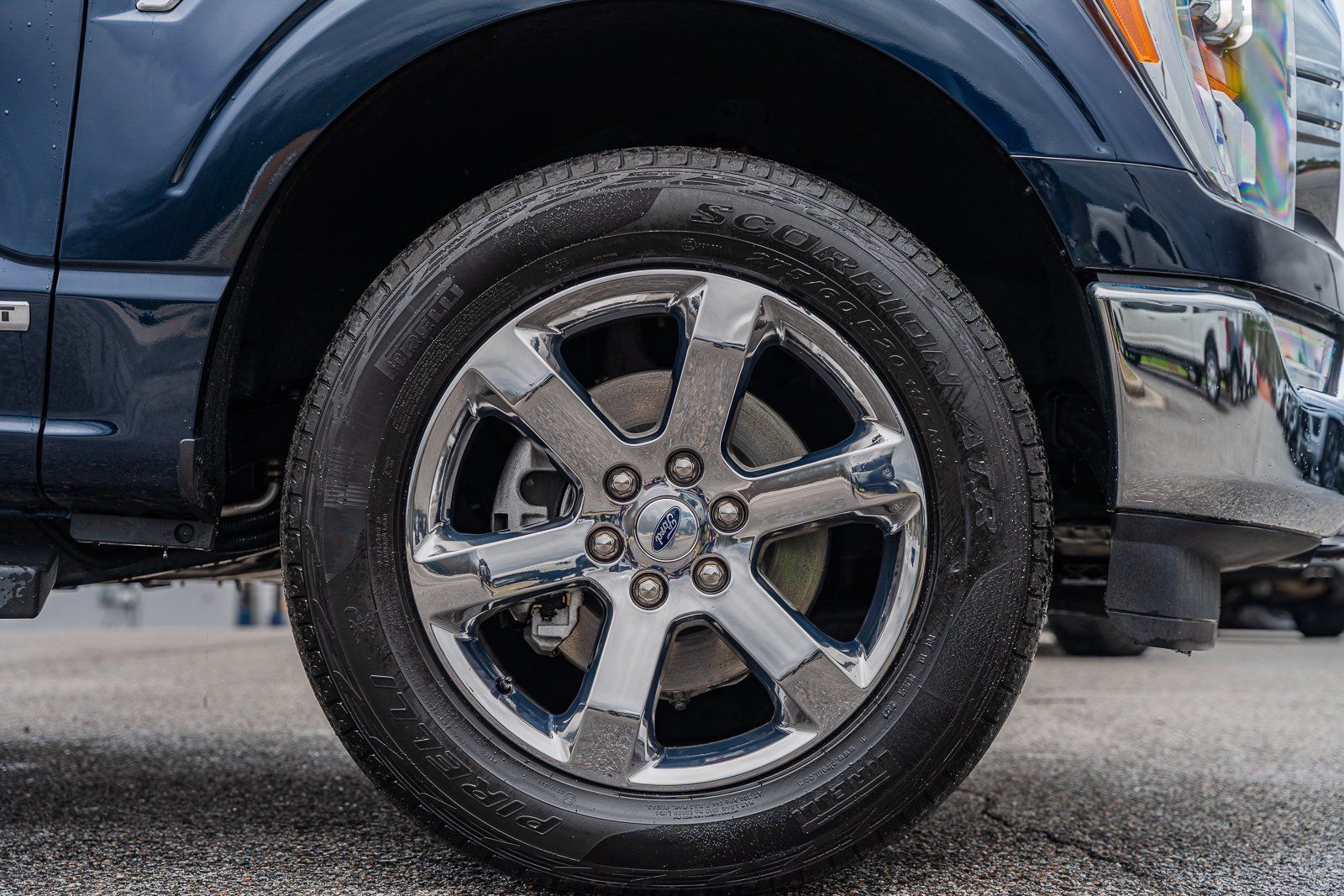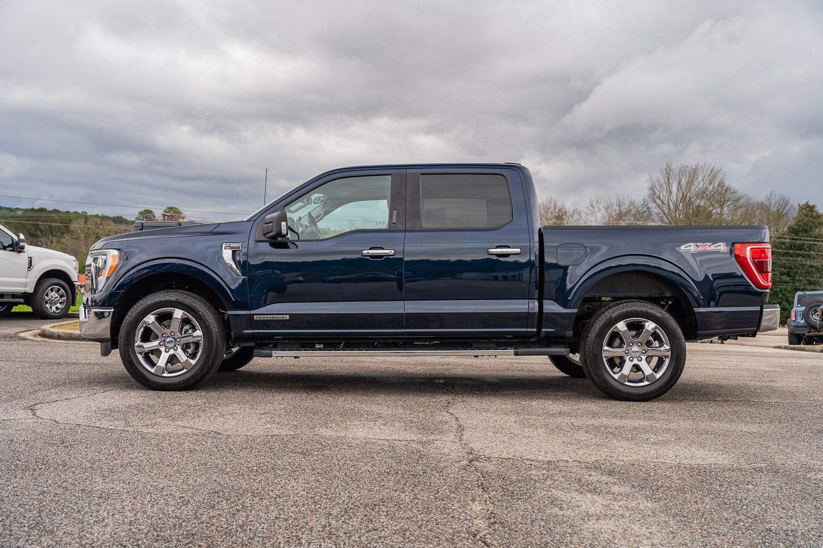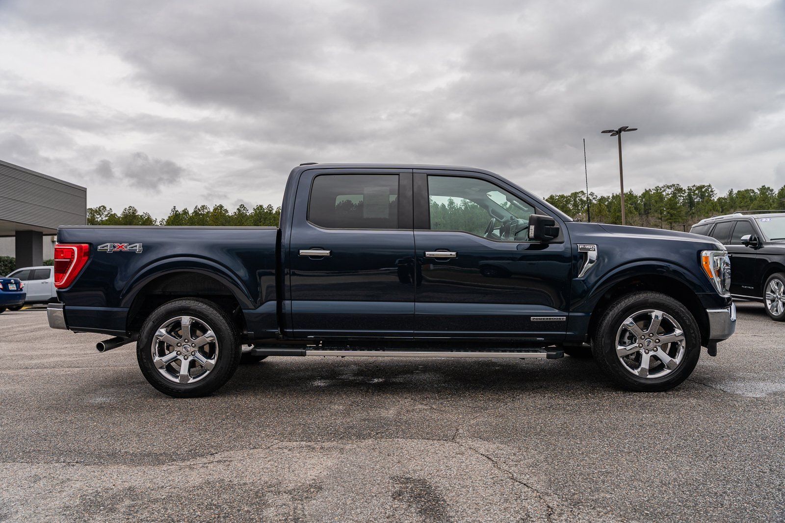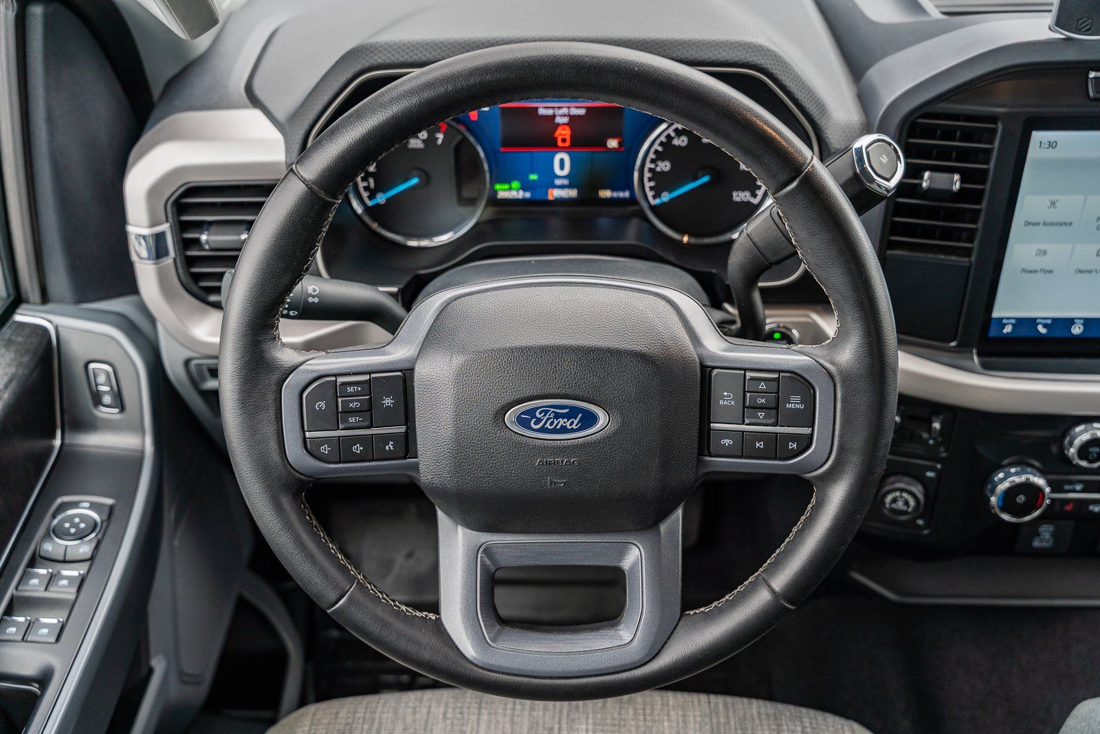 This vehicle comes equipped with Equipment Group 302A High (10-Way Power Driver & Passenger Seats, 8" Productivity Screen in Instrument Cluster, Auto-Dimming Rear-View Mirror, Class IV Trailer Hitch Receiver, Dual Zone Electronic Automatic Temperature Control, Heated Front Seats, Intelligent Access w/Push Button Start, LED Reflector Headlamps, LED Sideview Mirror Spotlights, Onboard 400W Outlet, Power Glass Heated Sideview Mirrors, Radio: AM/FM SiriusXM w/360L, Rear Under-Seat Storage, SecuriCode Drivers Side Keyless-Entry Keypad, SYNC 4 w/Enhanced Voice Recognition, Wrapped Steering Wheel, and Zone Lighting), XLT Chrome Appearance Package (2-Bar Style Grille w/Chrome 2 Minor Bars, Bright Polished Step Bars, Chrome Door & Tailgate Handles w/Body-Color Bezel, Chrome Single-Tip Exhaust, and Wheels: 18" Chrome-Like PVD), Ford Blue Certified Certified, 3.5L PowerBoost Full-Hybrid V6, 4WD, 4-Wheel Disc Brakes, 6 Speakers, 6" Extended Bright Polished Running Boards, ABS brakes, Air Conditioning, Alloy wheels, AM/FM radio, Auto High-beam Headlights, Auto Start-Stop Removal (DISC), Brake assist, Bumpers: chrome, Cloth 40/20/40 Front Seat, Compass, Delay-off headlights, Driver door bin, Driver vanity mirror, Dual front impact airbags, Dual front side impact airbags, Electronic Stability Control, Emergency communication system: SYNC 4 911 Assist, Exterior Parking Camera Rear, Front anti-roll bar, Front Center Armrest w/Storage, Front fog lights, Front reading lights, Front wheel independent suspension, Fully automatic headlights, Heated door mirrors, Illuminated entry, Integrated Trailer Brake Controller, Low tire pressure warning, Occupant sensing airbag, Outside temperature display, Overhead airbag, Overhead console, Panic alarm, Passenger door bin, Passenger vanity mirror, Power door mirrors, Power steering, Power windows, Radio data system, Radio: AM/FM Stereo w/6 Speakers, Rear reading lights, Rear step bumper, Rear window defroster, Remote keyless entry, Remote Start System, Security system, Speed control, Speed-sensing steering, Split folding rear seat, Steering wheel mounted audio controls, SYNC 4, Tachometer, Telescoping steering wheel, Tilt steering wheel, Traction control, Tray Style Floor Liner (47W), Trip computer, Variably intermittent wipers, Voltmeter, Wheels: 17" Silver Painted Aluminum, and Wheels: 20" Chrome-Like PVD.