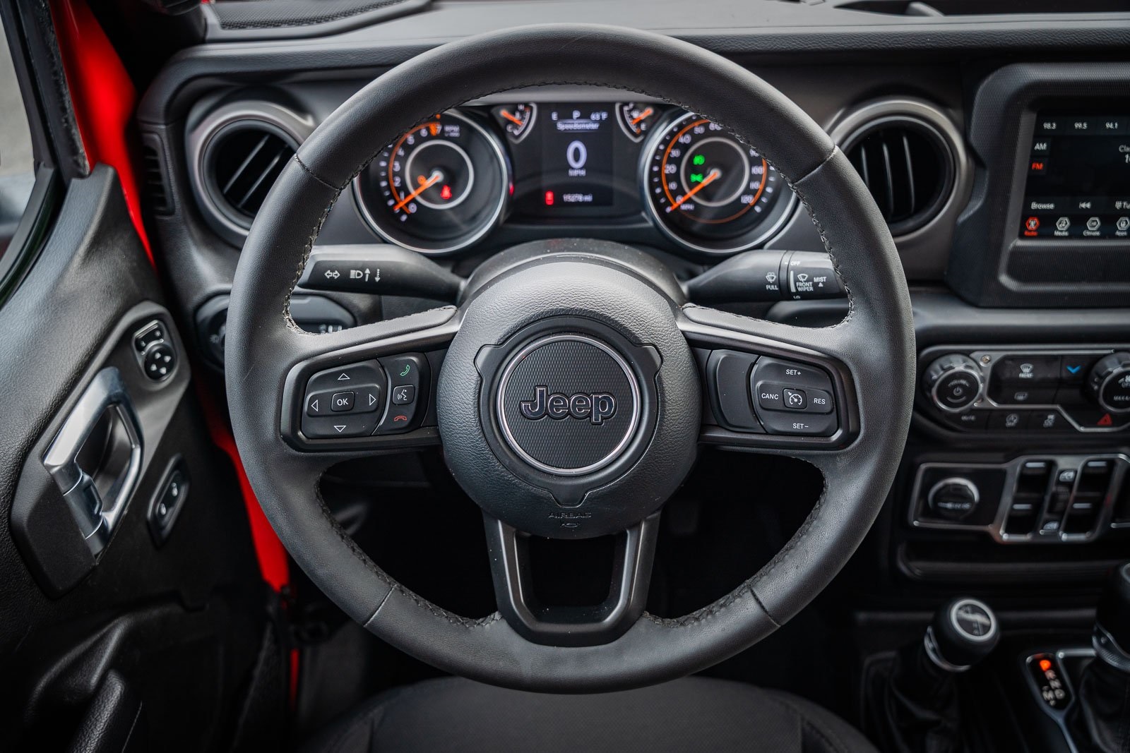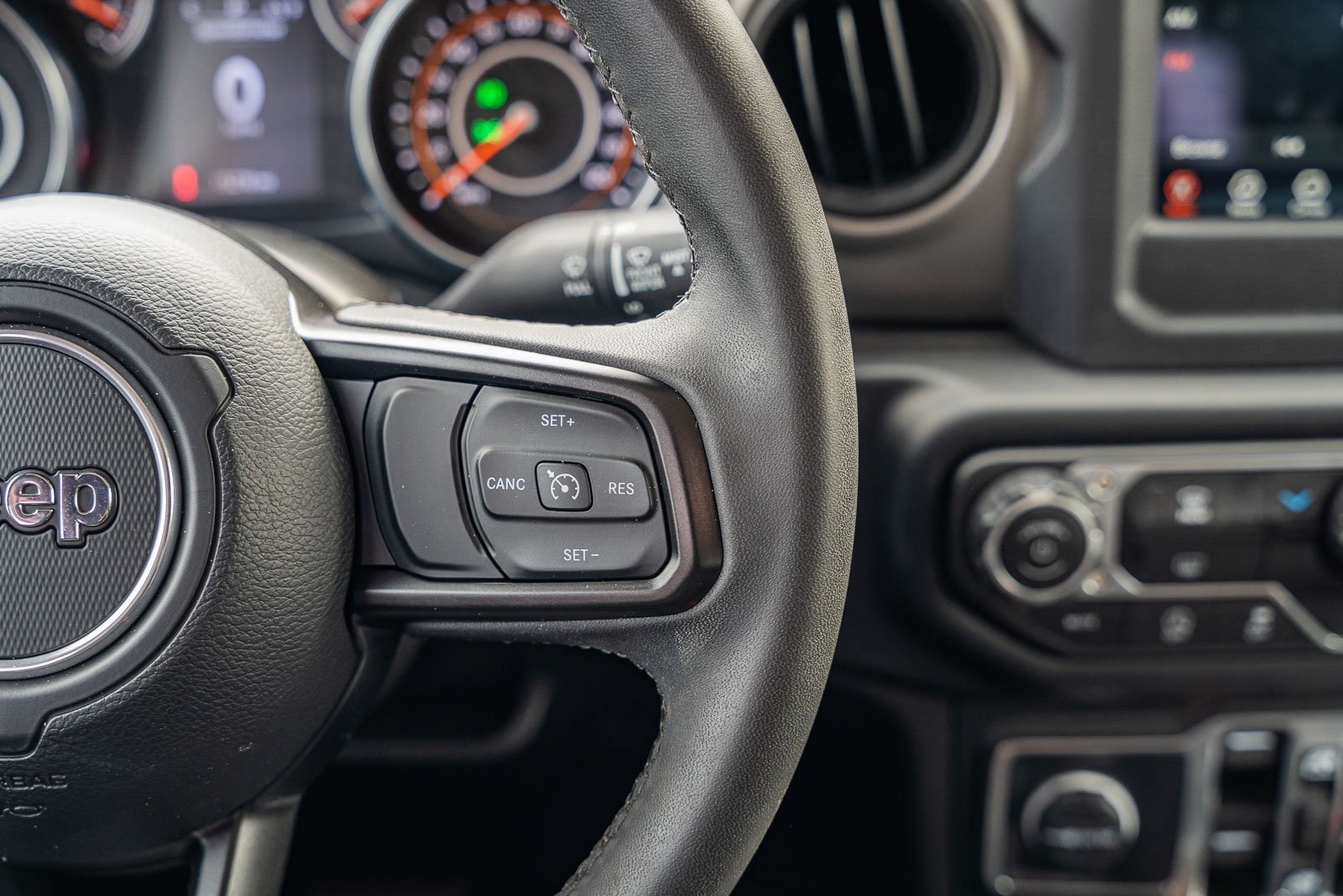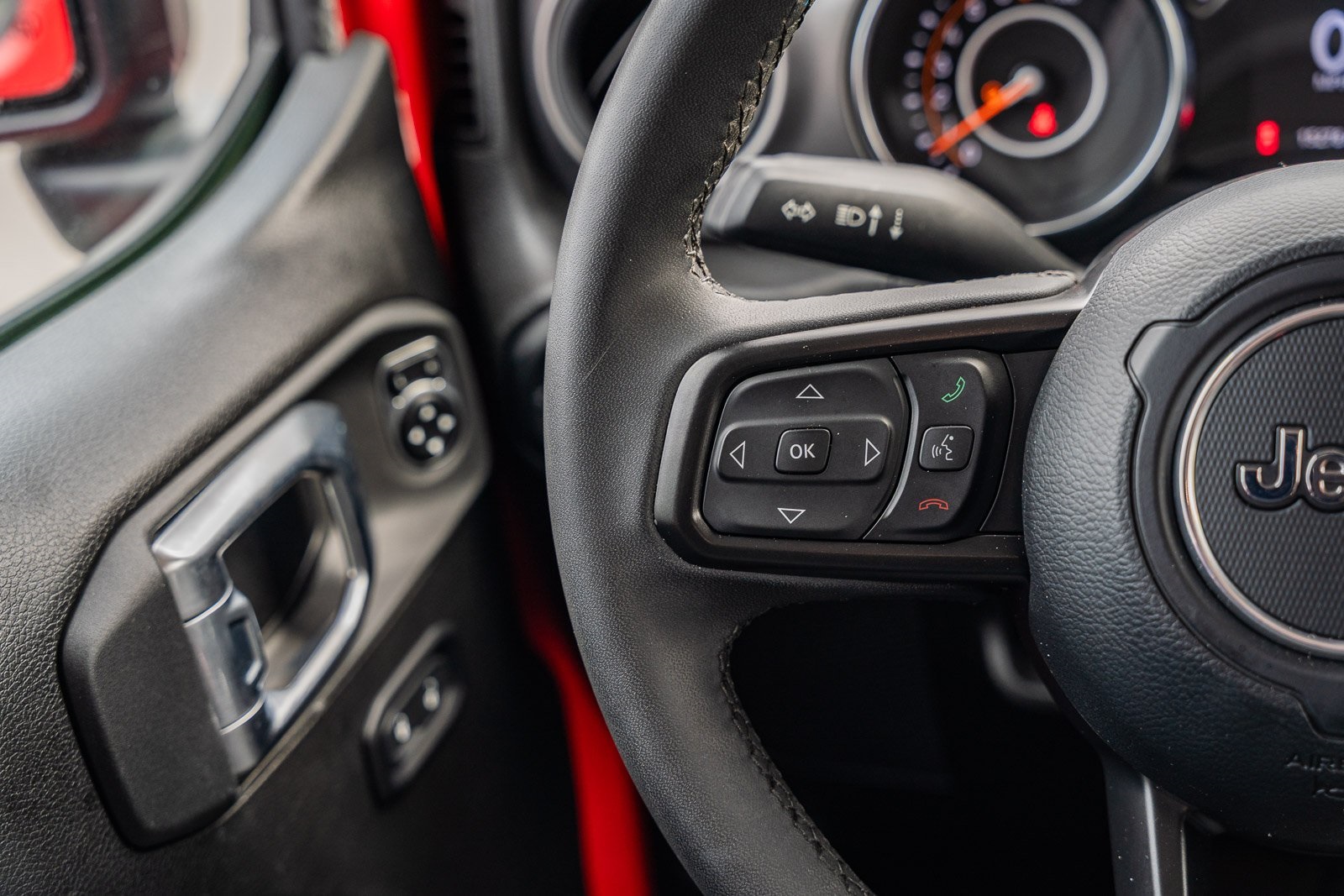 - Leatherette steering wheel