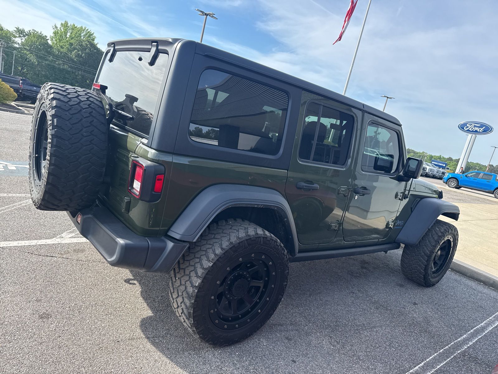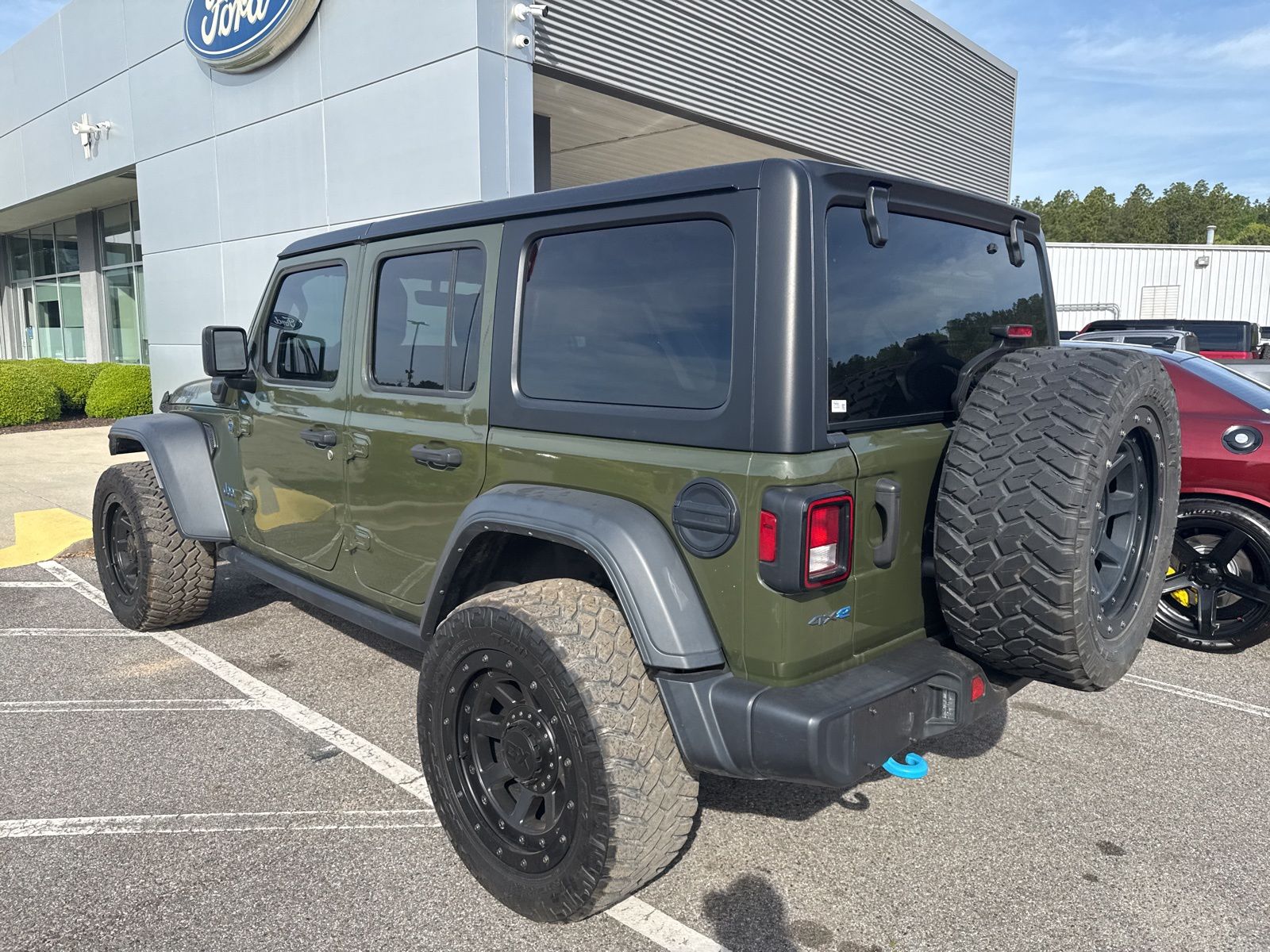 This vehicle comes equipped with 8.4" Radio Group (1-Year SiriusXM Guardian Trial, 4G LTE Wi-Fi Hot Spot, 5-Year SiriusXM Traffic Service, 5-Year SiriusXM Travel Link Service, 8.4" Touchscreen Display, Apple CarPlay, Auto-Dimming Rear-View Mirror, Emergency/Assistance Call, For Details, Visit DriveUconnect.com, Google Android Auto, GPS Antenna Input, GPS Navigation, HD Radio, Integrated Center Stack Radio, Integrated Voice Command w/Bluetooth, Off-Road Info Pages, Radio: Uconnect 4C Nav w/8.4" Display, SiriusXM Traffic Plus, SiriusXM Travel Link, and USB Host Flip), Cold Weather Group (Remote Start System), Convenience Group (Universal Garage Door Opener), Quick Order Package 29W Willys (4xe 4-Wheel Drive Swing Gate Decal, 97 MPH Vehicle Max Speed Calibration, Anti-Spin Differential Rear Axle, Black Grille, Front LED Fog Lamps, LED Headlamp & Fog Lamp Group, LED Premium Reflector Headlamps, Molded-In-Color Fender Flares (2-Piece), MOPAR All-Weather Floor Mats, Normal Duty Suspension, Wheels: 17" x 7.5" Black Aluminum, Willys, and Willys 4xe Hood Decal), 2.0L I4 DOHC, 3.73 Rear Axle Ratio, 4-Wheel Disc Brakes, 9 Speakers, ABS brakes, Air Conditioning, Alloy wheels, AM/FM radio: SiriusXM, Apple CarPlay/Android Auto, Automatic temperature control, Black 3-Piece Hard Top, Brake assist, Cloth Low-Back Bucket Seats, Compass, Delay-off headlights, Driver door bin, Driver vanity mirror, Dual front impact airbags, Dual front side impact airbags, Electronic Stability Control, Emergency communication system: SiriusXM Guardian, Front anti-roll bar, Front Bucket Seats, Front Center Armrest w/Storage, Front dual zone A/C, Front fog lights, Front License Plate Bracket, Front reading lights, Fully automatic headlights, Heated door mirrors, Illuminated entry, Integrated roll-over protection, Low tire pressure warning, Occupant sensing airbag, Outside temperature display, Panic alarm, ParkView Rear Back-Up Camera, Passenger door bin, Passenger vanity mirror, Power door mirrors, Power steering, Power windows, Radio data system, Radio: Uconnect 4 w/7" Display, Rear anti-roll bar, Rear reading lights, Remote keyless entry, Security system, Speed control, Split folding rear seat, Steering wheel mounted audio controls, Tachometer, Telescoping steering wheel, Tilt steering wheel, Traction control, Trip computer, Variably intermittent wipers, and Voltmeter.