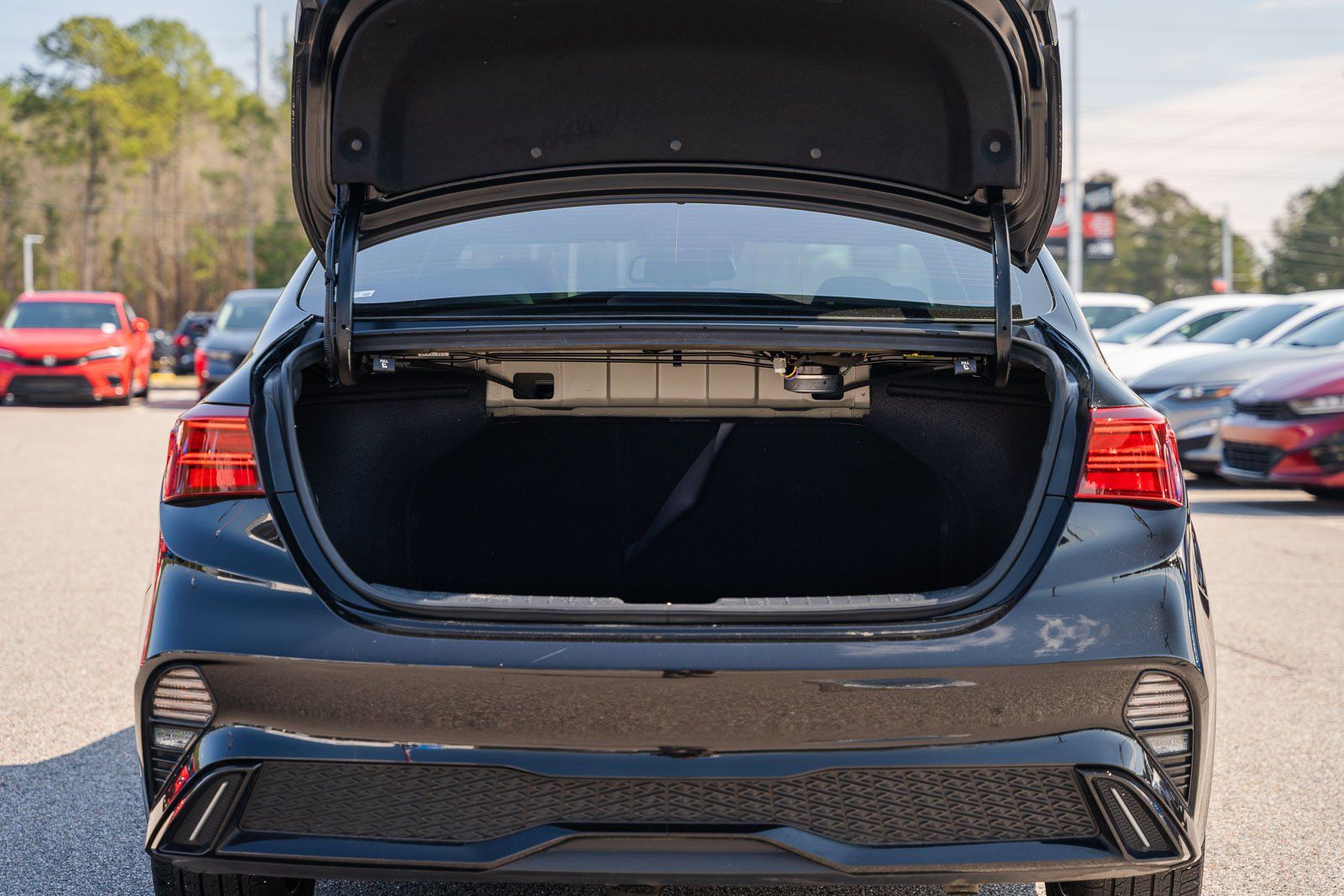 - Black rear bumper rub strip