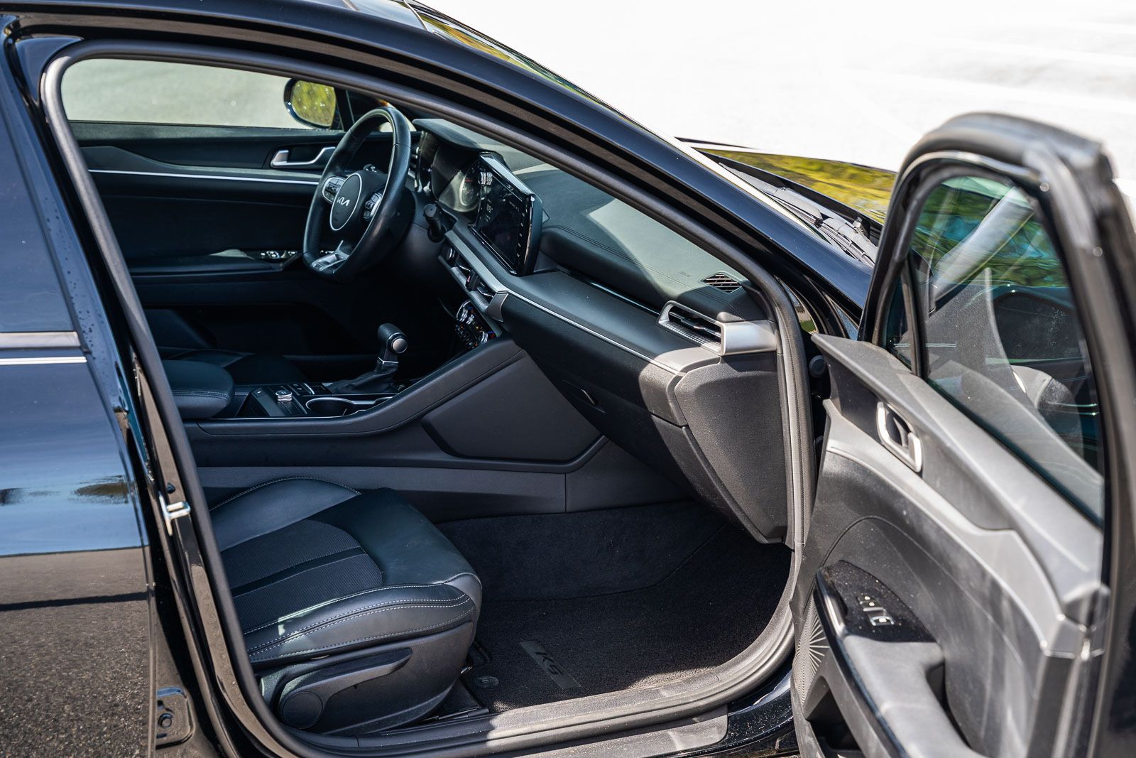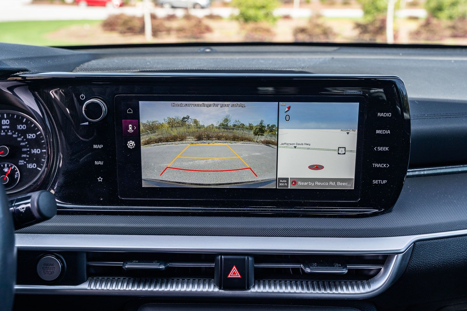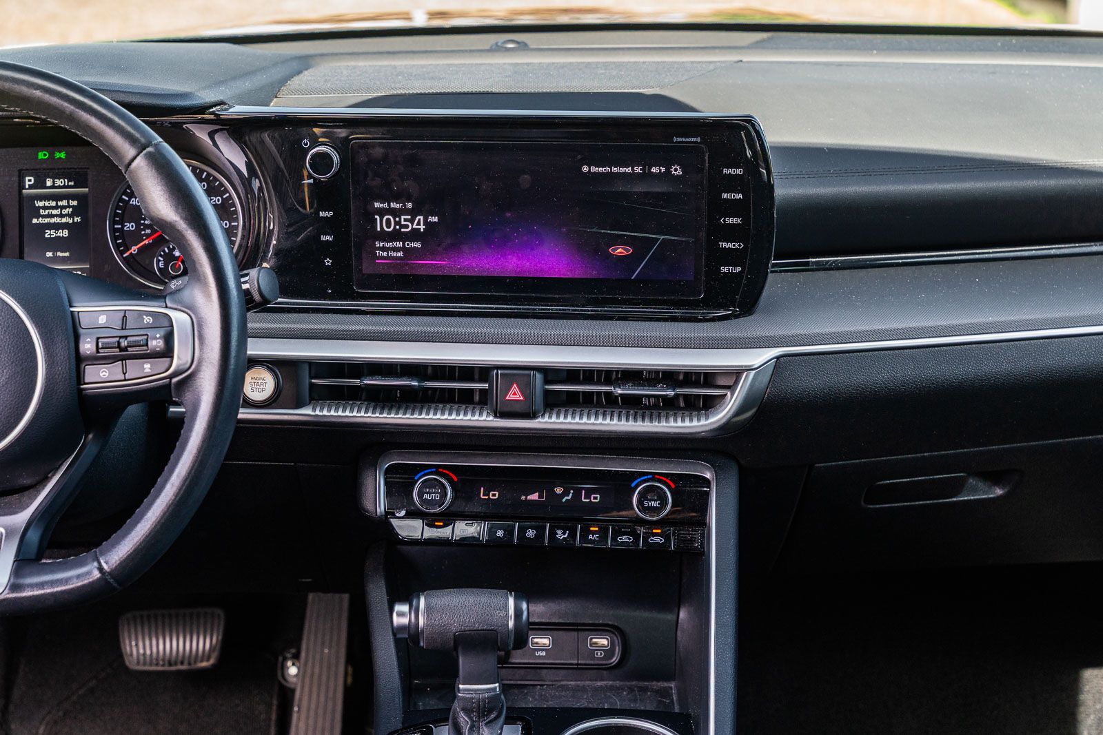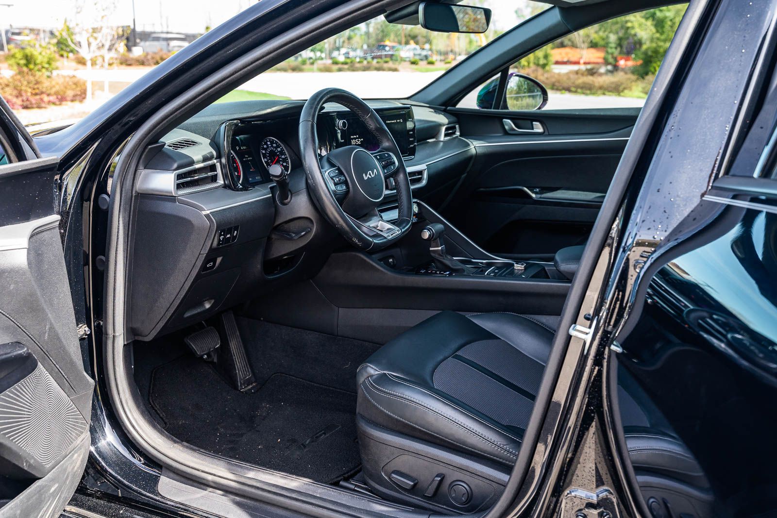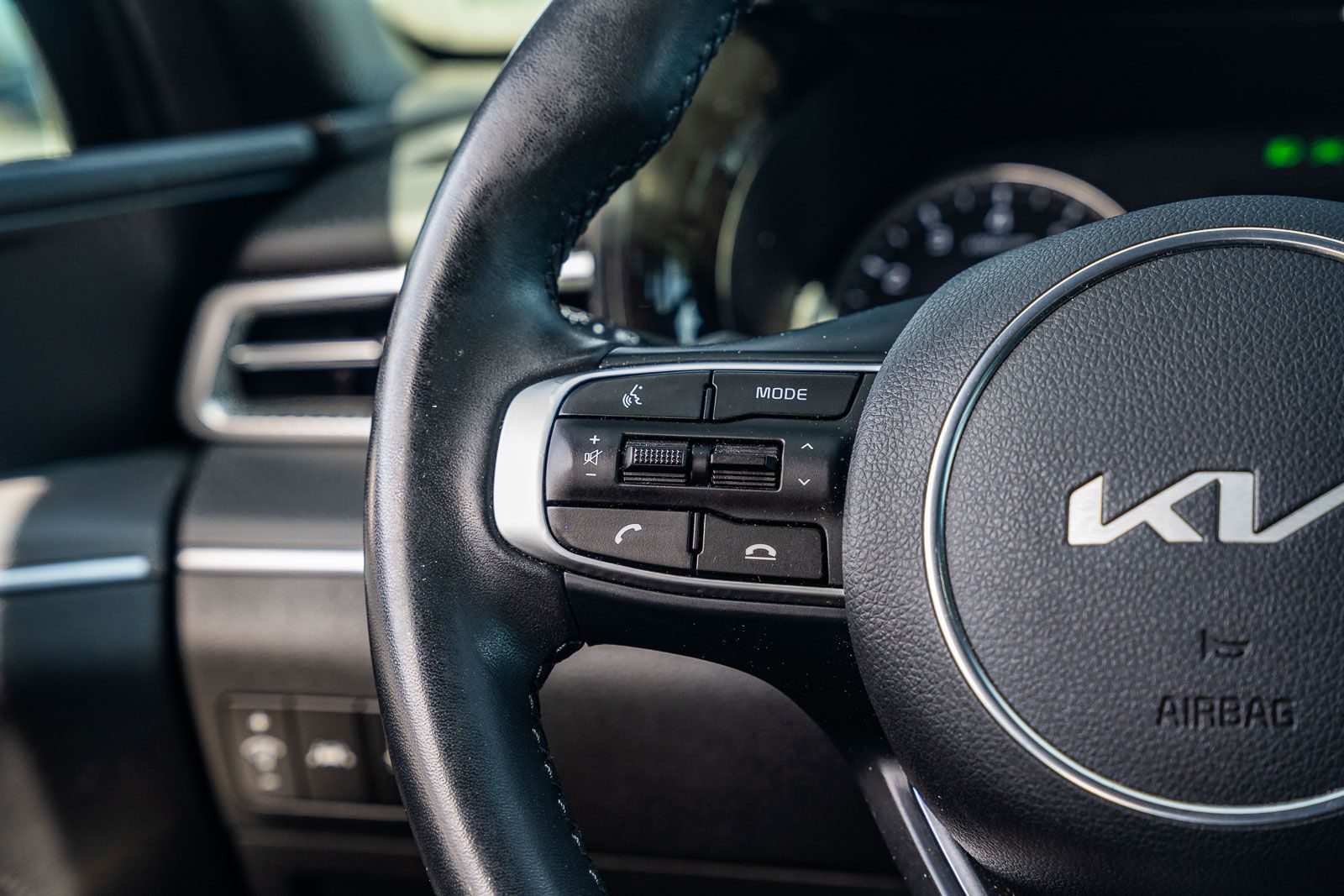 This K5 GT-Line includes GT-Line Panoramic Sunroof Package (LED Interior Lighting and Panoramic Sunroof), GT-Line Premium Package (Forward Collision Avoidance-Assist, Highway Driving Assist, LED Projection Headlamps, and Smart Cruise Control w/Stop & Go), 4-Wheel Disc Brakes, 6 Speakers, ABS brakes, Air Conditioning, Alloy wheels, AM/FM radio: SiriusXM, Apple CarPlay & Android Auto, Auto High-beam Headlights, Automatic temperature control, Brake assist, Bumpers: body-color, Carpeted Floor Mats, Cloth/SynTex Seat Trim, Delay-off headlights, Driver door bin, Driver vanity mirror, Dual front impact airbags, Dual front side impact airbags, EC Mirror w/Homelink, Electronic Stability Control, Four wheel independent suspension, Front anti-roll bar, Front Bucket Seats, Front Center Armrest, Front dual zone A/C, Front fog lights, Front reading lights, Fully automatic headlights, Heated door mirrors, Illuminated entry, Knee airbag, Low tire pressure warning, Navigation System, Occupant sensing airbag, Outside temperature display, Overhead airbag, Overhead console, Panic alarm, Passenger door bin, Passenger vanity mirror, Power door mirrors, Power driver seat, Power steering, Power windows, Puddle Lamps, Radio data system, Radio: AM/FM/MP3 Audio System, Rear anti-roll bar, Rear seat center armrest, Rear side impact airbag, Rear window defroster, Remote keyless entry, Security system, Speed control, Speed-sensing steering, Split folding rear seat, Spoiler, Sport steering wheel, Steering wheel mounted audio controls, Tachometer, Telescoping steering wheel, Tilt steering wheel, Traction control, Trip computer, Turn signal indicator mirrors, Variably intermittent wipers, and Wheels: 18" Gloss Black Machined Finish Alloy . While every effort has been made to ensure display of accurate data, the vehicle listings within this web site may not reflect all accurate vehicle items. All Inventory listed is subject to prior sale. The vehicle photo displayed may be an example only. Pricing throughout the web site does not include any options that may have been installed at the dealership. Please see the dealer for details. Vehicles may be in transit or currently in production. Some vehicles are shown with optional equipment. See the actual vehicle for complete accuracy of features, options & pricing. Because of the numerous possible combinations of vehicle models, styles, colors and options, the vehicle pictures on this site may not match your vehicle exactly; however, it will match as closely as possible. Some vehicle images shown are stock photos and may not reflect your exact choice of vehicle, color, trim and specification. Not responsible for pricing or typographical errors. Virtual Inventory, Available Configurations and In-Transit inventory contains vehicles that have not actually been manufactured. These vehicles show consumers sample vehicles that may be available. Pricing, Options, Color, and other data pertaining to these vehicles are provided for example only. All information pertaining to these vehicles should be independently verified through the dealer. 27/37 City/Highway MPG