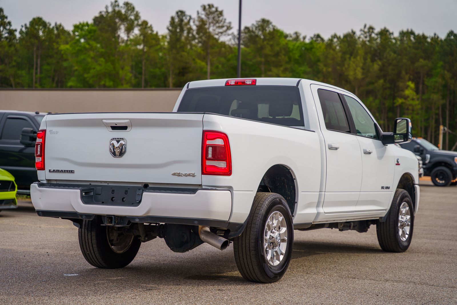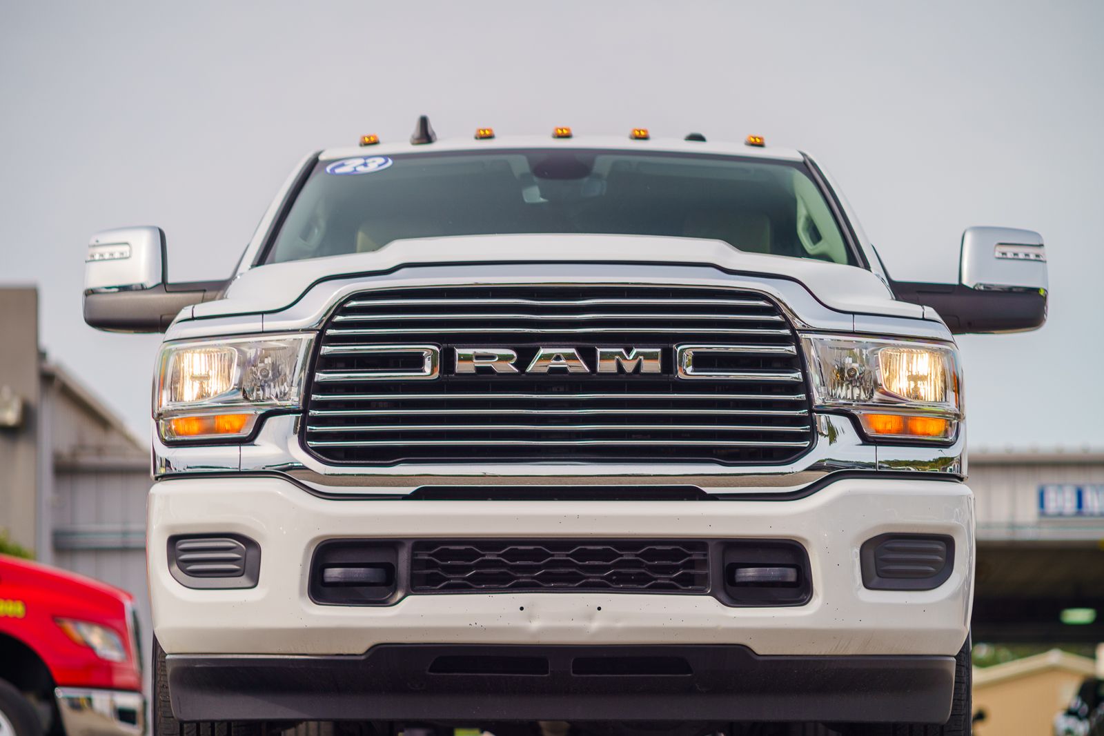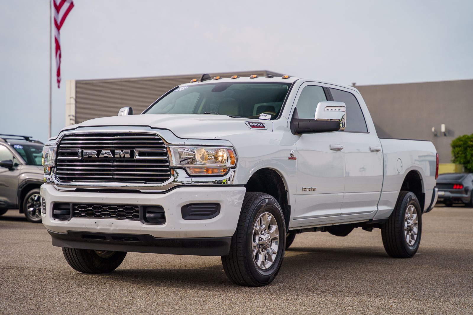 This vehicle comes equipped with Quick Order Package 2HH Laramie, Ford Blue Certified Eligible Certified, 10 Speakers, 115V Auxiliary Rear Power Outlet, 2 Way Rear Headrest Seat, 220 Amp Alternator, 3.73 Axle Ratio, 4 Way Front Headrests, 4-Wheel Disc Brakes, 4G LTE Wi-Fi Hot Spot, 5th Wheel/Gooseneck Towing Prep Group, ABS brakes, Active Noise Control System, Air Conditioning, Alexa Built-In, Alloy wheels, AM/FM radio: SiriusXM with 360L, Apple CarPlay, Apple CarPlay/Android Auto, Auto Power-Folding Mirrors, Auto-dimming Rear-View mirror, Automatic temperature control, Brake assist, Bumpers: body-color, Center Hub, Chrome Exterior Mirrors, Clearance Lamps, Compass, Connected Travel & Traffic Services, Connectivity - US/Canada, Delay-off headlights, Disassociated Touchscreen Display, Driver door bin, Driver vanity mirror, Dual front impact airbags, Dual front side impact airbags, Electronic Stability Control, Electronically Controlled Throttle, Emergency Vehicle Alert System (EVAS), Folding Flat Load Floor Storage, For Details Visit DriveUconnect.com, For More Info, Call 800-643-2112, Front anti-roll bar, Front Center Armrest w/Storage, Front dual zone A/C, Front License Plate Bracket, Front reading lights, Front Seat Back Map Pockets, Fully automatic headlights, Garage door transmitter, Global Telematics Box Module (TBM), Google Android Auto, GPS Antenna Input, GPS Navigation, HD Radio, Heated door mirrors, Heated Front Seats, Heated front seats, Heated Steering Wheel, Heated steering wheel, High Back Seats, Illuminated entry, Integrated Voice Command w/Bluetooth, Leather steering wheel, Leather Trim 40/20/40 Bench Seat, Low tire pressure warning, MOPAR Spray In Bedliner, Navigation System, Occupant sensing airbag, Off-Road Information Pages, Outside temperature display, Overhead airbag, Overhead console, Panic alarm, ParkView Rear Back-Up Camera, Passenger door bin, Passenger vanity mirror, Power 8-Way Adjustable Passenger Seat, Power Adjust 8-Way Driver Seat, Power Adjust Mirrors, Power door mirrors, Power driver seat, Power passenger seat, Power steering, Power windows, Power-Adjustable Convex Aux Mirrors, Radio data system, Radio: Uconnect 5 Nav w/8.4" Display, Rear 60/40 Folding Seat, Rear reading lights, Rear seat center armrest, Rear step bumper, Remote keyless entry, Security system, SiriusXM Radio Service, SiriusXM w/360L, Speed control, Split folding rear seat, Steering wheel mounted audio controls, Tachometer, Tilt steering wheel, Tip Start, Traction control, Trailer Tow Pages, Trip computer, Turn signal indicator mirrors, Variably intermittent wipers, Vendor Painted Cargo Box, Vendor Painted Cargo Box Tracking, Voltmeter, and Wheels: 18" x 8.0" Polished Aluminum.