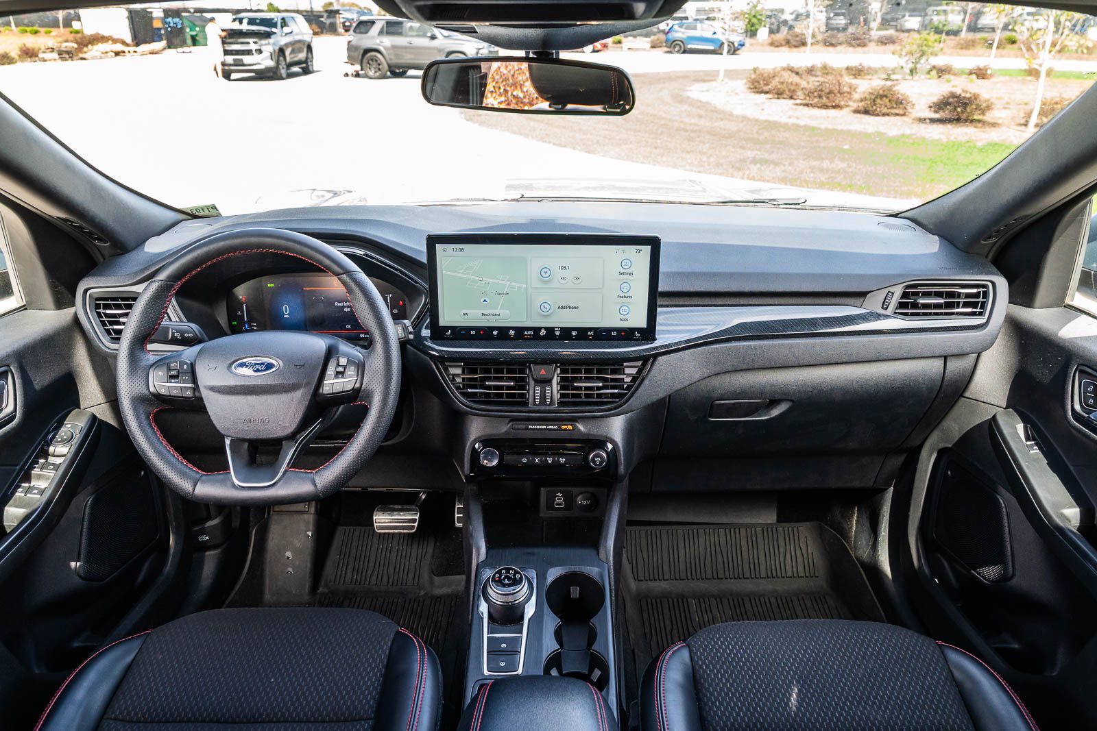 This Escape Hybrid ST-Line Select includes Equipment Group 400A (Electronic Fuel Door Release, Neutral Towing Capability, and Pedestrian Alert Sounder), Tech Pack #1 (Adaptive Cruise Control w/Stop-and-Go, Connected Navigation, Ford Co-Pilot360 Assist+, Rear Parking Sensor, Rear-View Camera, Speed Sign Recognition, and SYNC 4 w/Enhanced Voice Recognition), 2.5L iVCT, 2.91 Axle Ratio, 4-Wheel Disc Brakes, 6 Speakers, ABS brakes, Air Conditioning, Alloy wheels, AM/FM radio: SiriusXM, AM/FM Stereo, Auto High-beam Headlights, Automatic temperature control, Brake assist, Bumpers: body-color, Cargo Mat, Compass, Delay-off headlights, Driver door bin, Driver vanity mirror, Dual front impact airbags, Dual front side impact airbags, Easy Access Cargo Shade, Electronic Stability Control, Emergency communication system: SYNC 4 911 Assist, Exterior Parking Camera Rear, FordPass Connect, Four wheel independent suspension, Front & Rear Floor Liners w/Carpet Mats, Front anti-roll bar, Front Bucket Seats, Front Center Armrest, Front dual zone A/C, Front fog lights, Front License Plate Bracket, Front reading lights, Fully automatic headlights, Heated door mirrors, Heated front seats, Heated steering wheel, Heated Vinyl/Cloth Front Sport Contour Bucket Seats, Illuminated entry, Knee airbag, Low tire pressure warning, Occupant sensing airbag, Outside temperature display, Overhead airbag, Overhead console, Panic alarm, Passenger door bin, Passenger vanity mirror, Power door mirrors, Power driver seat, Power Liftgate, Power steering, Power windows, Radio data system, Rear anti-roll bar, Rear reading lights, Rear seat center armrest, Rear window defroster, Rear window wiper, Remote keyless entry, Roof rack: rails only, Speed control, Speed-sensing steering, Speed-Sensitive Wipers, Split folding rear seat, Spoiler, Sport steering wheel, Steering wheel mounted audio controls, SYNC 4, Tachometer, Telescoping steering wheel, Tilt steering wheel, Traction control, Trip computer, Variably intermittent wipers, and Wheels: 18" Rock Metallic Painted Aluminum . While every effort has been made to ensure display of accurate data, the vehicle listings within this web site may not reflect all accurate vehicle items. All Inventory listed is subject to prior sale. The vehicle photo displayed may be an example only. Pricing throughout the web site does not include any options that may have been installed at the dealership. Please see the dealer for details. Vehicles may be in transit or currently in production. Some vehicles are shown with optional equipment. See the actual vehicle for complete accuracy of features, options & pricing. Because of the numerous possible combinations of vehicle models, styles, colors and options, the vehicle pictures on this site may not match your vehicle exactly; however, it will match as closely as possible. Some vehicle images shown are stock photos and may not reflect your exact choice of vehicle, color, trim and specification. Not responsible for pricing or typographical errors. Virtual Inventory, Available Configurations and In-Transit inventory contains vehicles that have not actually been manufactured. These vehicles show consumers sample vehicles that may be available. Pricing, Options, Color, and other data pertaining to these vehicles are provided for example only. All information pertaining to these vehicles should be independently verified through the dealer. 42/36 City/Highway MPG