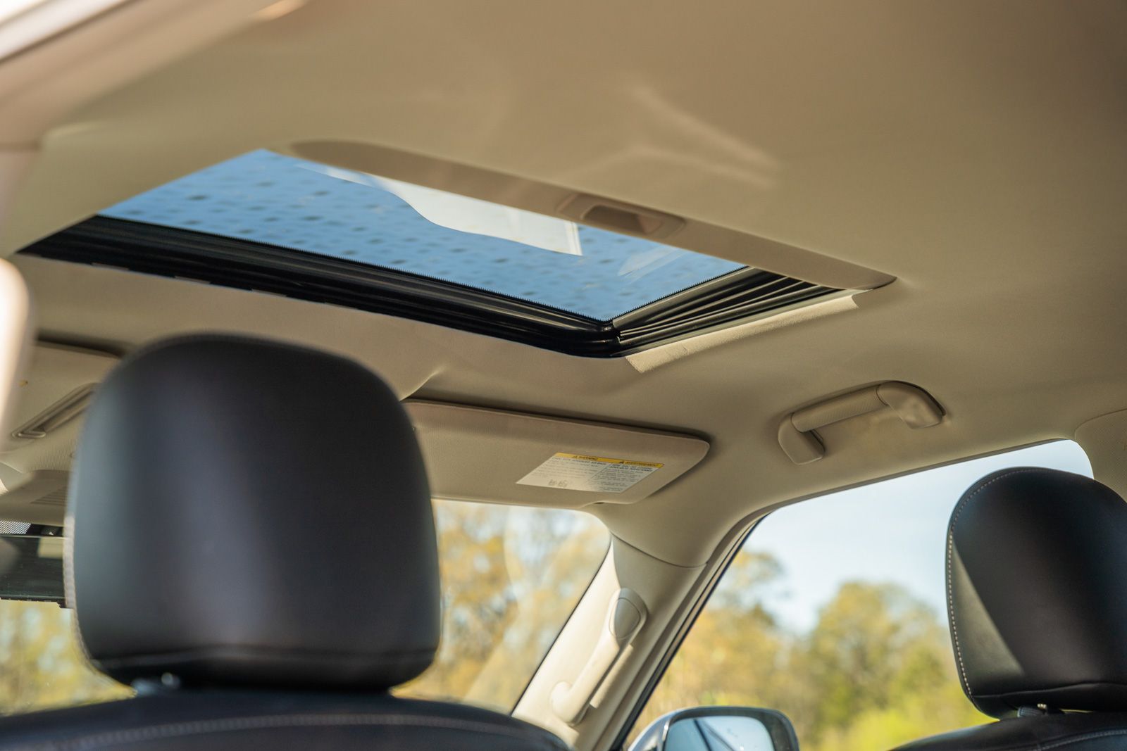 - First-row sliding and tilting glass sunroof with express open/close activation sunshade