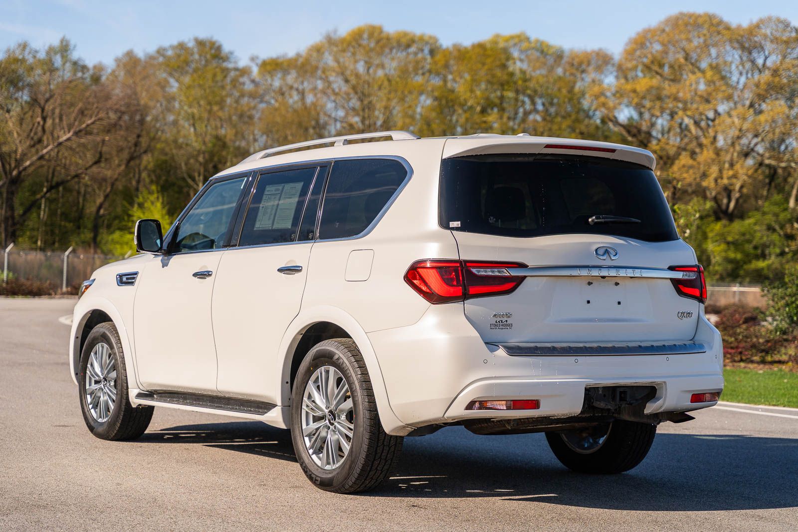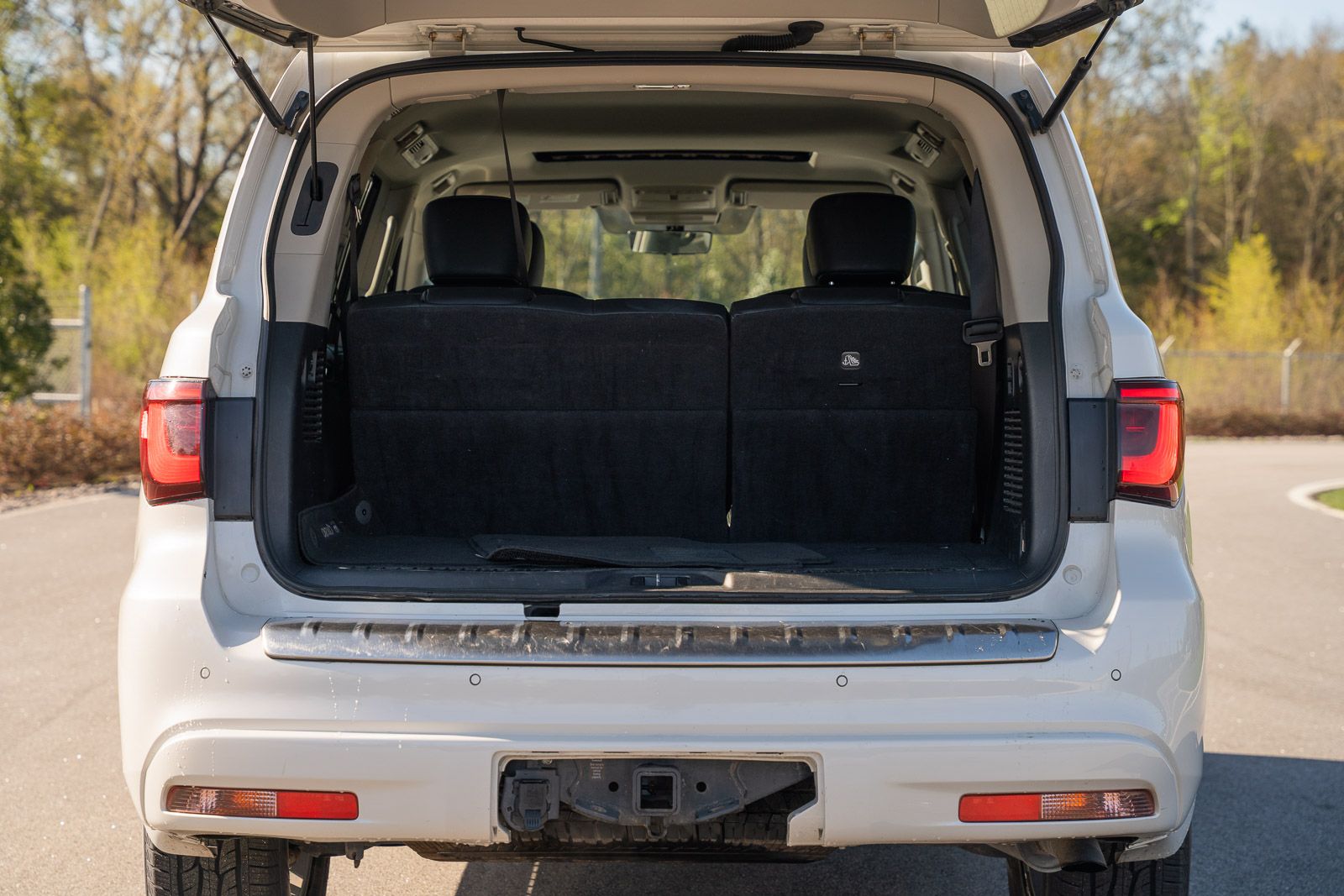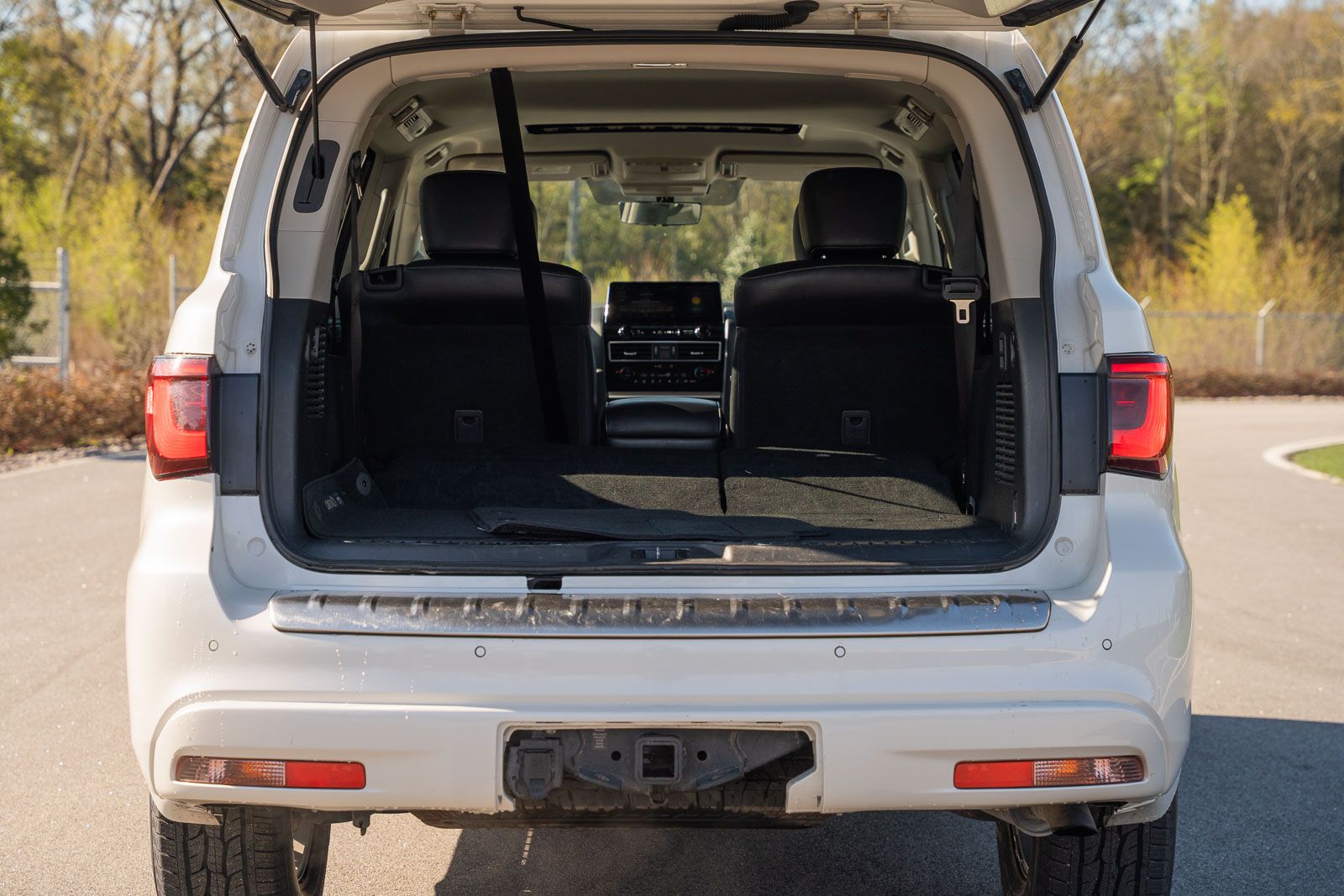 This QX80 LUXE includes 13 Speakers, 2.937 Axle Ratio, 20" Aluminum Alloy Wheels, 3rd row seats: bench, 4-Wheel Disc Brakes, ABS brakes, Air Conditioning, Alloy wheels, AM/FM radio: SiriusXM, Anti-whiplash front head restraints, Apple CarPlay/Android Auto, Auto High-beam Headlights, Auto tilt-away steering wheel, Auto-dimming door mirrors, Auto-dimming Rear-View mirror, Auto-leveling suspension, Automatic temperature control, Brake assist, Bumpers: body-color, Compass, Delay-off headlights, Driver door bin, Driver vanity mirror, Dual front impact airbags, Dual front side impact airbags, Electronic Stability Control, Emergency communication system: INFINITI InTouch, Four wheel independent suspension, Front anti-roll bar, Front Bucket Seats, Front Center Armrest, Front dual zone A/C, Front fog lights, Front reading lights, Fully automatic headlights, Garage door transmitter: HomeLink, Heated door mirrors, Heated Front Bucket Seats, Heated front seats, Heated steering wheel, Illuminated entry, Leather Shift Knob, Leather steering wheel, Leather-Appointed Seats, Literature Kit, Low tire pressure warning, Memory seat, Navigation system: INFINITI InTouch Navigation, Occupant sensing airbag, Outside temperature display, Overhead airbag, Overhead console, Panic alarm, Passenger door bin, Passenger vanity mirror, Power door mirrors, Power driver seat, Power Liftgate, Power moonroof, Power passenger seat, Power steering, Power windows, Radio data system, Radio: Bose Premium Audio System w/13 Speakers, Rain sensing wipers, Rear air conditioning, Rear anti-roll bar, Rear reading lights, Rear seat center armrest, Rear window defroster, Rear window wiper, Reclining 3rd row seat, Remote keyless entry, Security system, Speed control, Speed-sensing steering, Split folding rear seat, Spoiler, Steering wheel memory, Steering wheel mounted audio controls, Tachometer, Telescoping steering wheel, Tilt steering wheel, Traction control, Trip computer, Turn signal indicator mirrors, Variably intermittent wipers, and Voltmeter . While every effort has been made to ensure display of accurate data, the vehicle listings within this web site may not reflect all accurate vehicle items. All Inventory listed is subject to prior sale. The vehicle photo displayed may be an example only. Pricing throughout the web site does not include any options that may have been installed at the dealership. Please see the dealer for details. Vehicles may be in transit or currently in production. Some vehicles are shown with optional equipment. See the actual vehicle for complete accuracy of features, options & pricing. Because of the numerous possible combinations of vehicle models, styles, colors and options, the vehicle pictures on this site may not match your vehicle exactly; however, it will match as closely as possible. Some vehicle images shown are stock photos and may not reflect your exact choice of vehicle, color, trim and specification. Not responsible for pricing or typographical errors. Virtual Inventory, Available Configurations and In-Transit inventory contains vehicles that have not actually been manufactured. These vehicles show consumers sample vehicles that may be available. Pricing, Options, Color, and other data pertaining to these vehicles are provided for example only. All information pertaining to these vehicles should be independently verified through the dealer.