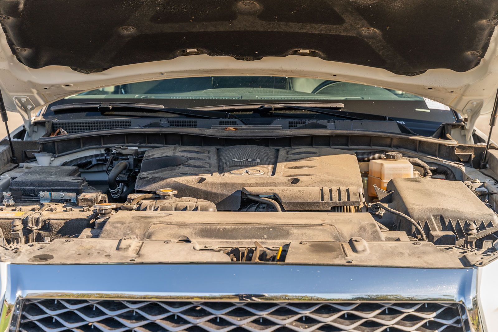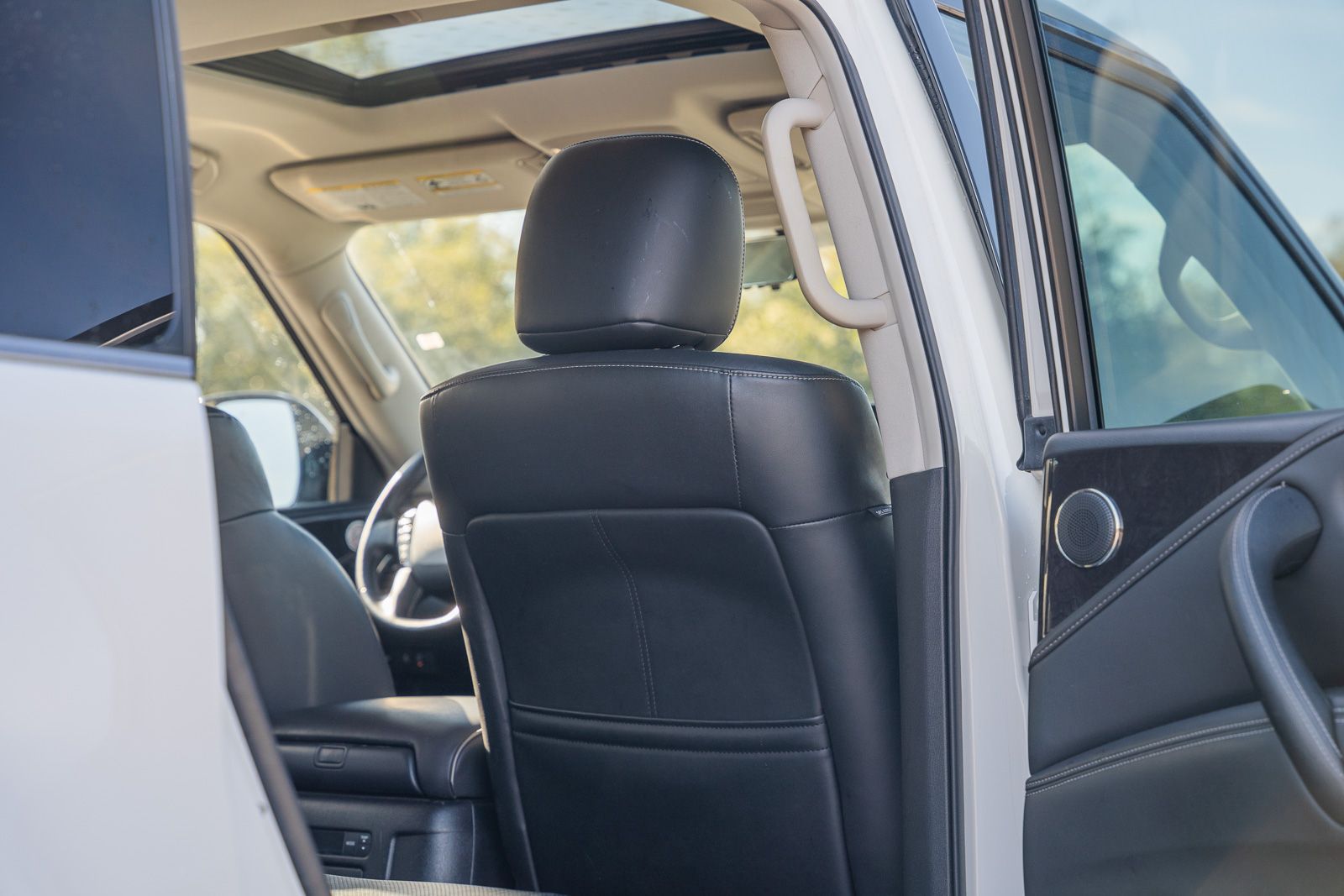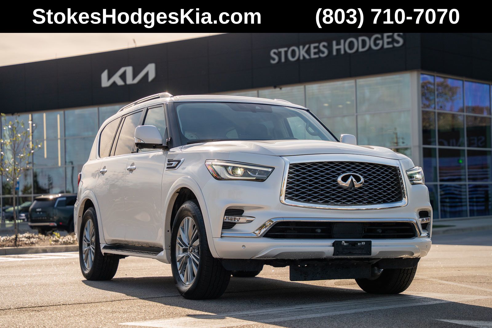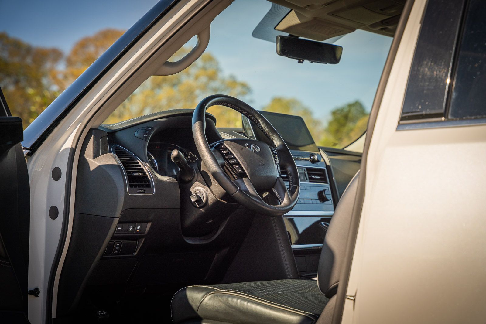 This QX80 LUXE includes 13 Speakers, 2.937 Axle Ratio, 20" Aluminum Alloy Wheels, 3rd row seats: bench, 4-Wheel Disc Brakes, ABS brakes, Air Conditioning, Alloy wheels, AM/FM radio: SiriusXM, Anti-whiplash front head restraints, Apple CarPlay/Android Auto, Auto High-beam Headlights, Auto tilt-away steering wheel, Auto-dimming door mirrors, Auto-dimming Rear-View mirror, Auto-leveling suspension, Automatic temperature control, Brake assist, Bumpers: body-color, Compass, Delay-off headlights, Driver door bin, Driver vanity mirror, Dual front impact airbags, Dual front side impact airbags, Electronic Stability Control, Emergency communication system: INFINITI InTouch, Four wheel independent suspension, Front anti-roll bar, Front Bucket Seats, Front Center Armrest, Front dual zone A/C, Front fog lights, Front reading lights, Fully automatic headlights, Garage door transmitter: HomeLink, Heated door mirrors, Heated Front Bucket Seats, Heated front seats, Heated steering wheel, Illuminated entry, Leather Shift Knob, Leather steering wheel, Leather-Appointed Seats, Literature Kit, Low tire pressure warning, Memory seat, Navigation system: INFINITI InTouch Navigation, Occupant sensing airbag, Outside temperature display, Overhead airbag, Overhead console, Panic alarm, Passenger door bin, Passenger vanity mirror, Power door mirrors, Power driver seat, Power Liftgate, Power moonroof, Power passenger seat, Power steering, Power windows, Radio data system, Radio: Bose Premium Audio System w/13 Speakers, Rain sensing wipers, Rear air conditioning, Rear anti-roll bar, Rear reading lights, Rear seat center armrest, Rear window defroster, Rear window wiper, Reclining 3rd row seat, Remote keyless entry, Security system, Speed control, Speed-sensing steering, Split folding rear seat, Spoiler, Steering wheel memory, Steering wheel mounted audio controls, Tachometer, Telescoping steering wheel, Tilt steering wheel, Traction control, Trip computer, Turn signal indicator mirrors, Variably intermittent wipers, and Voltmeter . While every effort has been made to ensure display of accurate data, the vehicle listings within this web site may not reflect all accurate vehicle items. All Inventory listed is subject to prior sale. The vehicle photo displayed may be an example only. Pricing throughout the web site does not include any options that may have been installed at the dealership. Please see the dealer for details. Vehicles may be in transit or currently in production. Some vehicles are shown with optional equipment. See the actual vehicle for complete accuracy of features, options & pricing. Because of the numerous possible combinations of vehicle models, styles, colors and options, the vehicle pictures on this site may not match your vehicle exactly; however, it will match as closely as possible. Some vehicle images shown are stock photos and may not reflect your exact choice of vehicle, color, trim and specification. Not responsible for pricing or typographical errors. Virtual Inventory, Available Configurations and In-Transit inventory contains vehicles that have not actually been manufactured. These vehicles show consumers sample vehicles that may be available. Pricing, Options, Color, and other data pertaining to these vehicles are provided for example only. All information pertaining to these vehicles should be independently verified through the dealer.