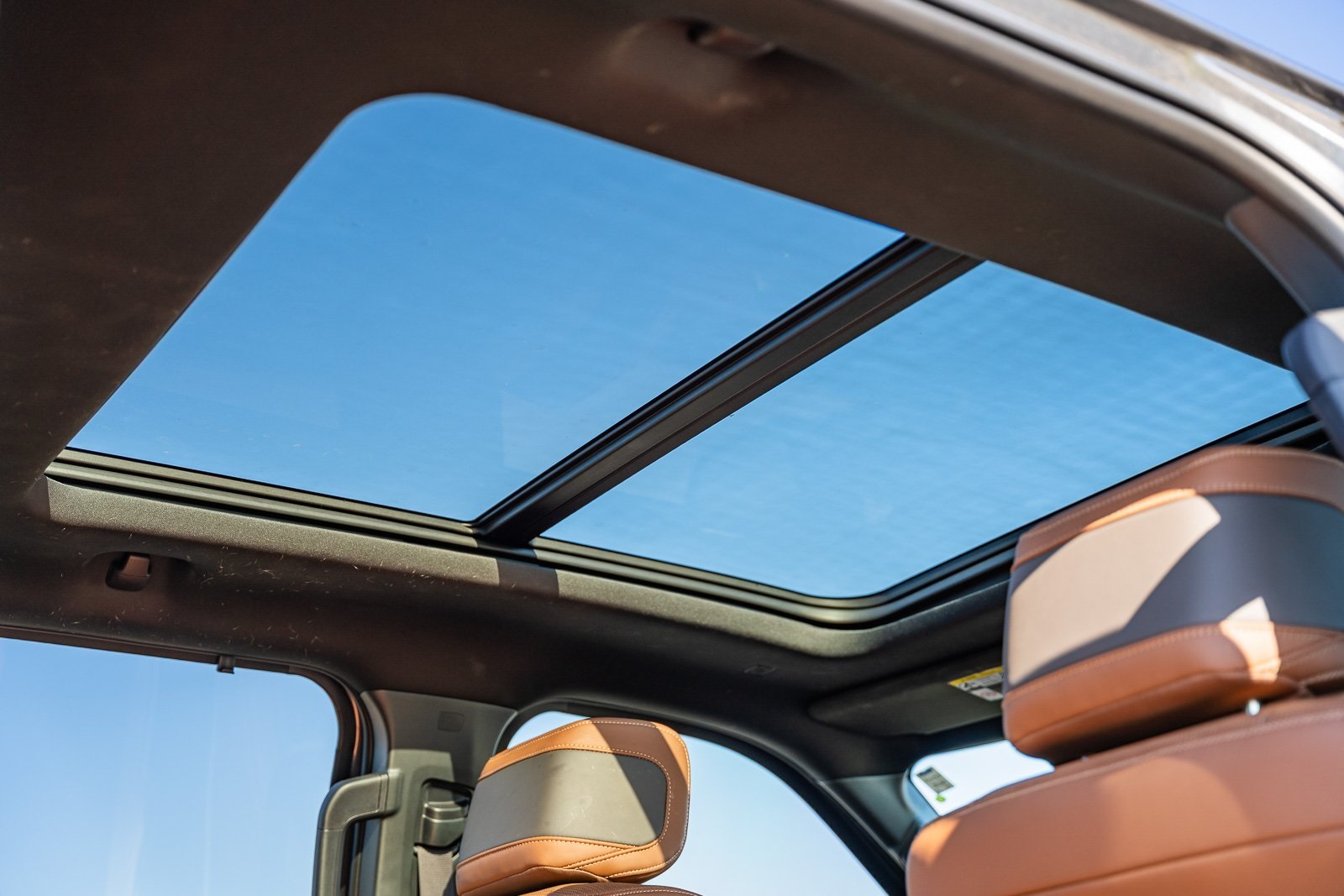 - First and second-row sliding and tilting glass sunroof with express open/close activation sunshade