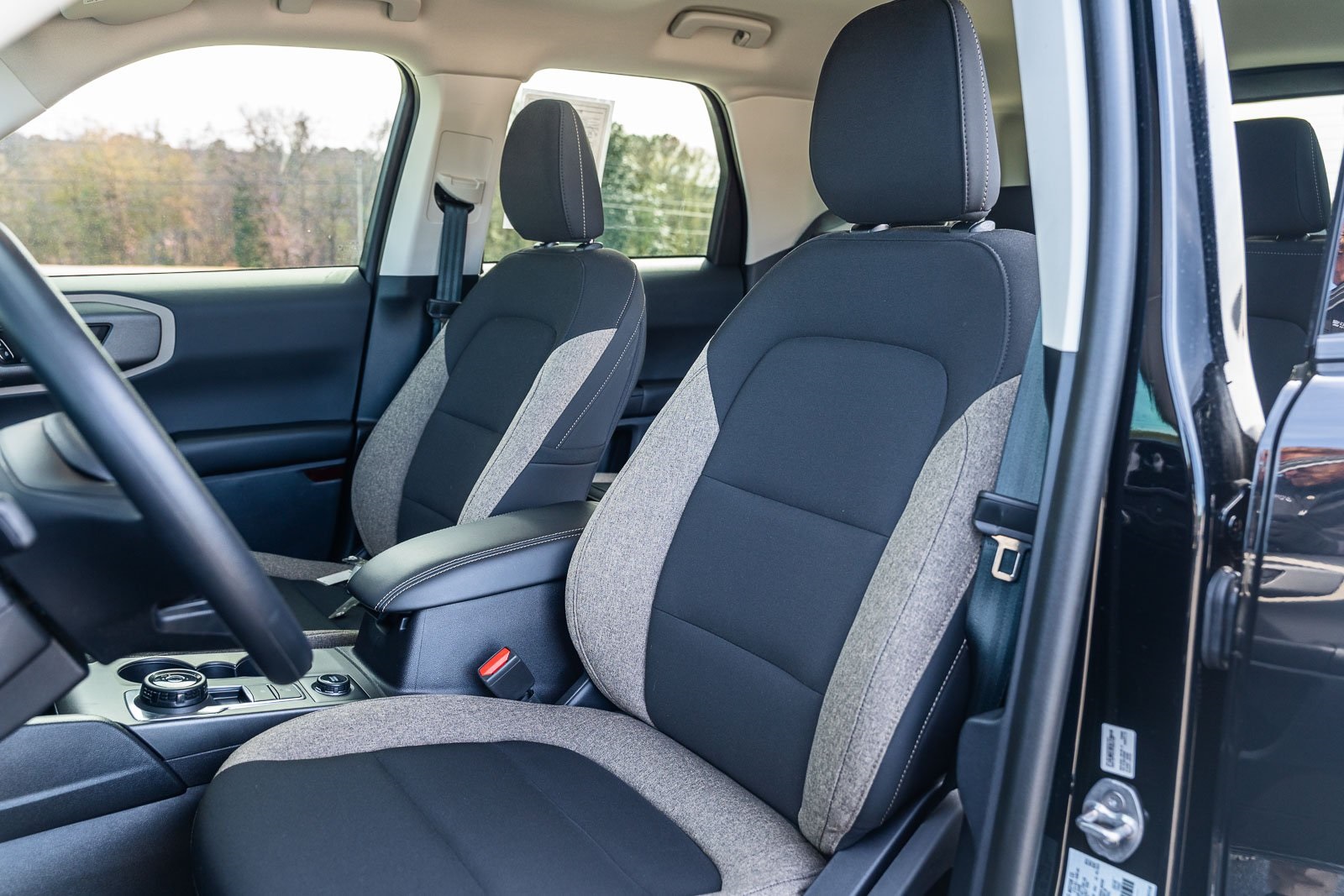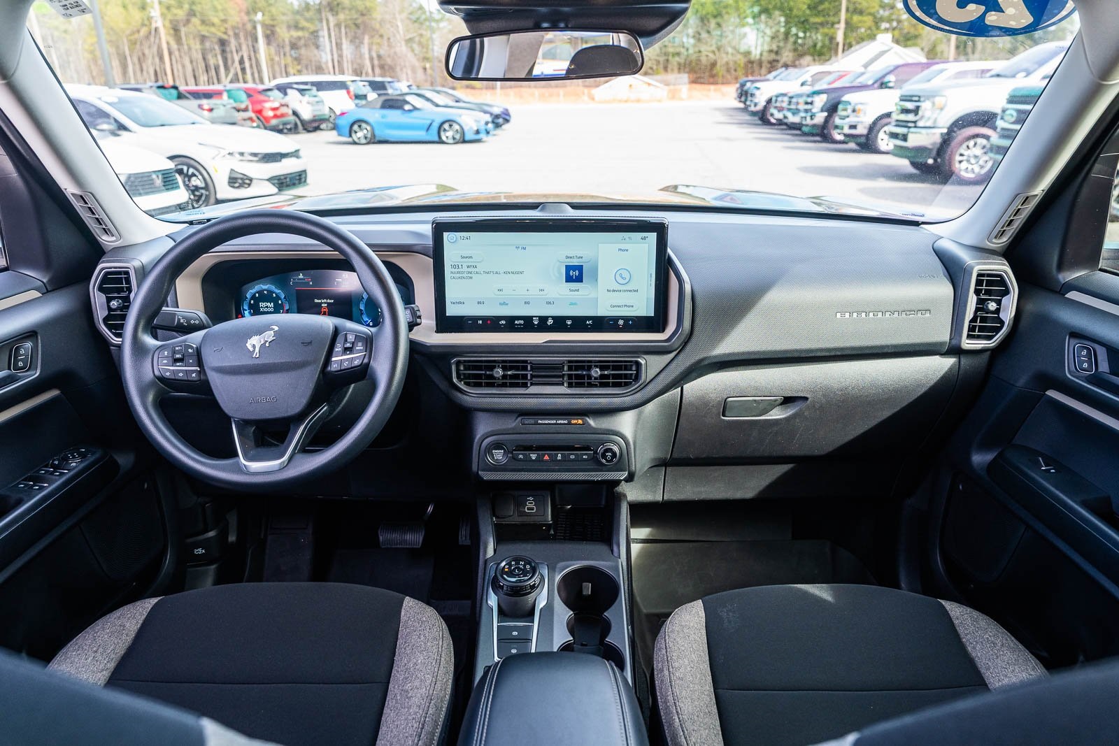 This vehicle comes equipped with Equipment Group 200A, Ford Certified, 4-Wheel Disc Brakes, 6 Speakers, ABS brakes, Air Conditioning, Alloy wheels, AM/FM radio: SiriusXM, AM/FM Stereo, Auto High-beam Headlights, Automatic temperature control, Brake assist, Cloth w/Easy-to-Clean Front Bucket Seats, Compass, Delay-off headlights, Driver door bin, Driver vanity mirror, Dual front impact airbags, Dual front side impact airbags, Electronic Stability Control, Emergency communication system: SYNC 4 911 Assist, Four wheel independent suspension, Front & Rear Floor Liners w/o Carpet Mats, Front anti-roll bar, Front Bucket Seats, Front Center Armrest, Front License Plate Bracket, Front reading lights, Fully automatic headlights, Heated door mirrors, Illuminated entry, Knee airbag, Low tire pressure warning, Occupant sensing airbag, Outside temperature display, Overhead airbag, Overhead console, Panic alarm, Passenger door bin, Passenger vanity mirror, Power door mirrors, Power steering, Power windows, Radio data system, Rear anti-roll bar, Rear Parking Sensors, Rear reading lights, Rear seat center armrest, Rear window defroster, Rear window wiper, Remote keyless entry, Security system, SiriusXM, Speed control, Speed-sensing steering, Speed-Sensitive Wipers, Split folding rear seat, Steering wheel mounted audio controls, SYNC 4 w/Enhanced Voice Recognition, Tachometer, Telescoping steering wheel, Tilt steering wheel, Traction control, Trip computer, Variably intermittent wipers, and Wheels: 17" Carbonized Gray-Painted Aluminum.