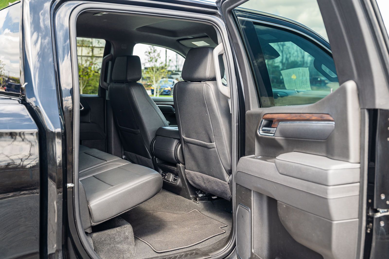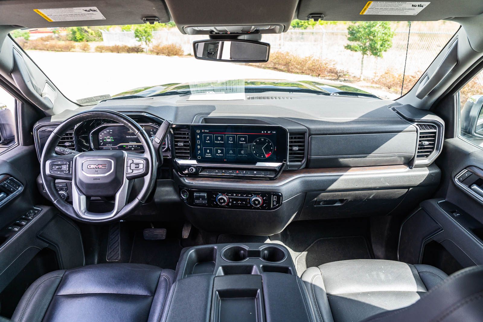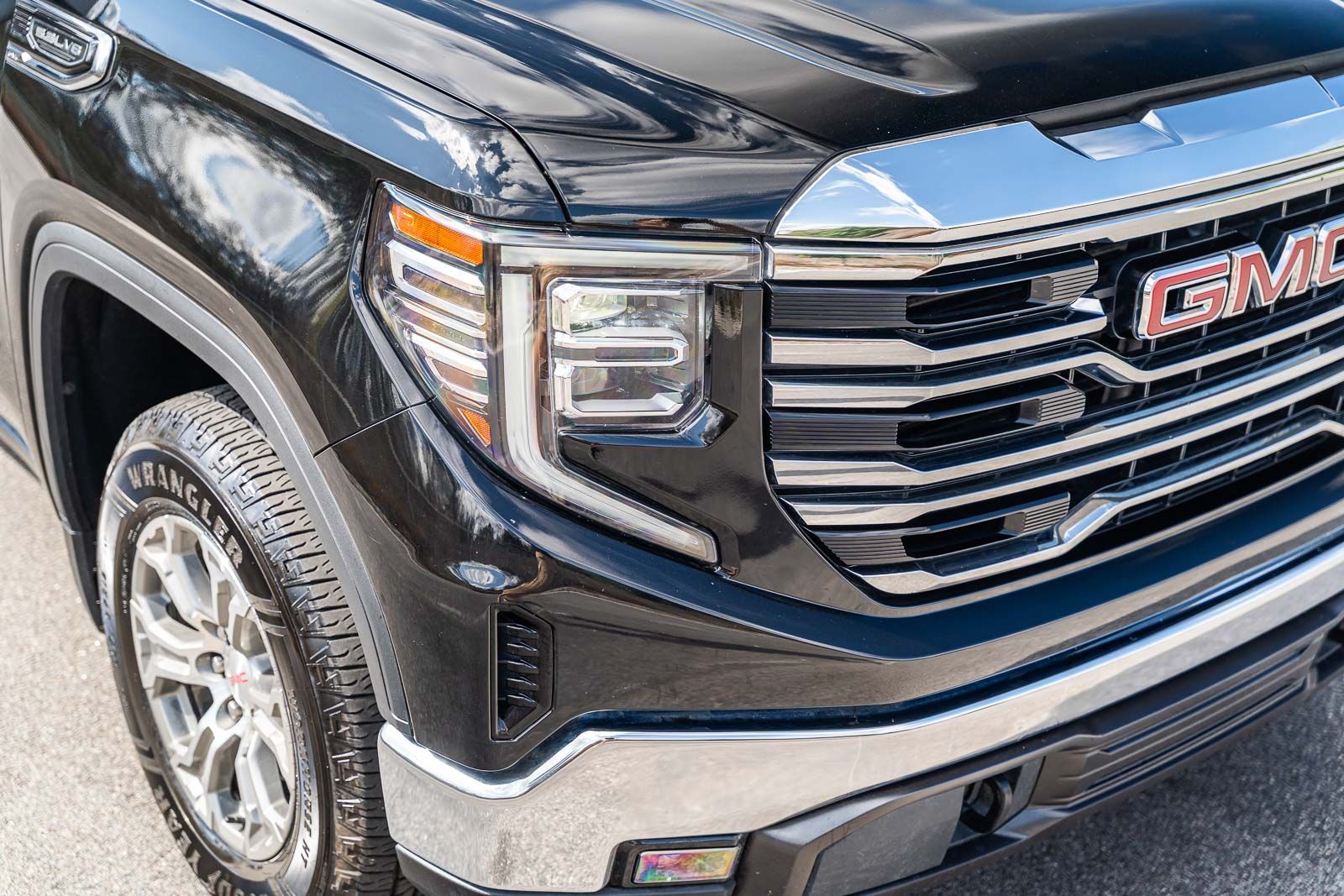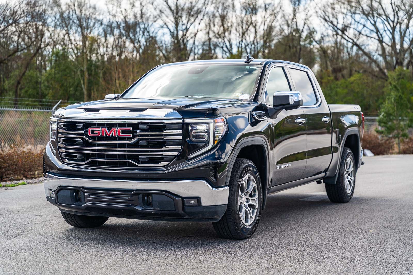This Sierra 1500 SLT includes Preferred Equipment Group 4SA (120-Volt Bed Mounted Power Outlet, 120-Volt Interior Power Outlet, 170 Amp Alternator, 2 Charge/Data USB Ports, 2 Type-C Charge-Only Rear USB Ports, 6-Speaker Audio System Feature, Auto-Locking Rear Differential, Auxiliary External Transmission Oil Cooler, Chrome Header & Chrome Grille Insert Bars, Color-Keyed Carpeting Floor Covering, Deep-Tinted Glass, Electric Rear-Window Defogger, Front Frame-Mounted Black Recovery Hooks, Front Rain-Sensing Wipers, HD Rear Vision Camera, Integrated Trailer Brake Controller, Keyless Open & Start, LED Cargo Area Lighting, Manual Tilt-Wheel & Telescoping Steering Column, OnStar Services Capable, Perimeter Lighting, Power Door Locks, Power Front Passenger Windows w/Express Up/Down, Power Front Windows w/Driver Express Up/Down, Power Rear Windows w/Express Down, Push Button Start, Rear Wheelhouse Liners, Remote Vehicle Starter System, SiriusXM w/360L Trial Subscription, Steering Wheel Audio Controls, Theft Deterrent System (Unauthorized Entry), and Wi-Fi Hotspot Capable), Standard Suspension Package, Trailering Package (Hitch Guidance), 10-Speed Automatic, 4WD, Black Leather, 10-Way Power Driver Seat Adjuster w/Lumbar, 10-Way Power Passenger Seat Adjuster w/Lumbar, 3.23 Rear Axle Ratio, 4-Wheel Disc Brakes, 6 Speakers, ABS brakes, Air Conditioning, Alloy wheels, AM/FM radio: SiriusXM with 360L, Apple CarPlay/Android Auto, Auto High-beam Headlights, Auto-dimming door mirrors, Auto-dimming Rear-View mirror, Automatic Emergency Braking, Automatic temperature control, Brake assist, Buckle to Drive, Bumpers: chrome, Compass, Delay-off headlights, Driver door bin, Driver Memory, Driver vanity mirror, Dual front impact airbags, Dual front side impact airbags, Electronic Stability Control, Emergency communication system: OnStar, Following Distance Indicator, Forward Collision Alert, Front 40/20/40 Split-Bench Seat, Front anti-roll bar, Front Center Armrest w/Storage, Front dual zone A/C, Front fog lights, Front Pedestrian Braking, Front reading lights, Front wheel independent suspension, Fully automatic headlights, Heated door mirrors, Heated Driver & Front Outboard Passenger Seating, Heated front seats, Heated steering wheel, Illuminated entry, IntelliBeam Automatic High Beam On/Off, Lane Keep Assist w/Lane Departure Warning, Low tire pressure warning, Memory seat, Navigation System, Occupant sensing airbag, Outside temperature display, Overhead airbag, Overhead console, Panic alarm, Passenger door bin, Passenger vanity mirror, Perf Leather-Appointed Front Outboard Seat Trim, Power door mirrors, Power driver seat, Power passenger seat, Power steering, Power windows, Radio data system, Radio: Premium GMC Infotainment Audio System, Rain sensing wipers, Rear reading lights, Rear seat center armrest, Rear step bumper, Rear window defroster, Remote keyless entry, Security system, Speed control, Speed-sensing steering, Split folding rear seat, Steering wheel mounted audio controls, Tachometer, Telescoping steering wheel, Tilt steering wheel, Traction control, Trip computer, Variably intermittent wipers, Voltmeter, Wheels: 18" x 8.5" 6-Spoke Machined Aluminum, and Wireless Apple CarPlay/Wireless Android Auto . While every effort has been made to ensure display of accurate data, the vehicle listings within this web site may not reflect all accurate vehicle items. All Inventory listed is subject to prior sale. The vehicle photo displayed may be an example only. Pricing throughout the web site does not include any options that may have been installed at the dealership. Please see the dealer for details. Vehicles may be in transit or currently in production. Some vehicles are shown with optional equipment. See the actual vehicle for complete accuracy of features, options & pricing. Because o