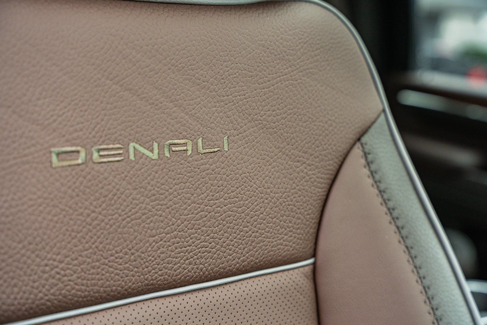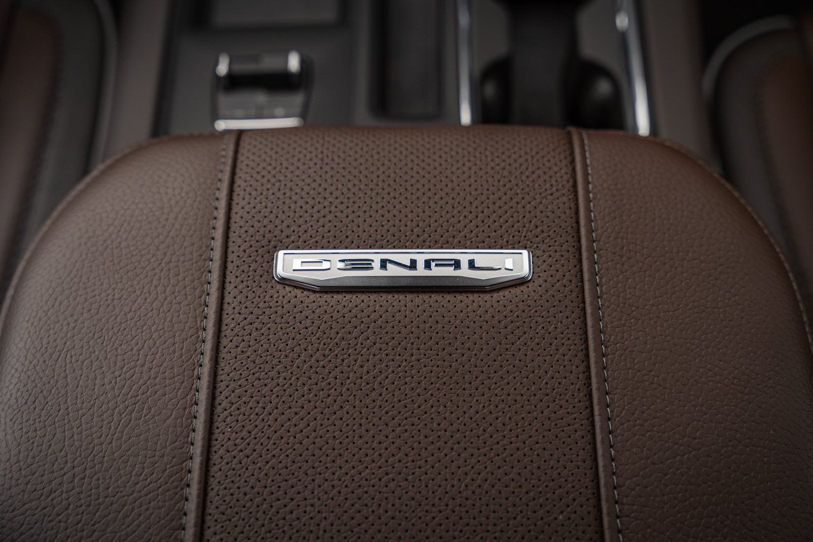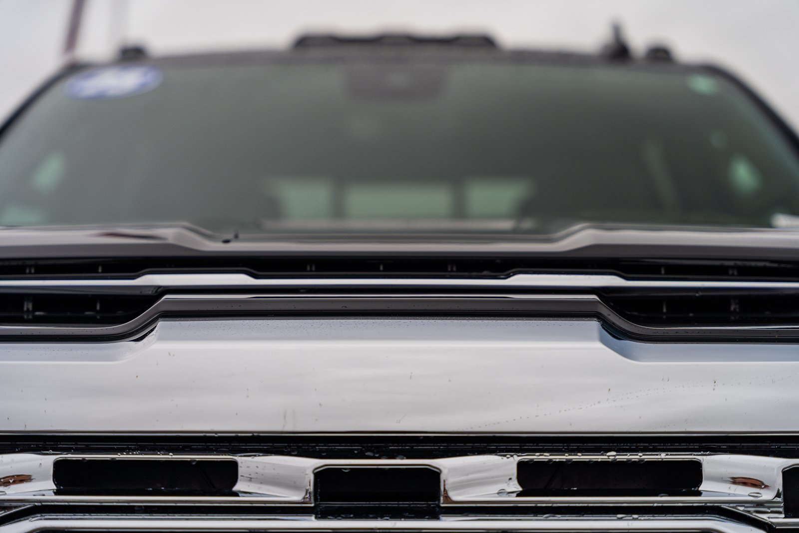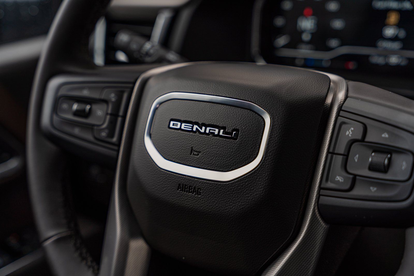 This vehicle comes equipped with Denali Reserve Package (Power Sunroof), Gooseneck/5th Wheel Prep Package, Preferred Equipment Group 5SA (120-Volt Bed Mounted Power Outlet, 120-Volt Instrument Panel Power Outlet, 2 Charge-Only Rear USB Ports, 2 Charge/Data USB Ports Inside Center Console, 2 USB Ports, 2-Speed Active Transfer Case, Bed View Camera w/2 Trailer Camera Provisions, Bose Premium 7-Speaker Sound System, Deep-Tinted Glass, Electric Rear-Window Defogger, Floor-Mounted Center Console, Front Rain-Sensing Wipers, HD Surround Vision, Heated 2nd Row Outboard Seats, Heated Driver & Front Outboard Passenger Seats, Keyless Open & Start, LED Cargo Area Lighting, LED Smoked Amber Roof Marker Lamps, Manual Tilt-Wheel/Telescoping Steering Column, Polished Exhaust Tip, Power Front Windows w/Passenger Express Up/Down, Power Sliding Rear Window w/Defogger, Push Button Start, Rear Cross Traffic Alert, Remote Vehicle Starter System, Safety Alert Seat, Signature Chrome Denali Grille, SiriusXM w/360L Trial Subscription, Spray-On Pickup Bedliner w/GMC Logo, Steering Wheel Audio Controls, Trailer Camera Provisions, Trailer Side Blind Zone Alert, Ultrasonic Front & Rear Park Assist, Unauthorized Entry Theft-Deterrent System, Universal Home Remote, Ventilated Driver & Front Passenger Seats, Wireless Charging, and Wireless Phone Projection), Technology Package (Auto-Dimming Inside Rearview Mirror w/Camera and Multicolor 15" Diagonal Head-Up Display), 10-Speed Automatic, 4WD, Atmosphere/Brownstone Leather, 12-Way Power Driver Seat Adjuster w/Lumbar, 12-Way Power Passenger Seat Adjuster w/Lumbar, 220 Amp Alternator, 3.42 Rear Axle Ratio, 3.73 Rear Axle Ratio, 4-Wheel Disc Brakes, 7 Speakers, ABS brakes, Air Conditioning, Alloy wheels, AM/FM radio: SiriusXM with 360L, Auto High-beam Headlights, Auto-dimming door mirrors, Auto-dimming Rear-View mirror, Automatic Emergency Braking, Automatic temperature control, Brake assist, Buckle to Drive, Bumpers: body-color, Compass, Delay-off headlights, Driver door bin, Driver Memory, Driver vanity mirror, Dual front impact airbags, Dual front side impact airbags, Electronic Stability Control, Engine Block Heater, Exhaust Brake, Exterior Parking Camera Rear, Following Distance Indicator, Forge Perforated Leather Seat Trim, Forward Collision Alert, Front anti-roll bar, Front Bucket Seats, Front Center Armrest, Front dual zone A/C, Front fog lights, Front Pedestrian Braking, Front reading lights, Front wheel independent suspension, Fully automatic headlights, Garage door transmitter, Genuine wood dashboard insert, Genuine wood door panel insert, GMC Premium 13.4" Diagonal Information Display, Heated door mirrors, Heated front seats, Heated rear seats, Heated steering wheel, Heavy-Duty 80 Amp-Hr Battery, Hitch Guidance w/Hitch View, Illuminated entry, IntelliBeam Automatic High Beam On/Off, Lane Departure Warning System, Low tire pressure warning, Memory seat, Occupant sensing airbag, Outside temperature display, Overhead airbag, Overhead console, Panic alarm, Passenger door bin, Passenger vanity mirror, Pickup Bed, Power door mirrors, Power driver seat, Power passenger seat, Power steering, Power windows, Power-Retractable Assist Steps, Radio: AM/FM w/Premium GMC Infotainment System, Rain sensing wipers, Rear reading lights, Rear seat center armrest, Rear step bumper, Rear window defroster, Remote keyless entry, Security system, Speed control, Speed-sensing steering, Split folding rear seat, Steering wheel mounted audio controls, Tachometer, Telescoping steering wheel, Tilt steering wheel, Traction control, Trip computer, Turn signal indicator mirrors, Variably intermittent wipers, Ventilated front seats, Voltmeter, and Winter Grille Cover.