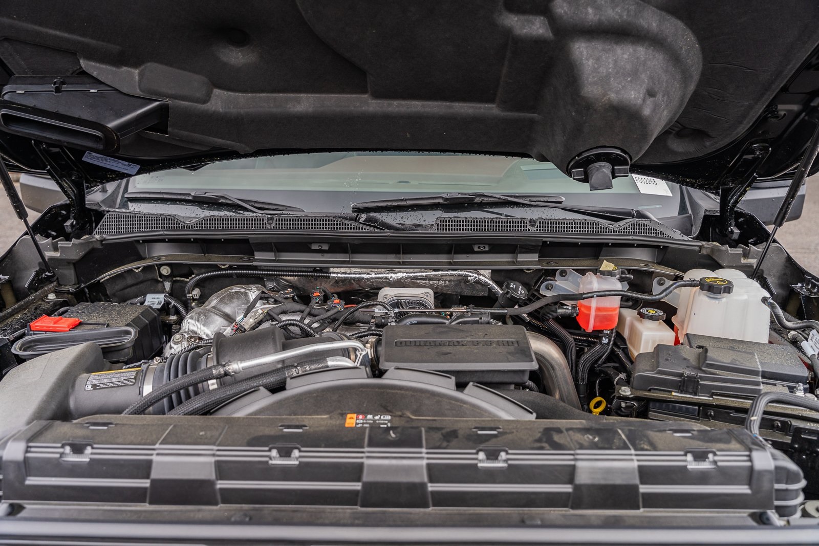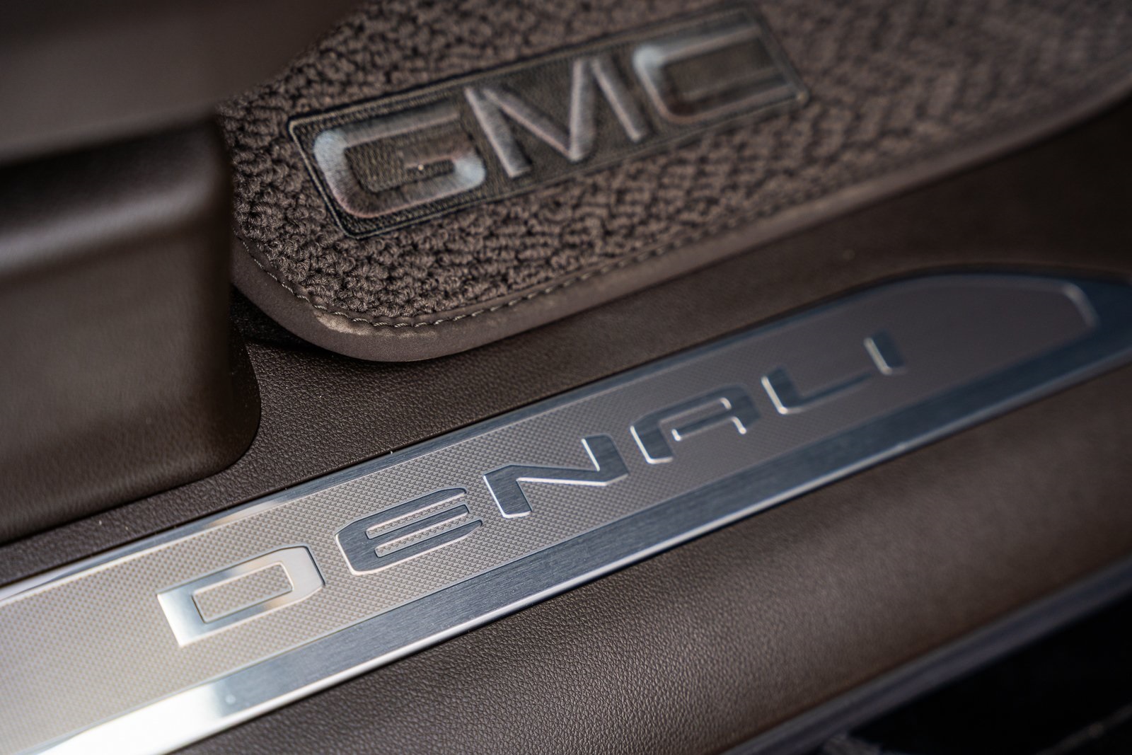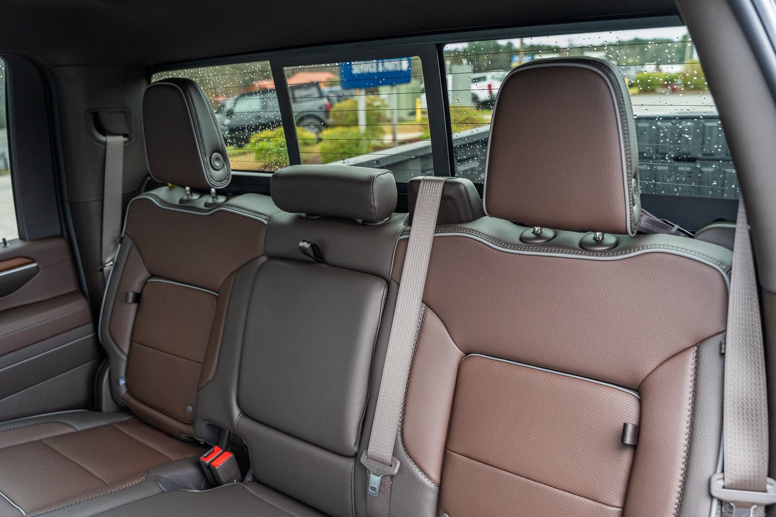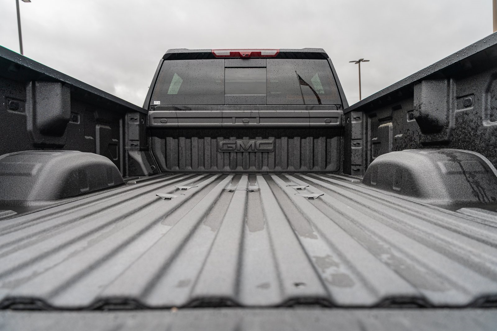 This vehicle comes equipped with Denali Reserve Package (Power Sunroof), Gooseneck/5th Wheel Prep Package, Preferred Equipment Group 5SA (120-Volt Bed Mounted Power Outlet, 120-Volt Instrument Panel Power Outlet, 2 Charge-Only Rear USB Ports, 2 Charge/Data USB Ports Inside Center Console, 2 USB Ports, 2-Speed Active Transfer Case, Bed View Camera w/2 Trailer Camera Provisions, Bose Premium 7-Speaker Sound System, Deep-Tinted Glass, Electric Rear-Window Defogger, Floor-Mounted Center Console, Front Rain-Sensing Wipers, HD Surround Vision, Heated 2nd Row Outboard Seats, Heated Driver & Front Outboard Passenger Seats, Keyless Open & Start, LED Cargo Area Lighting, LED Smoked Amber Roof Marker Lamps, Manual Tilt-Wheel/Telescoping Steering Column, Polished Exhaust Tip, Power Front Windows w/Passenger Express Up/Down, Power Sliding Rear Window w/Defogger, Push Button Start, Rear Cross Traffic Alert, Remote Vehicle Starter System, Safety Alert Seat, Signature Chrome Denali Grille, SiriusXM w/360L Trial Subscription, Spray-On Pickup Bedliner w/GMC Logo, Steering Wheel Audio Controls, Trailer Camera Provisions, Trailer Side Blind Zone Alert, Ultrasonic Front & Rear Park Assist, Unauthorized Entry Theft-Deterrent System, Universal Home Remote, Ventilated Driver & Front Passenger Seats, Wireless Charging, and Wireless Phone Projection), Technology Package (Auto-Dimming Inside Rearview Mirror w/Camera and Multicolor 15" Diagonal Head-Up Display), 10-Speed Automatic, 4WD, Atmosphere/Brownstone Leather, 12-Way Power Driver Seat Adjuster w/Lumbar, 12-Way Power Passenger Seat Adjuster w/Lumbar, 220 Amp Alternator, 3.42 Rear Axle Ratio, 3.73 Rear Axle Ratio, 4-Wheel Disc Brakes, 7 Speakers, ABS brakes, Air Conditioning, Alloy wheels, AM/FM radio: SiriusXM with 360L, Auto High-beam Headlights, Auto-dimming door mirrors, Auto-dimming Rear-View mirror, Automatic Emergency Braking, Automatic temperature control, Brake assist, Buckle to Drive, Bumpers: body-color, Compass, Delay-off headlights, Driver door bin, Driver Memory, Driver vanity mirror, Dual front impact airbags, Dual front side impact airbags, Electronic Stability Control, Engine Block Heater, Exhaust Brake, Exterior Parking Camera Rear, Following Distance Indicator, Forge Perforated Leather Seat Trim, Forward Collision Alert, Front anti-roll bar, Front Bucket Seats, Front Center Armrest, Front dual zone A/C, Front fog lights, Front Pedestrian Braking, Front reading lights, Front wheel independent suspension, Fully automatic headlights, Garage door transmitter, Genuine wood dashboard insert, Genuine wood door panel insert, GMC Premium 13.4" Diagonal Information Display, Heated door mirrors, Heated front seats, Heated rear seats, Heated steering wheel, Heavy-Duty 80 Amp-Hr Battery, Hitch Guidance w/Hitch View, Illuminated entry, IntelliBeam Automatic High Beam On/Off, Lane Departure Warning System, Low tire pressure warning, Memory seat, Occupant sensing airbag, Outside temperature display, Overhead airbag, Overhead console, Panic alarm, Passenger door bin, Passenger vanity mirror, Pickup Bed, Power door mirrors, Power driver seat, Power passenger seat, Power steering, Power windows, Power-Retractable Assist Steps, Radio: AM/FM w/Premium GMC Infotainment System, Rain sensing wipers, Rear reading lights, Rear seat center armrest, Rear step bumper, Rear window defroster, Remote keyless entry, Security system, Speed control, Speed-sensing steering, Split folding rear seat, Steering wheel mounted audio controls, Tachometer, Telescoping steering wheel, Tilt steering wheel, Traction control, Trip computer, Turn signal indicator mirrors, Variably intermittent wipers, Ventilated front seats, Voltmeter, and Winter Grille Cover.
