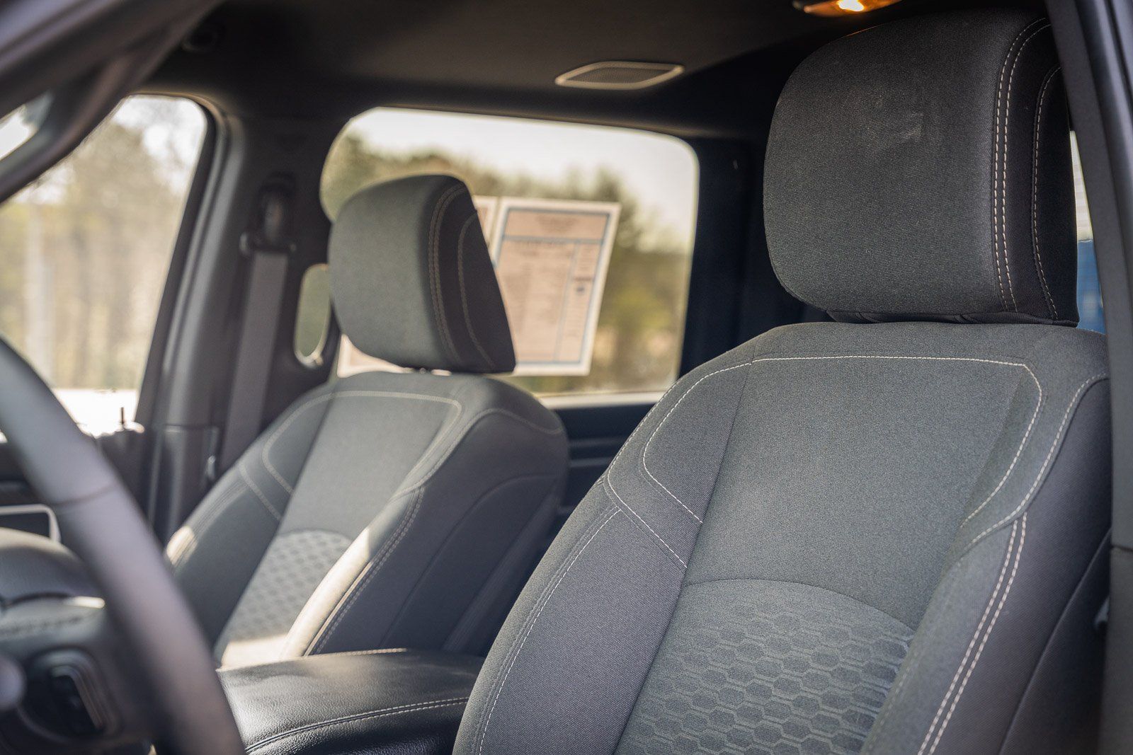- Cloth front seatback upholstery